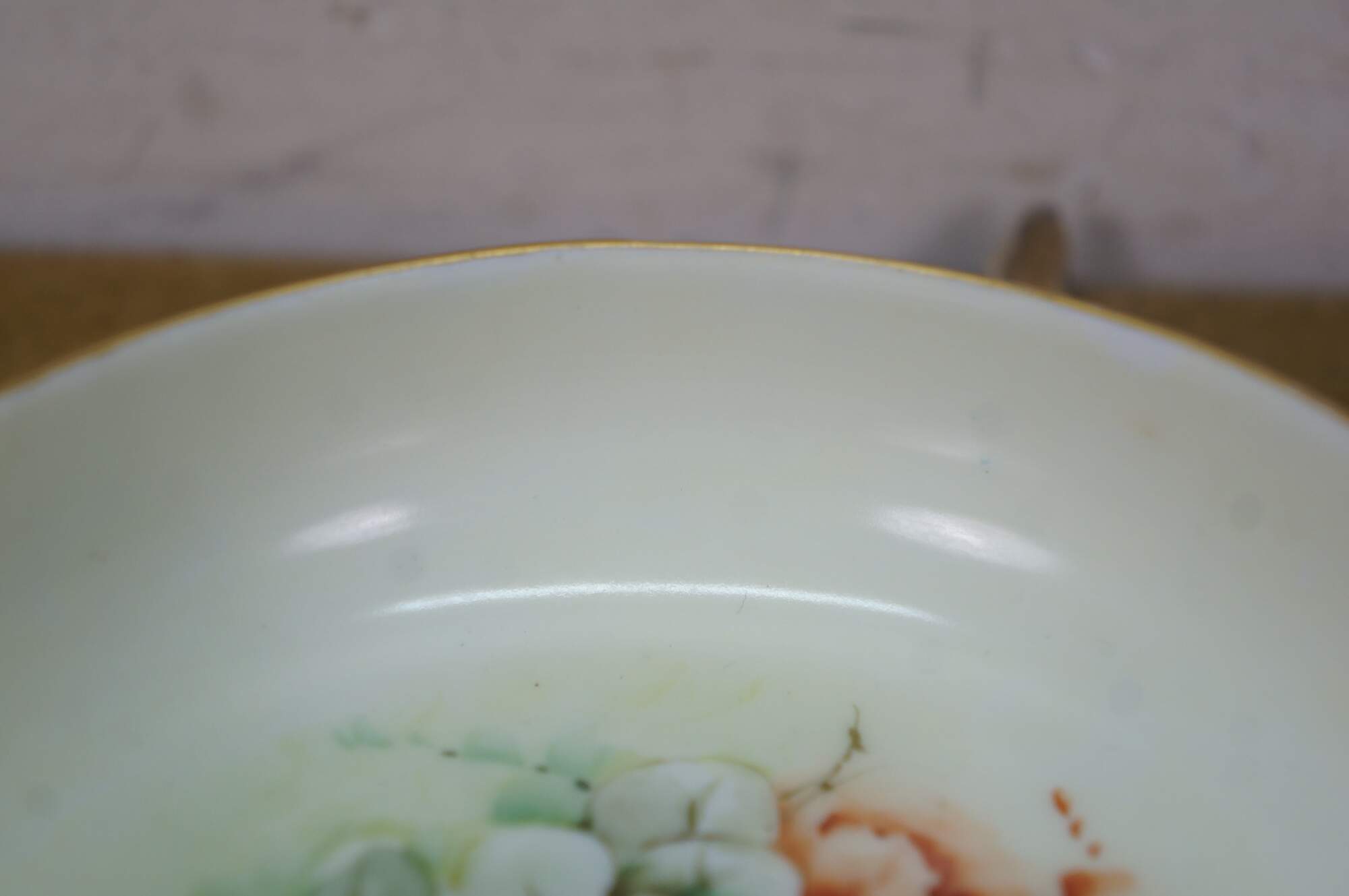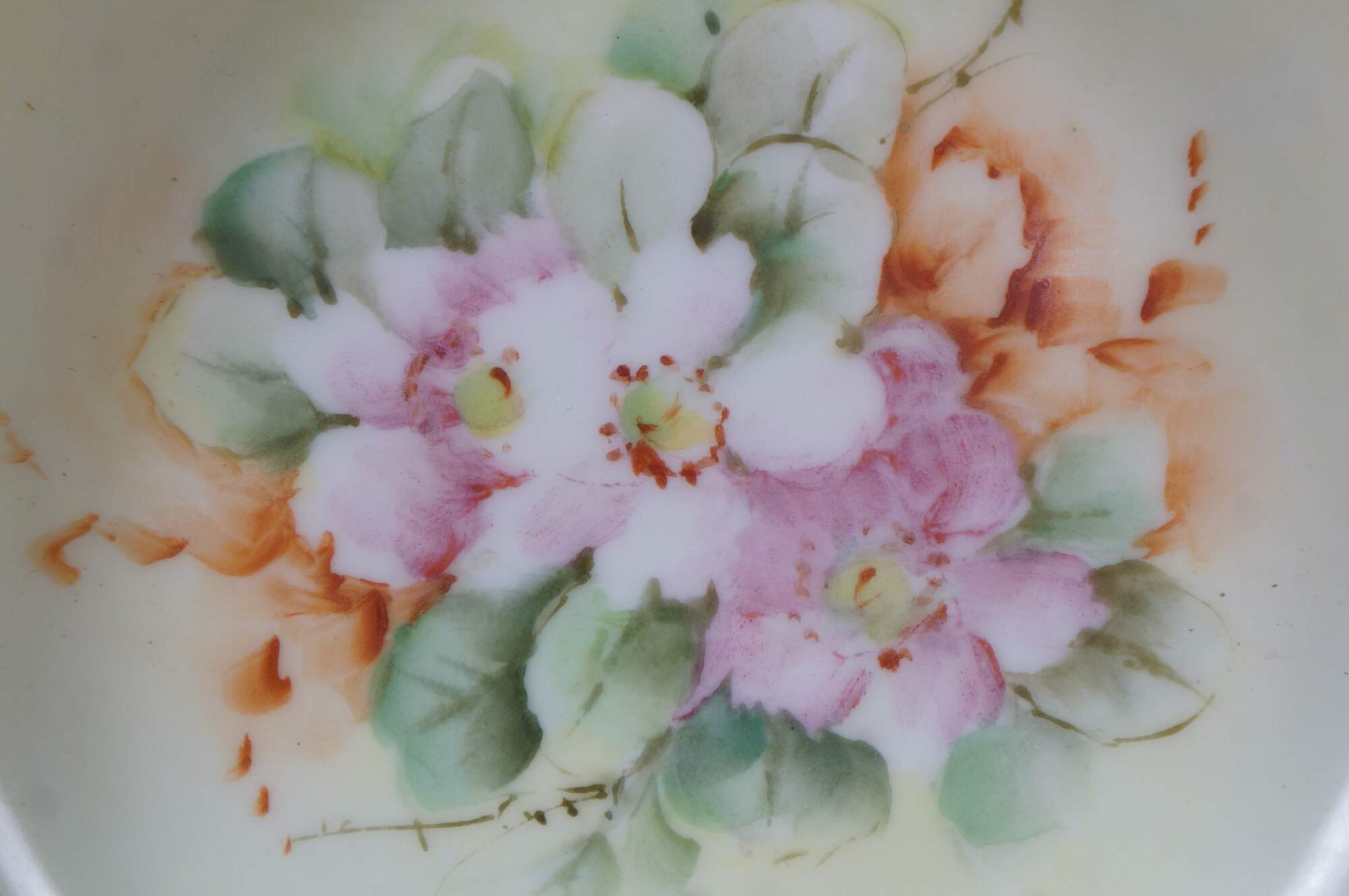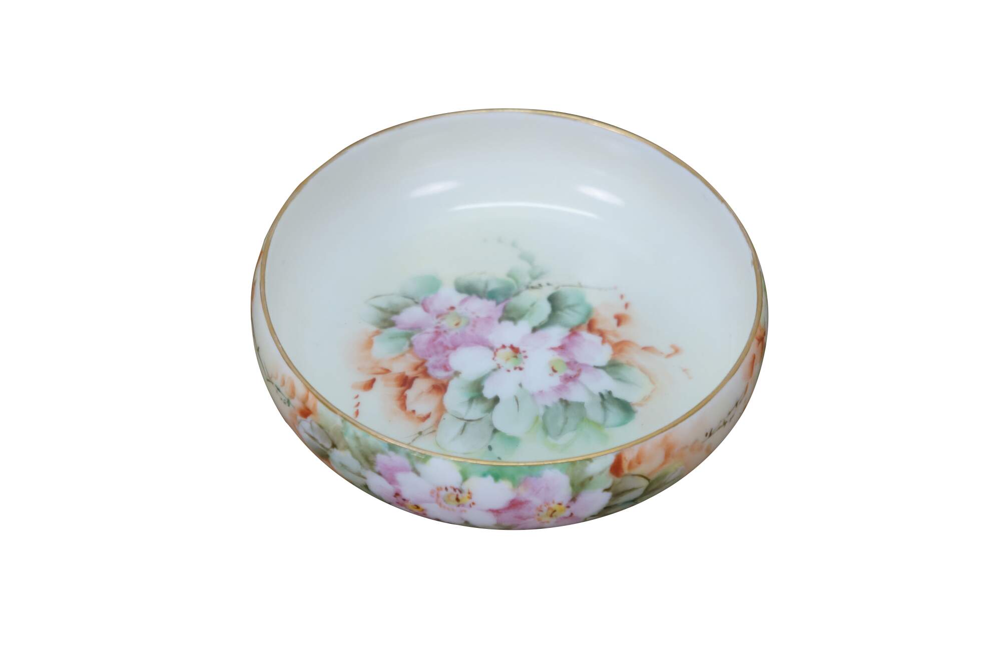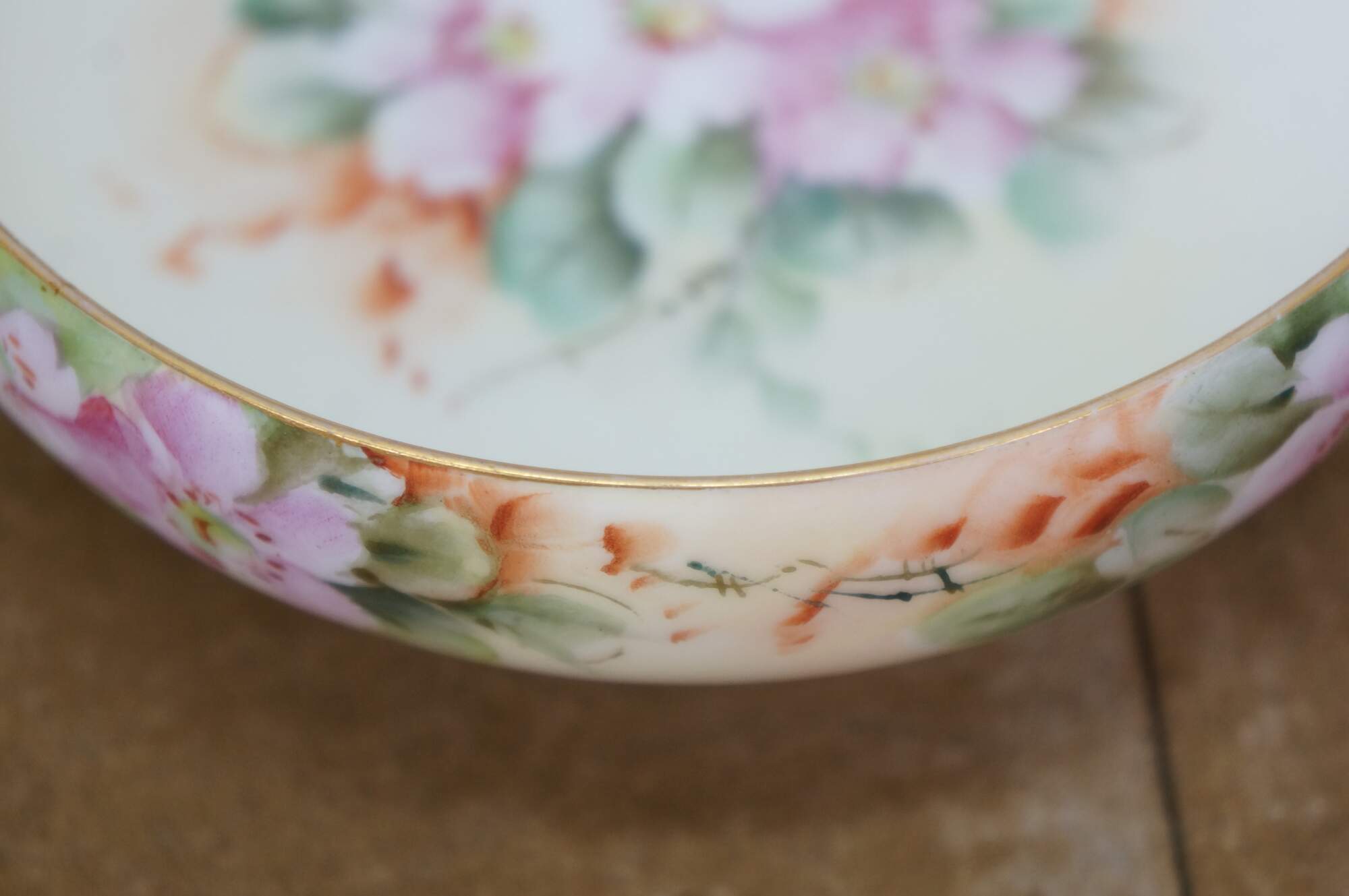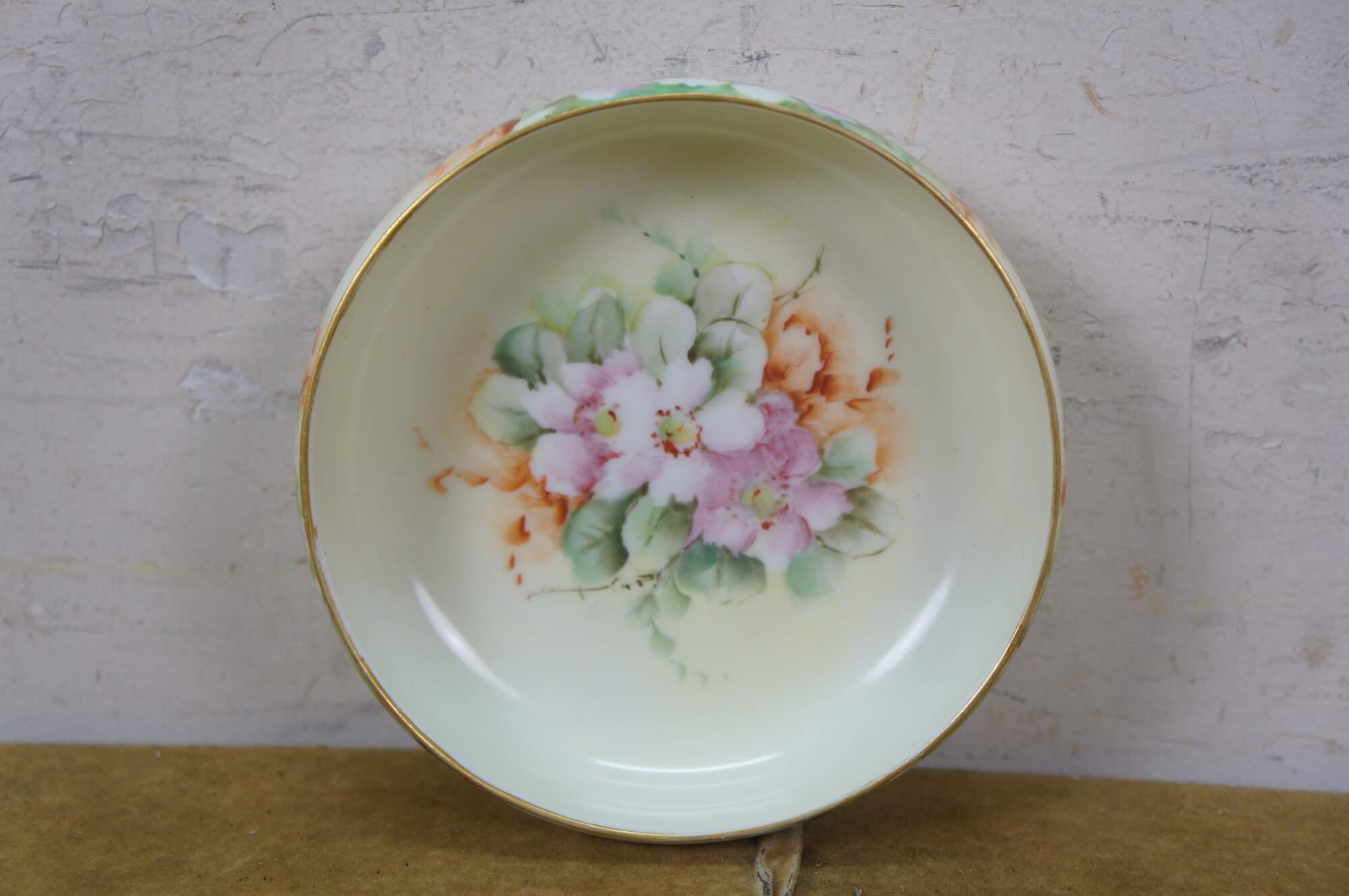 Antique O&EG Royal Austria hand painted floral porcelain footed vanity compote / key dish / change bowl.
