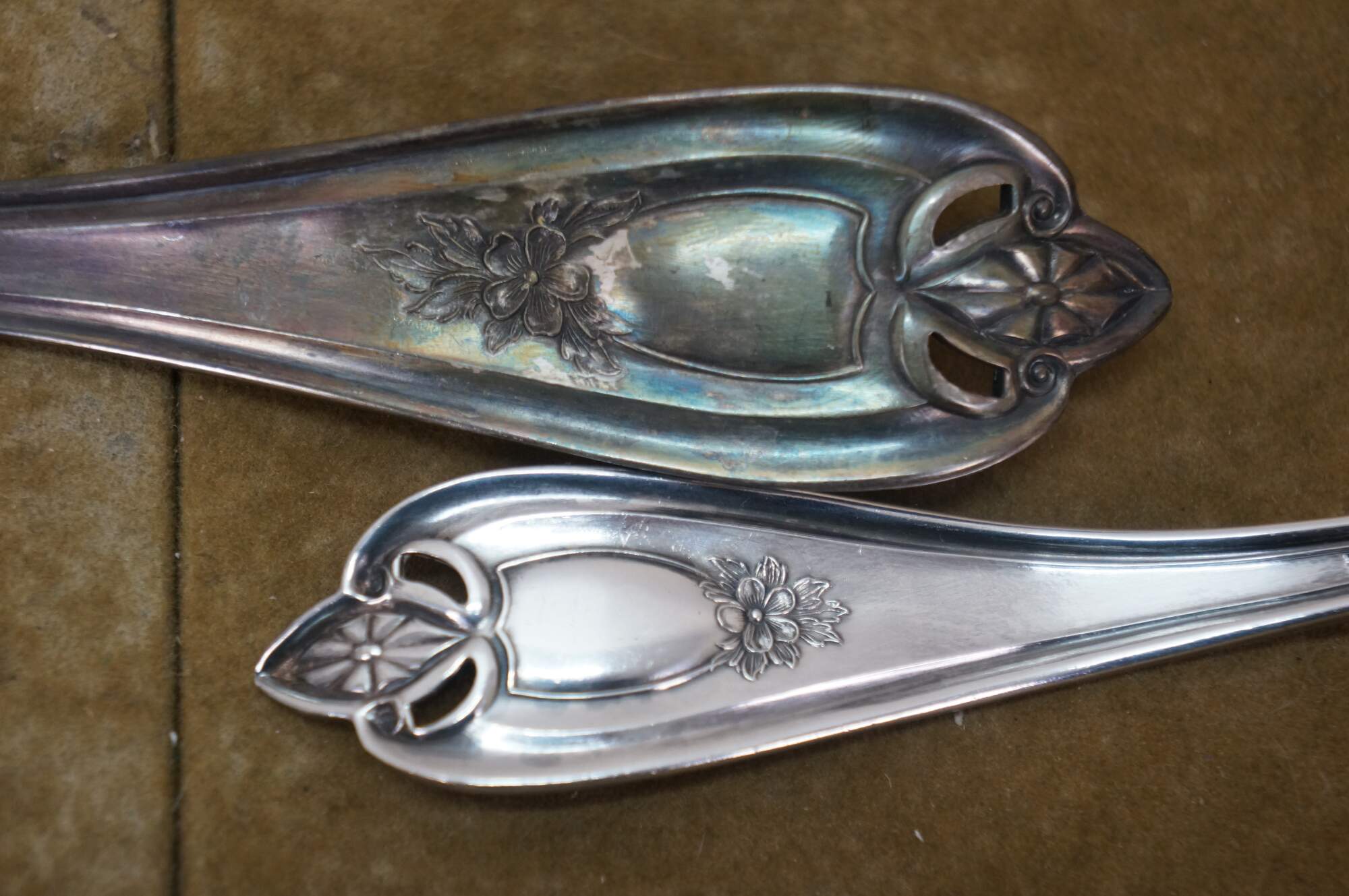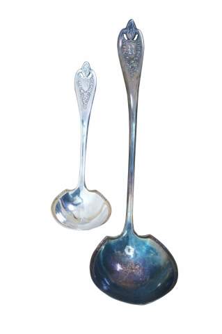 Two vintage 1847 Rogers Brothers Old Colony triple silverplated soup / gravy serving ladels.