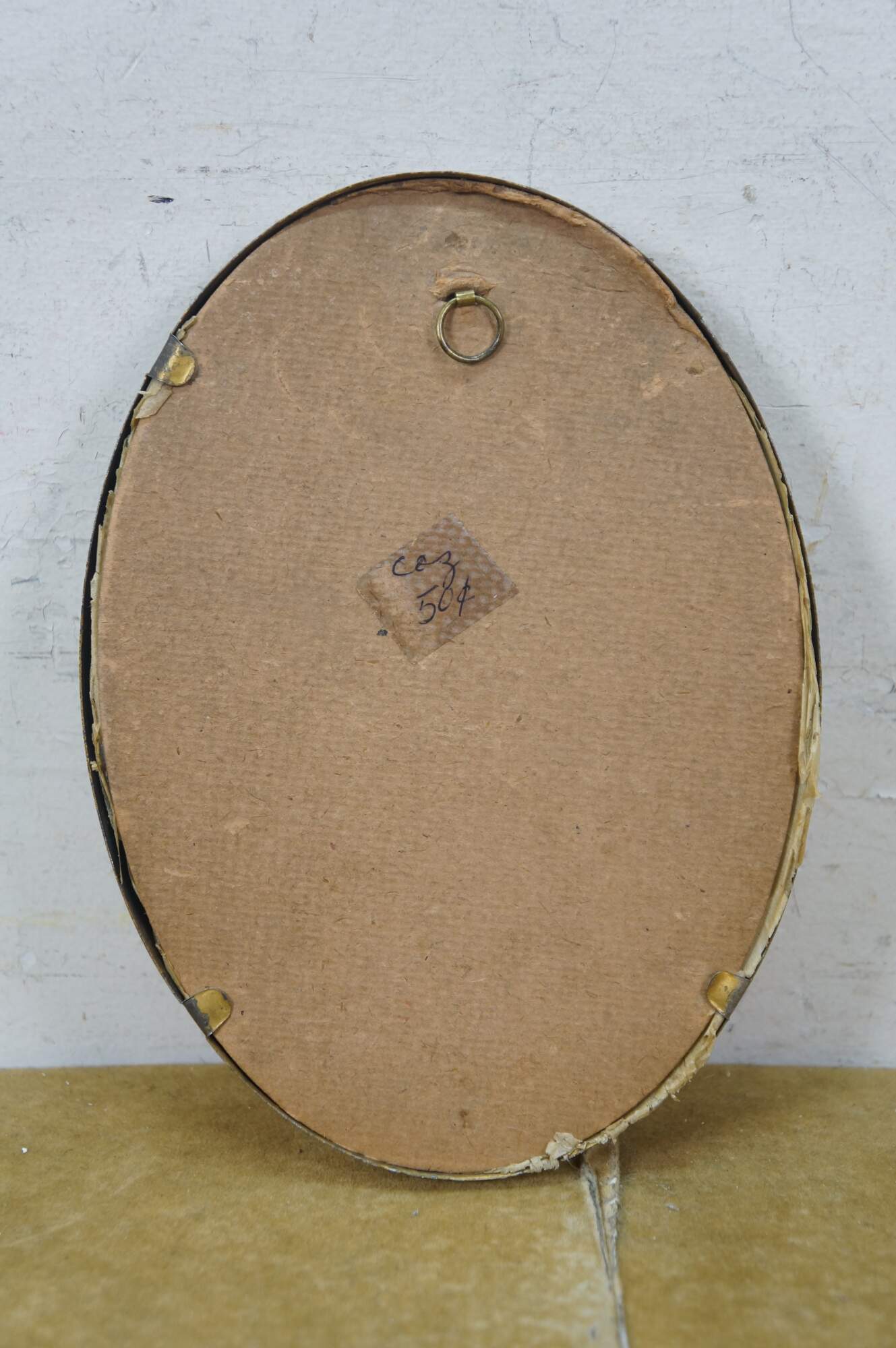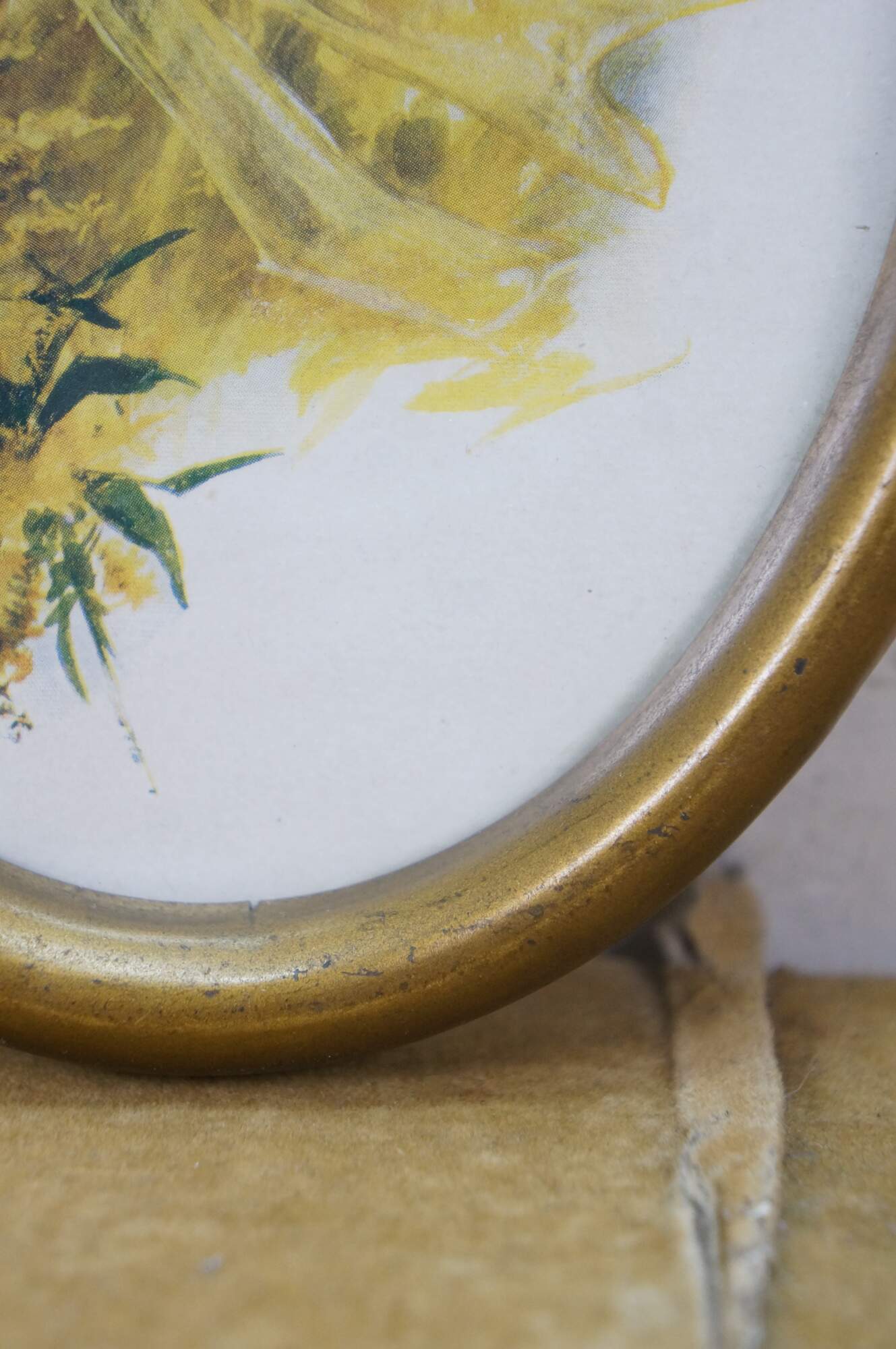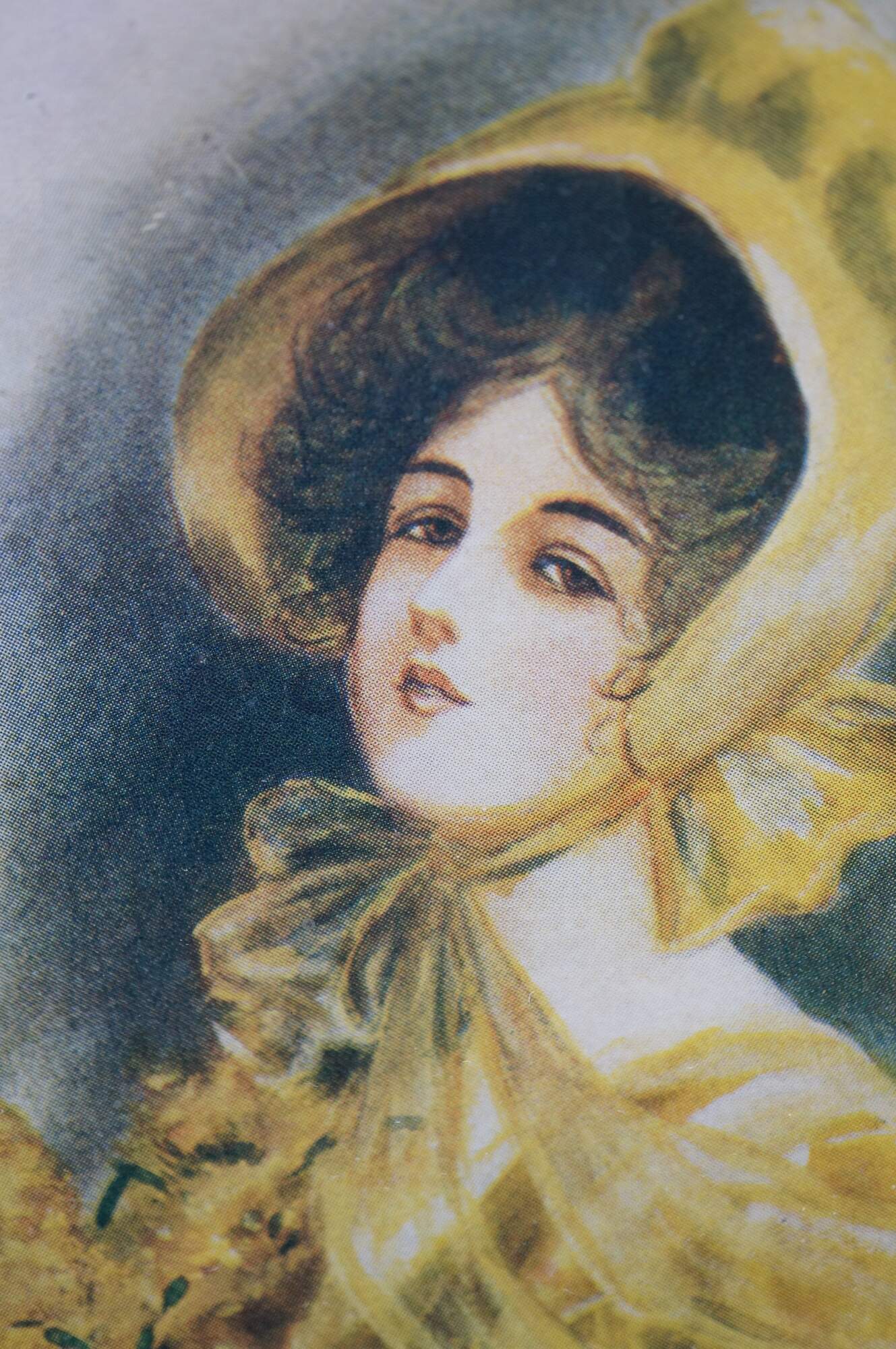 Small antique 1906 Lillian Woolsey Hunter Victorian lady portrait print in oval gold frame.