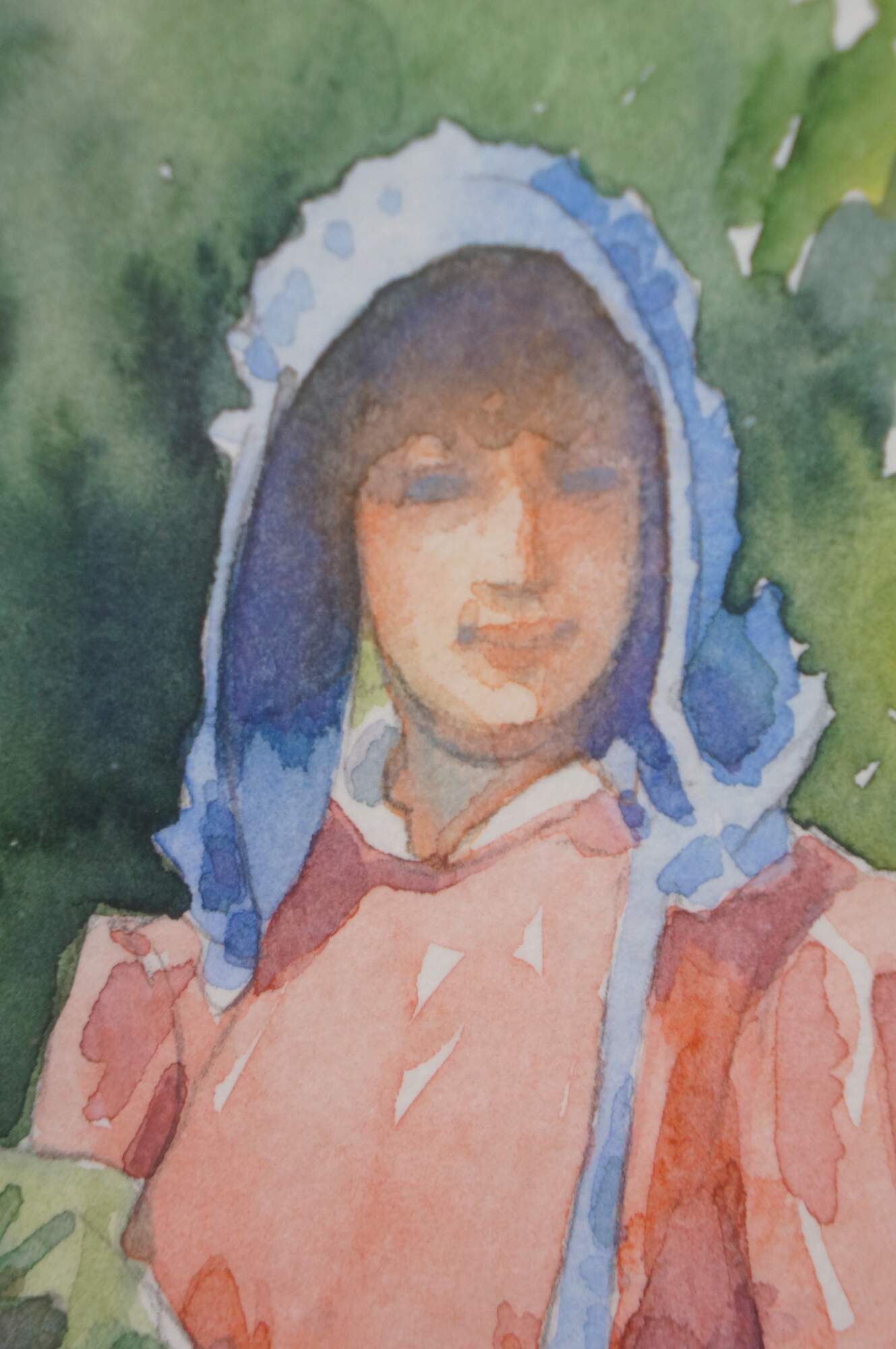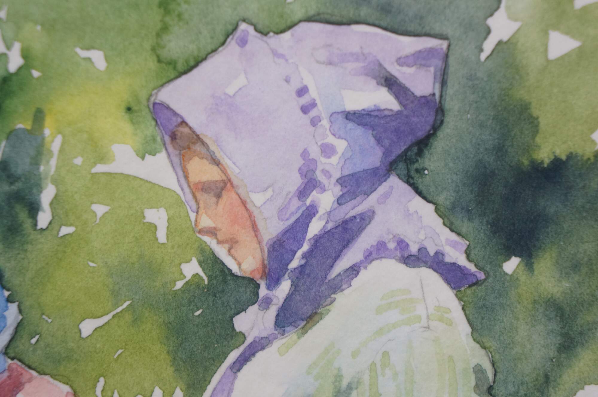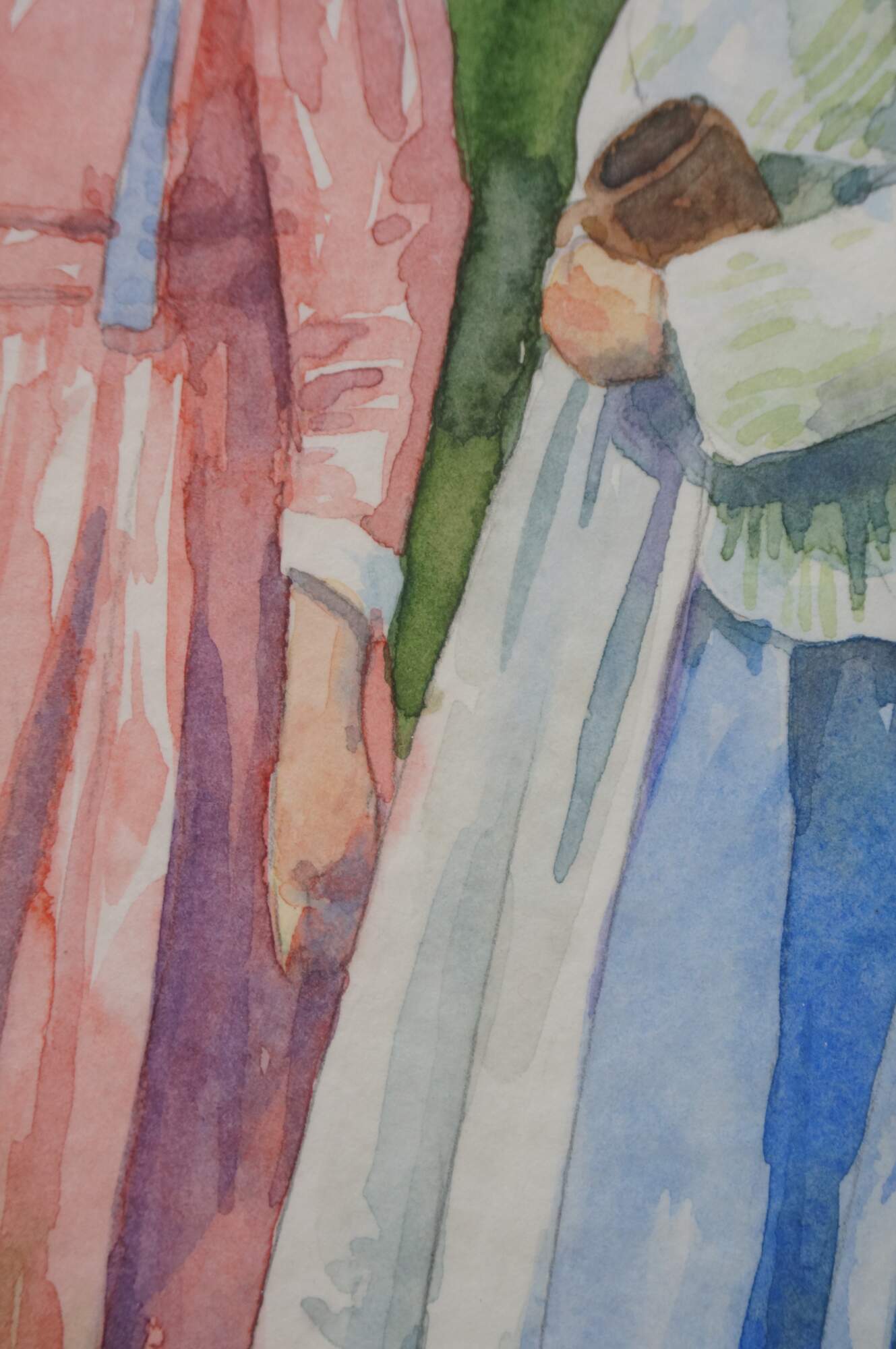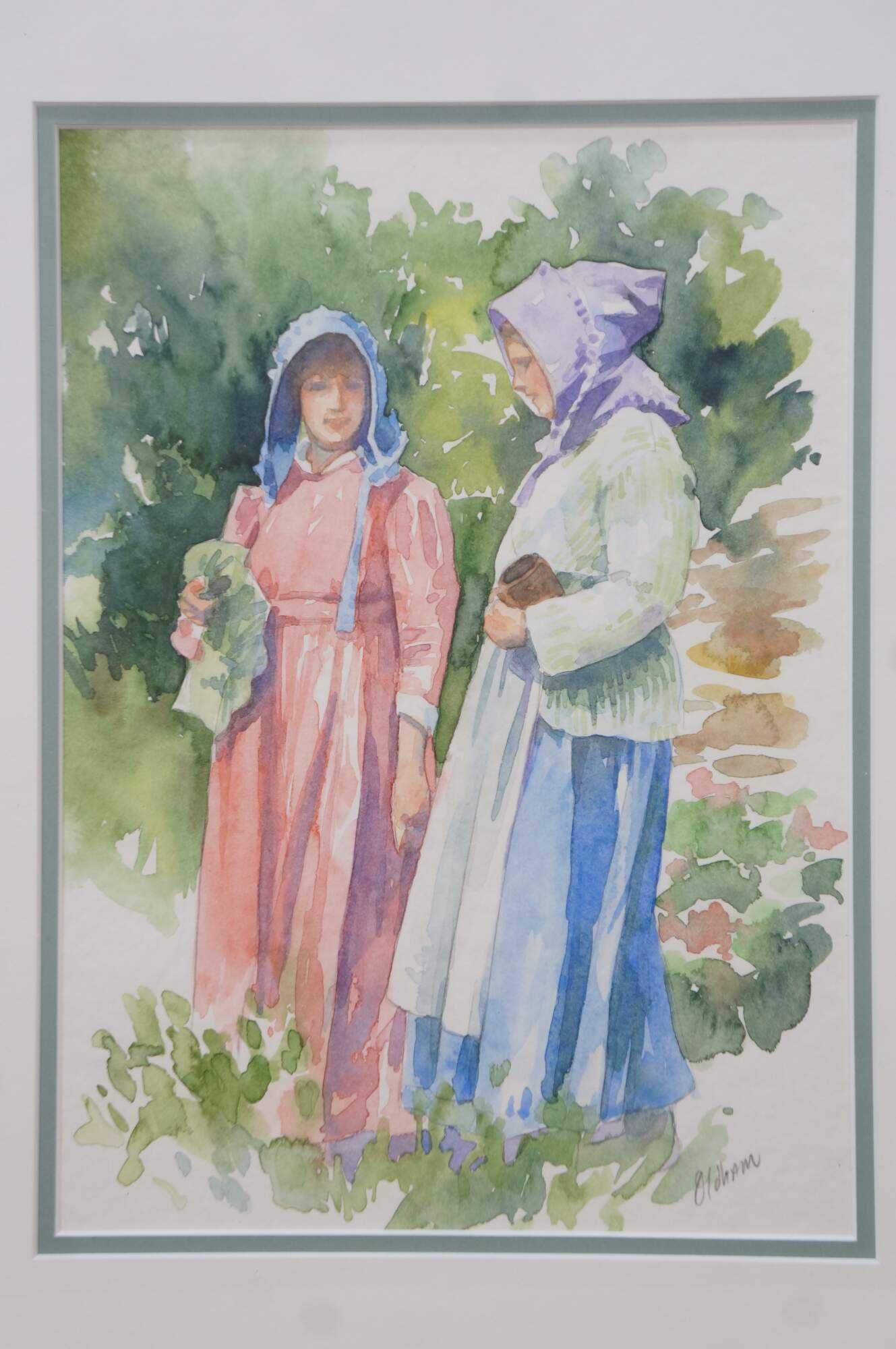 Vintage Oldham Women in Bonnets Watercolor Painting 18"