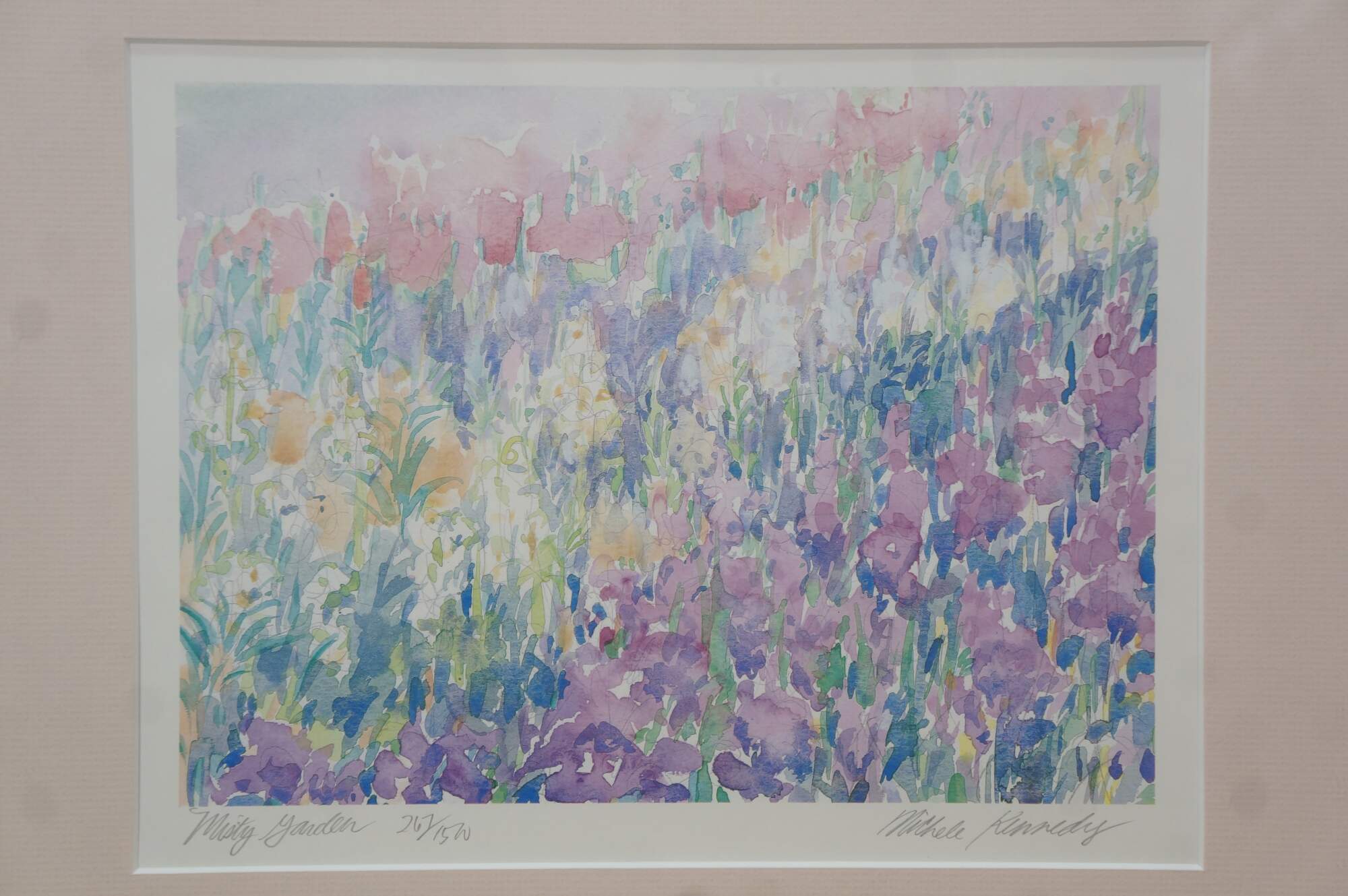 Vintage Michele Richard Kennedy Misty Garden signed floral lithograph print after her original watercolor.