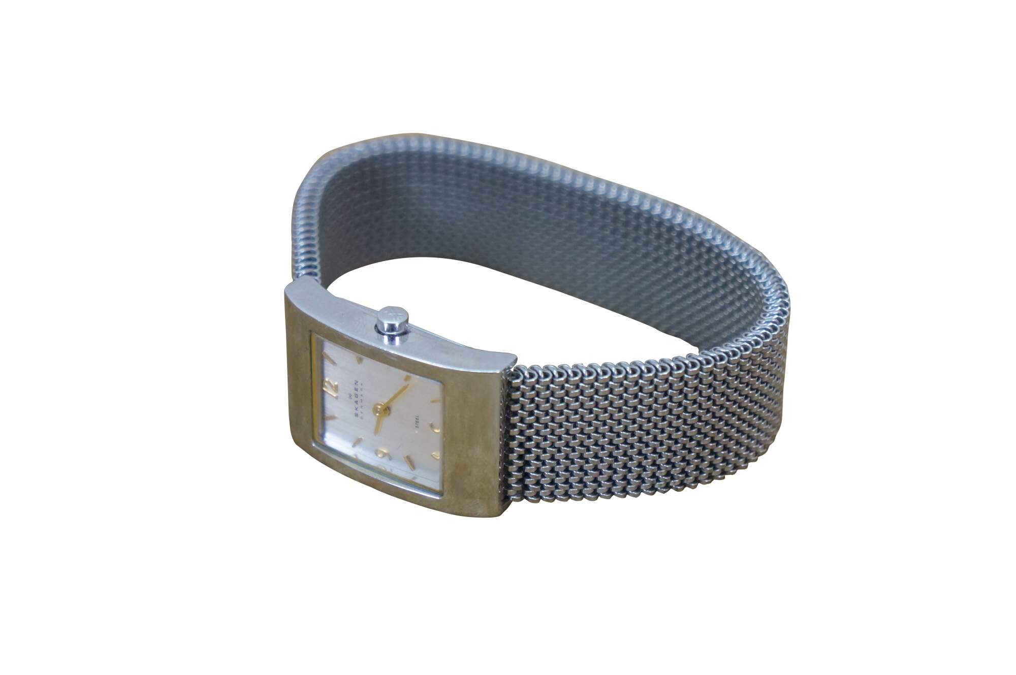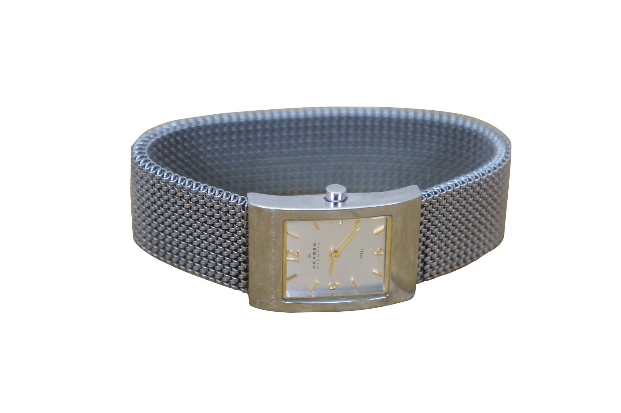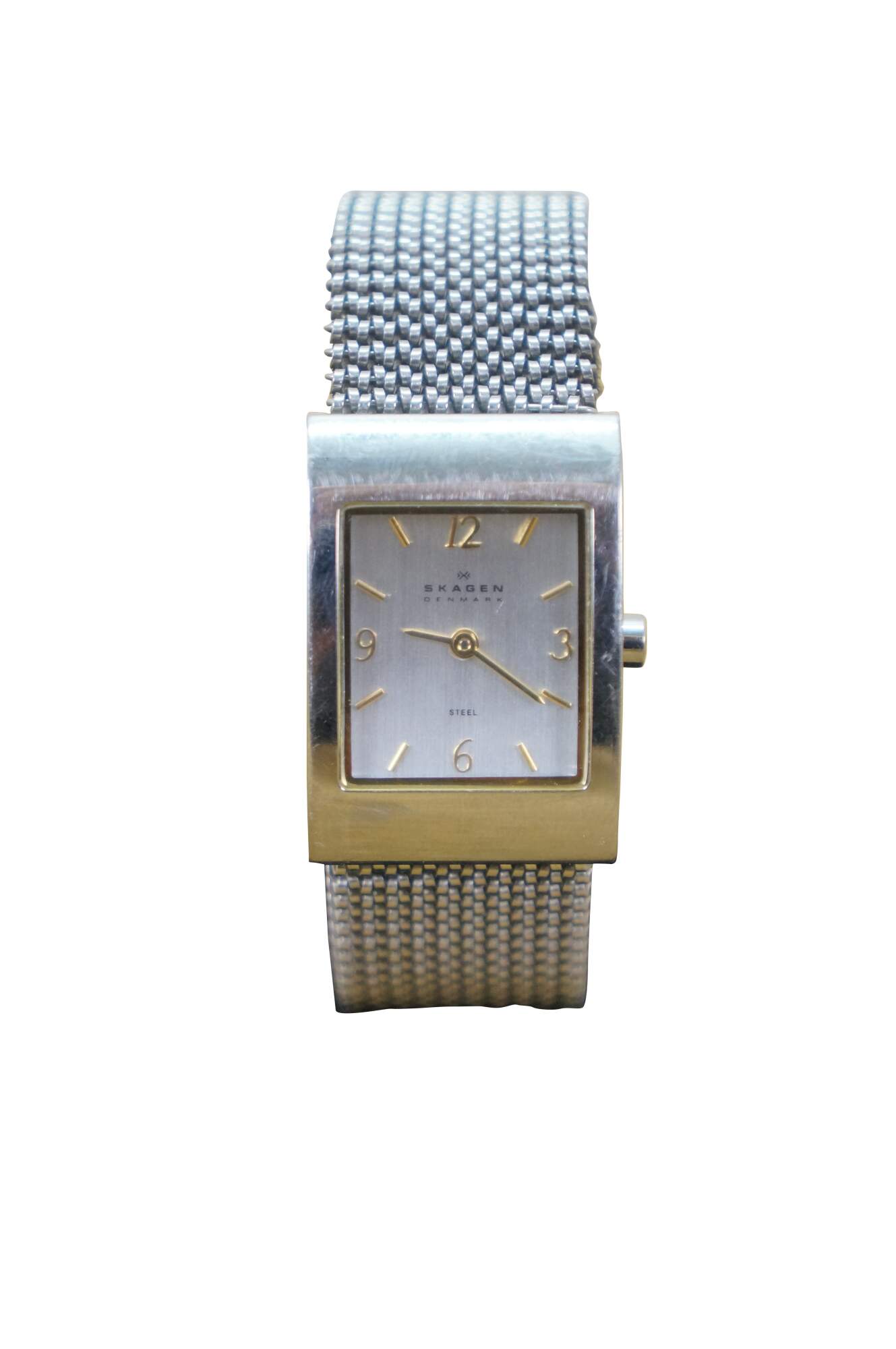 Vintage Skagen Denmark square steel mesh band ladies watch.