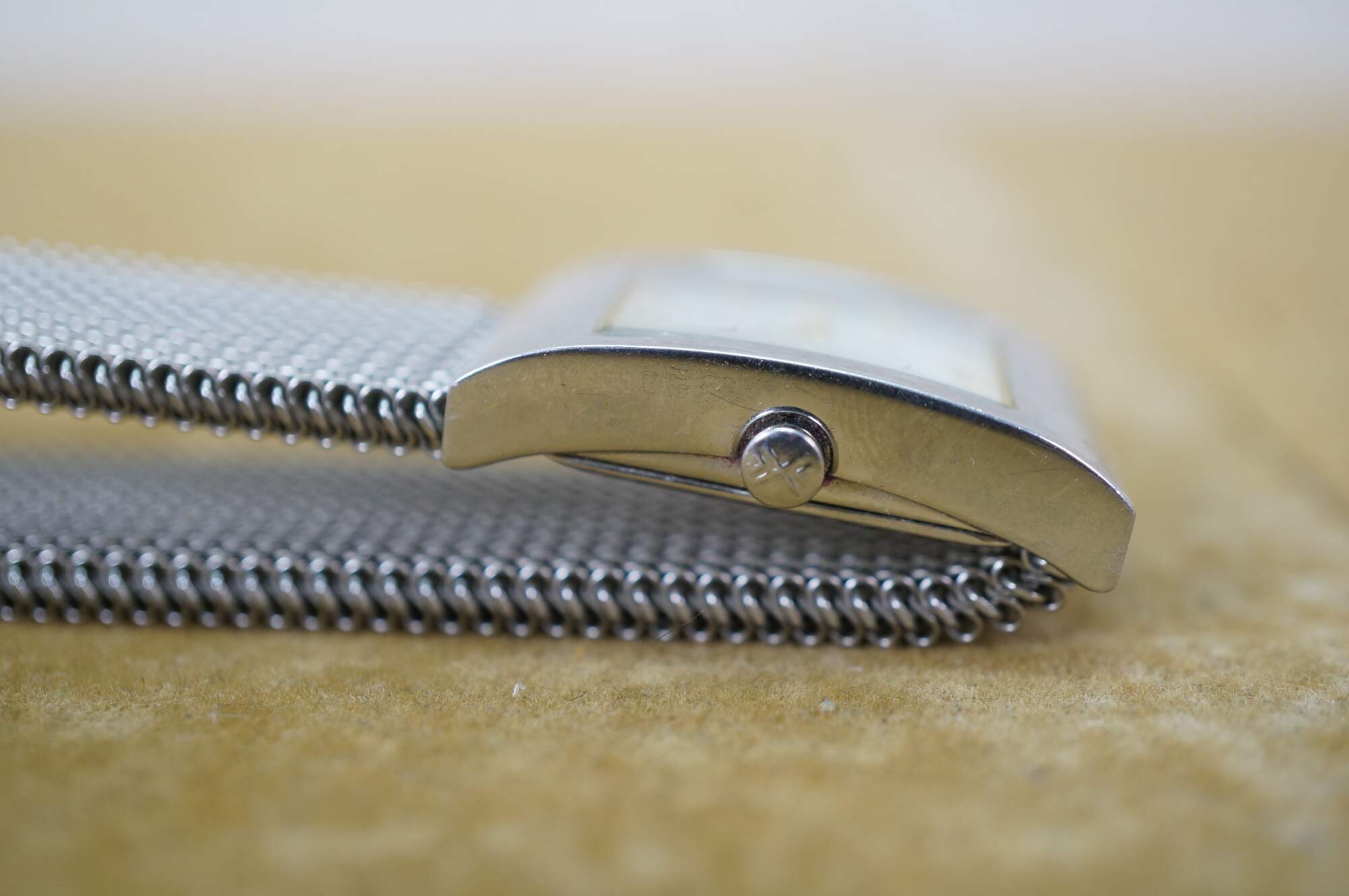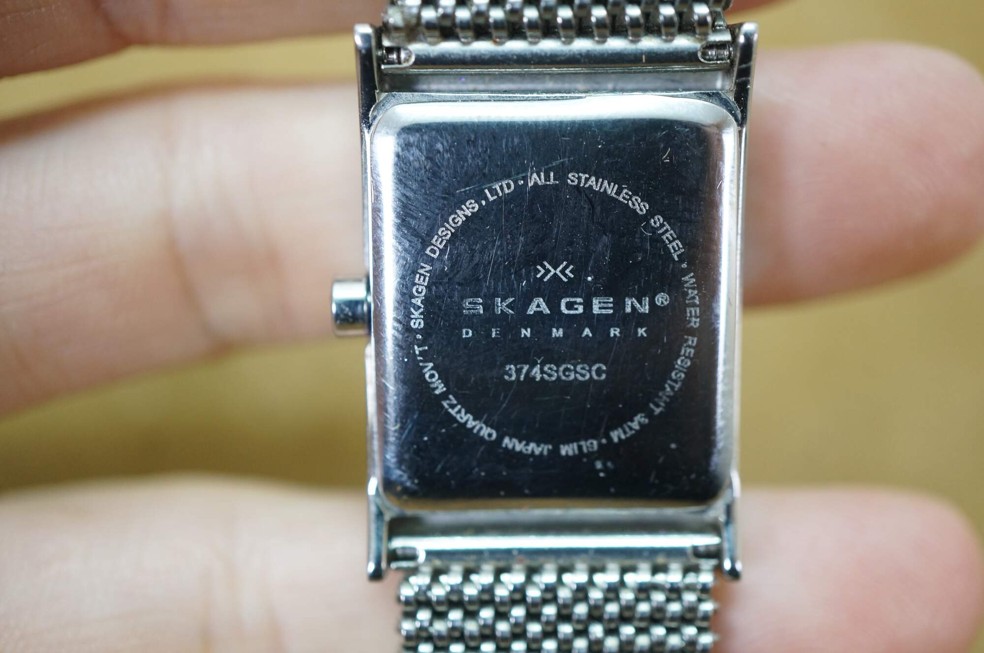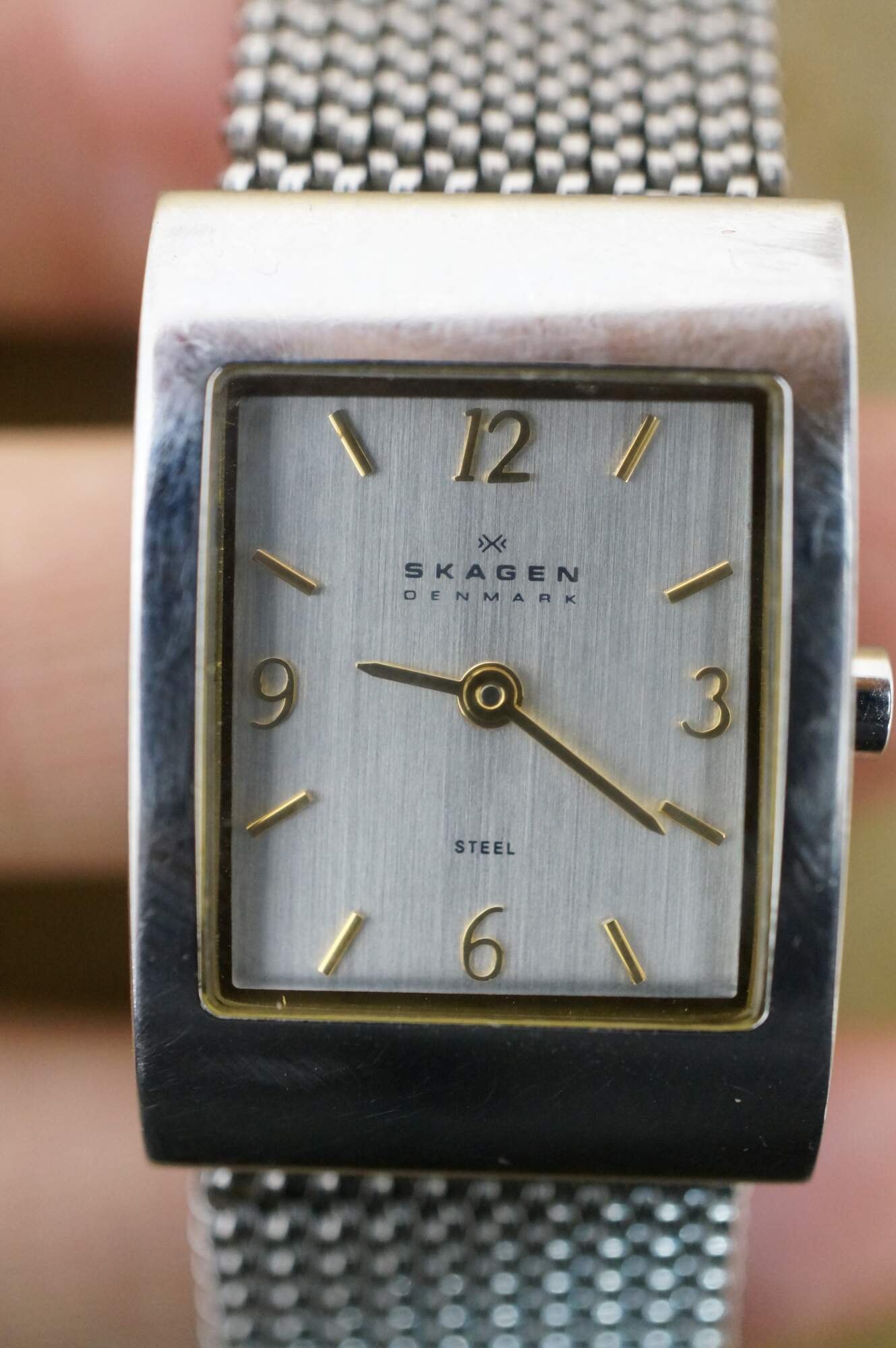 Vintage Skagen Denmark square steel mesh band ladies watch.