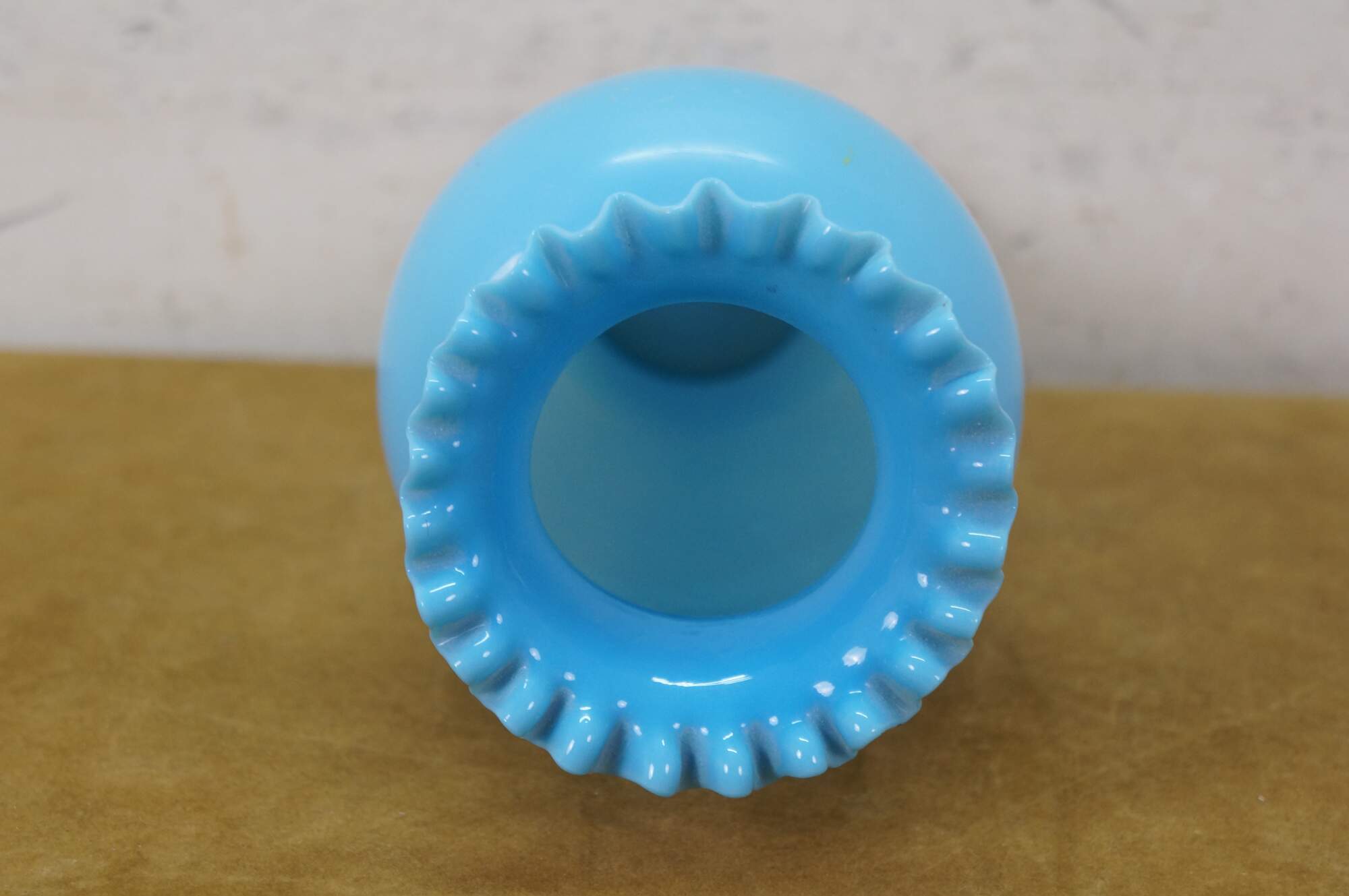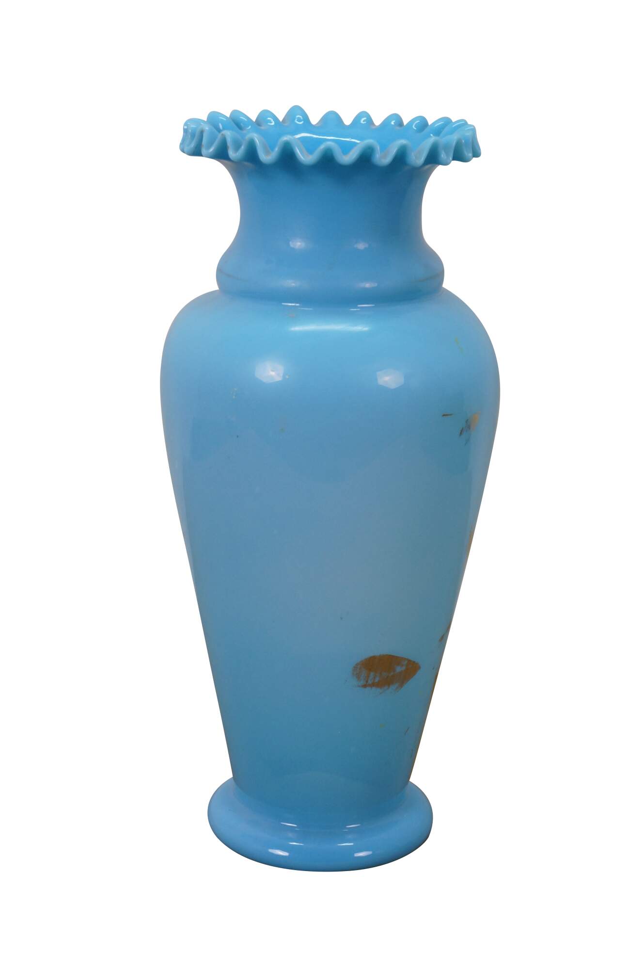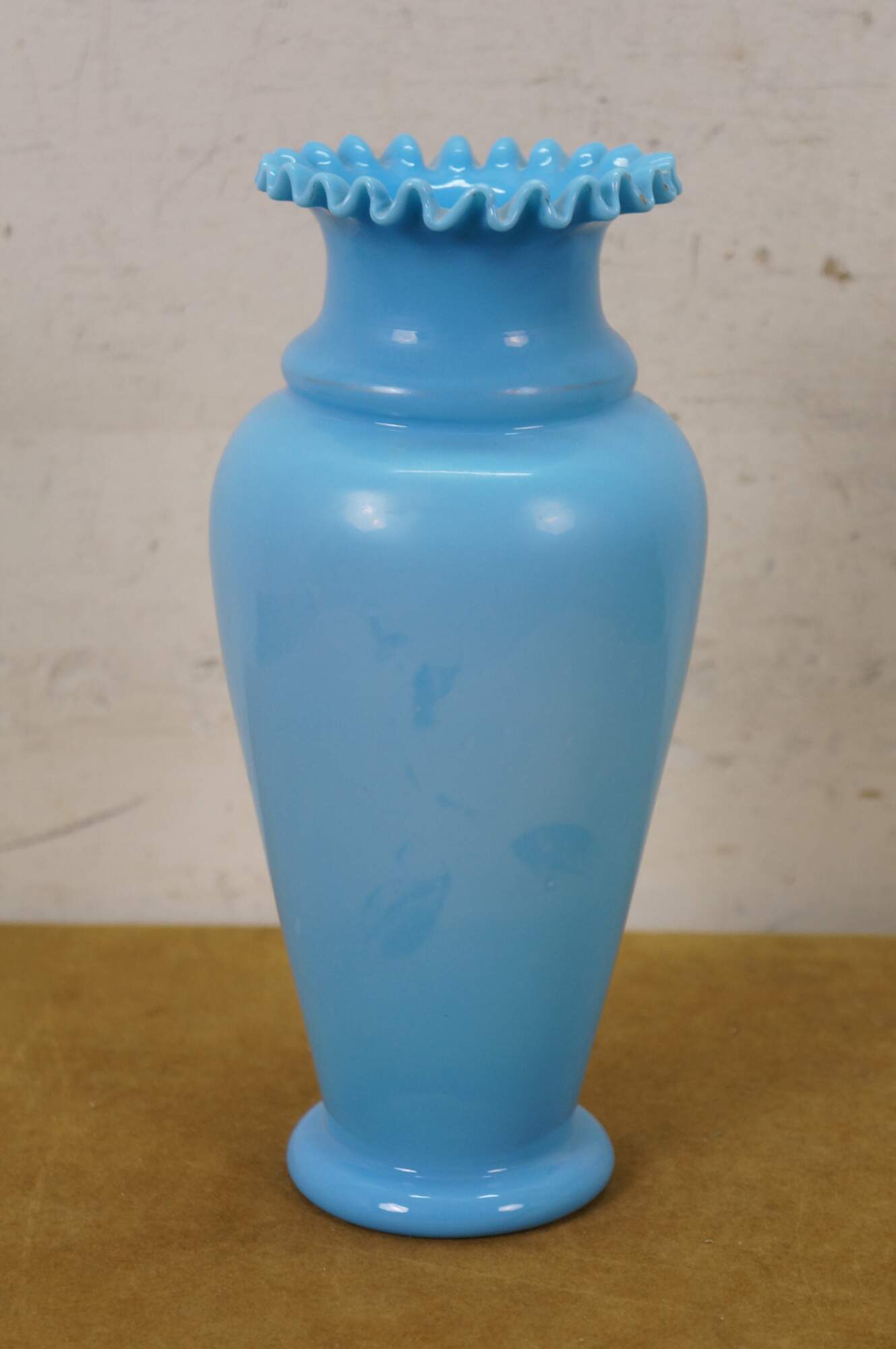 Antique Handblown light blue clambroth glass vase with ruffled top.