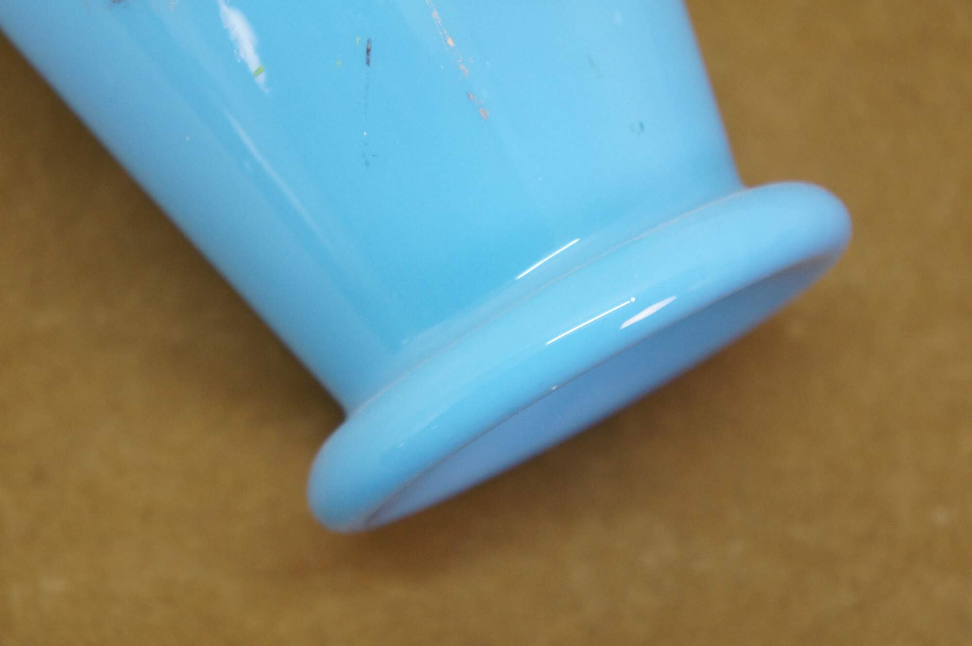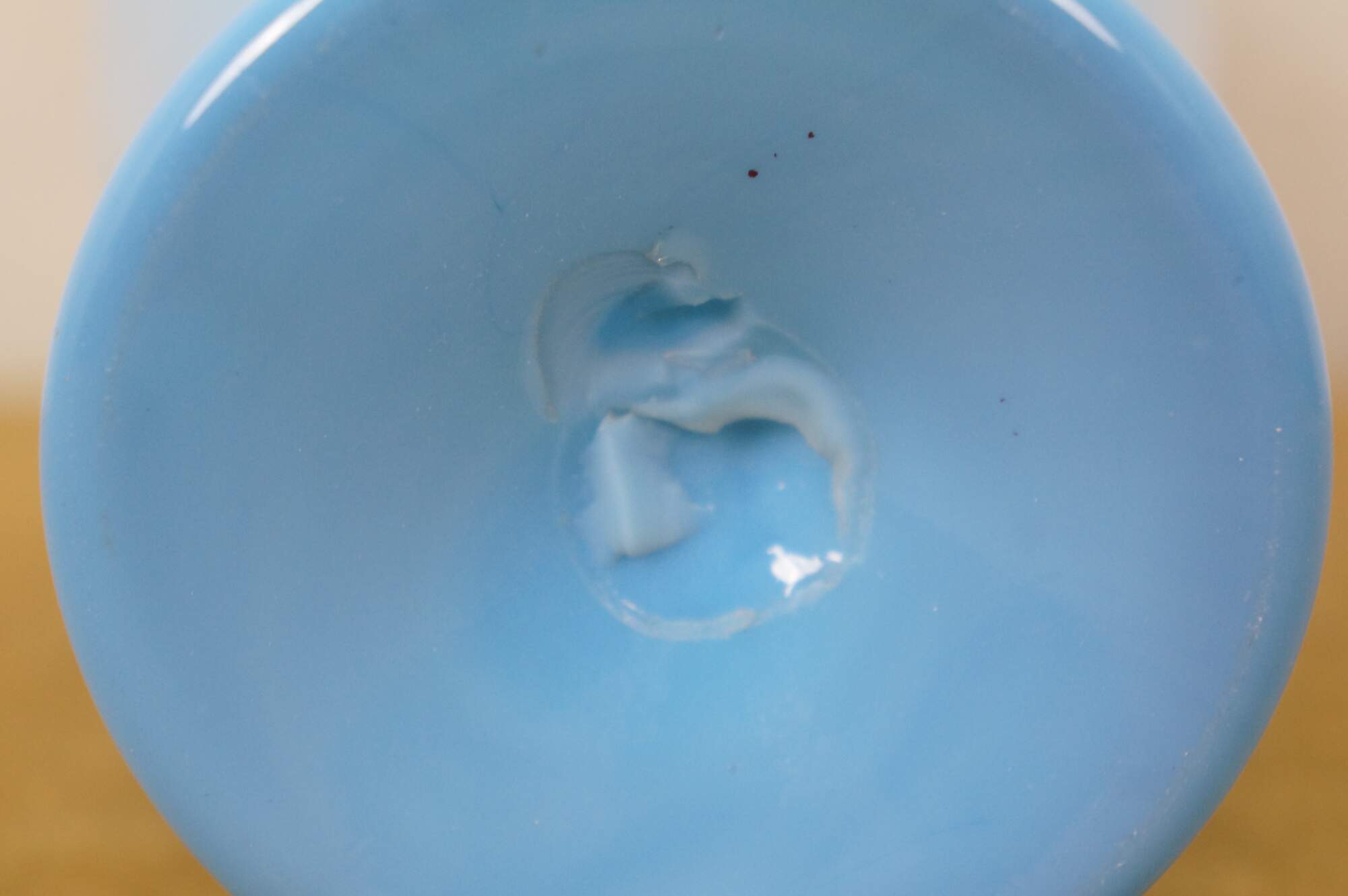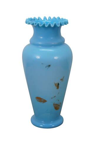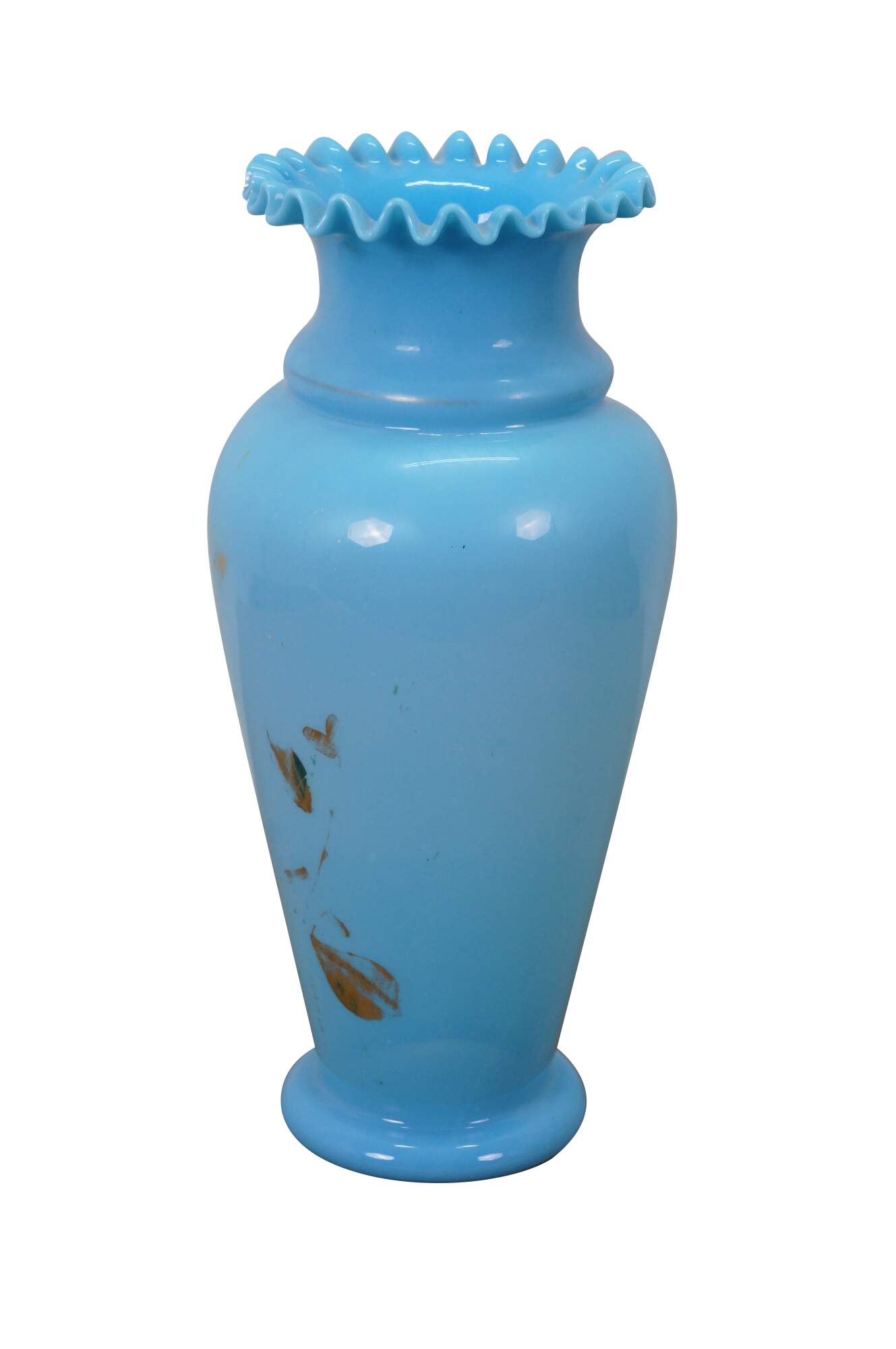 Antique Handblown light blue clambroth glass vase with ruffled top.