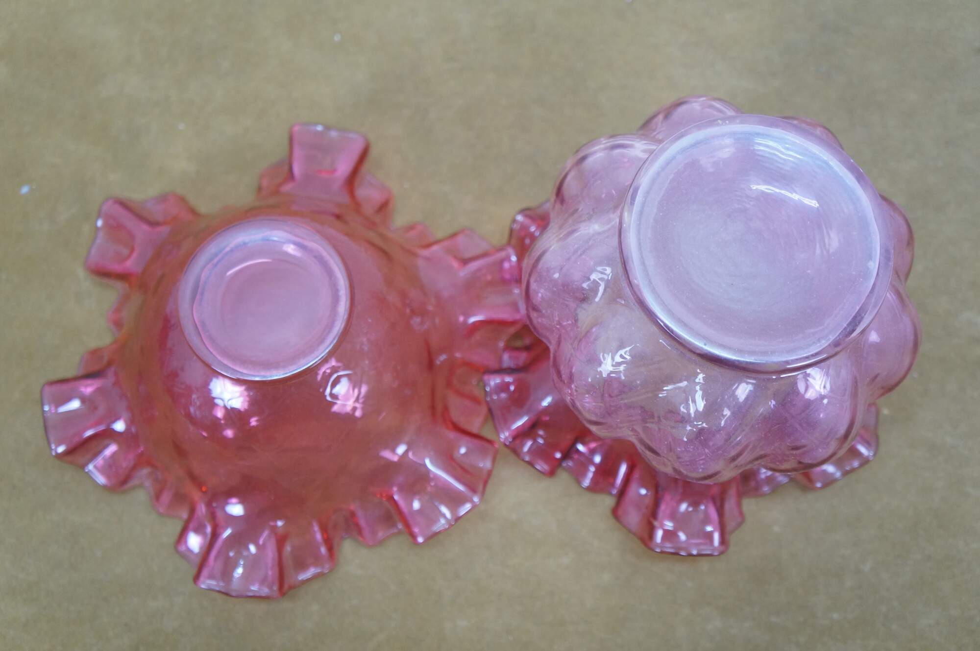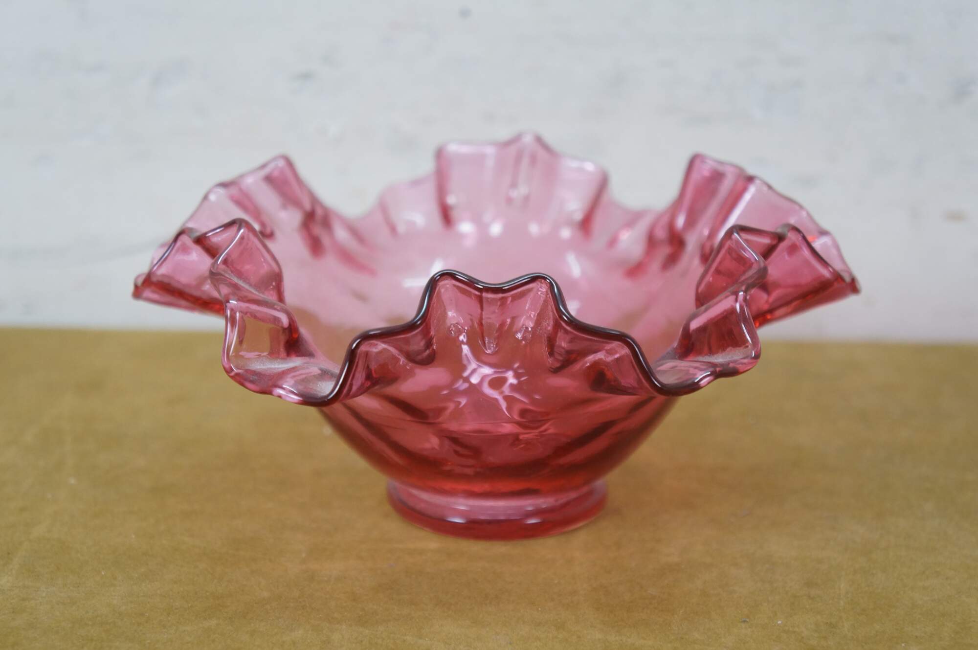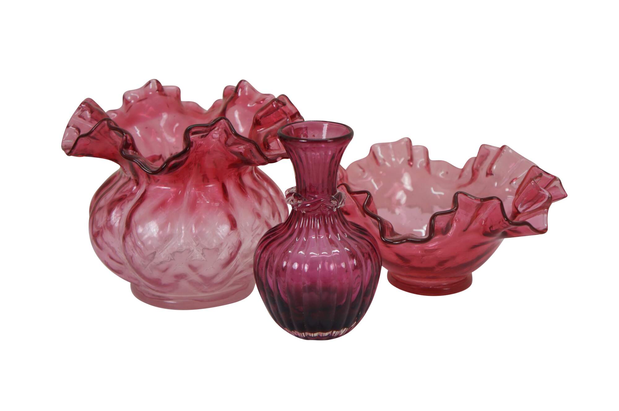 6 Cranberry Art Glass Ruffled Pitchers Decanters Vase Bowl Compote Fenton