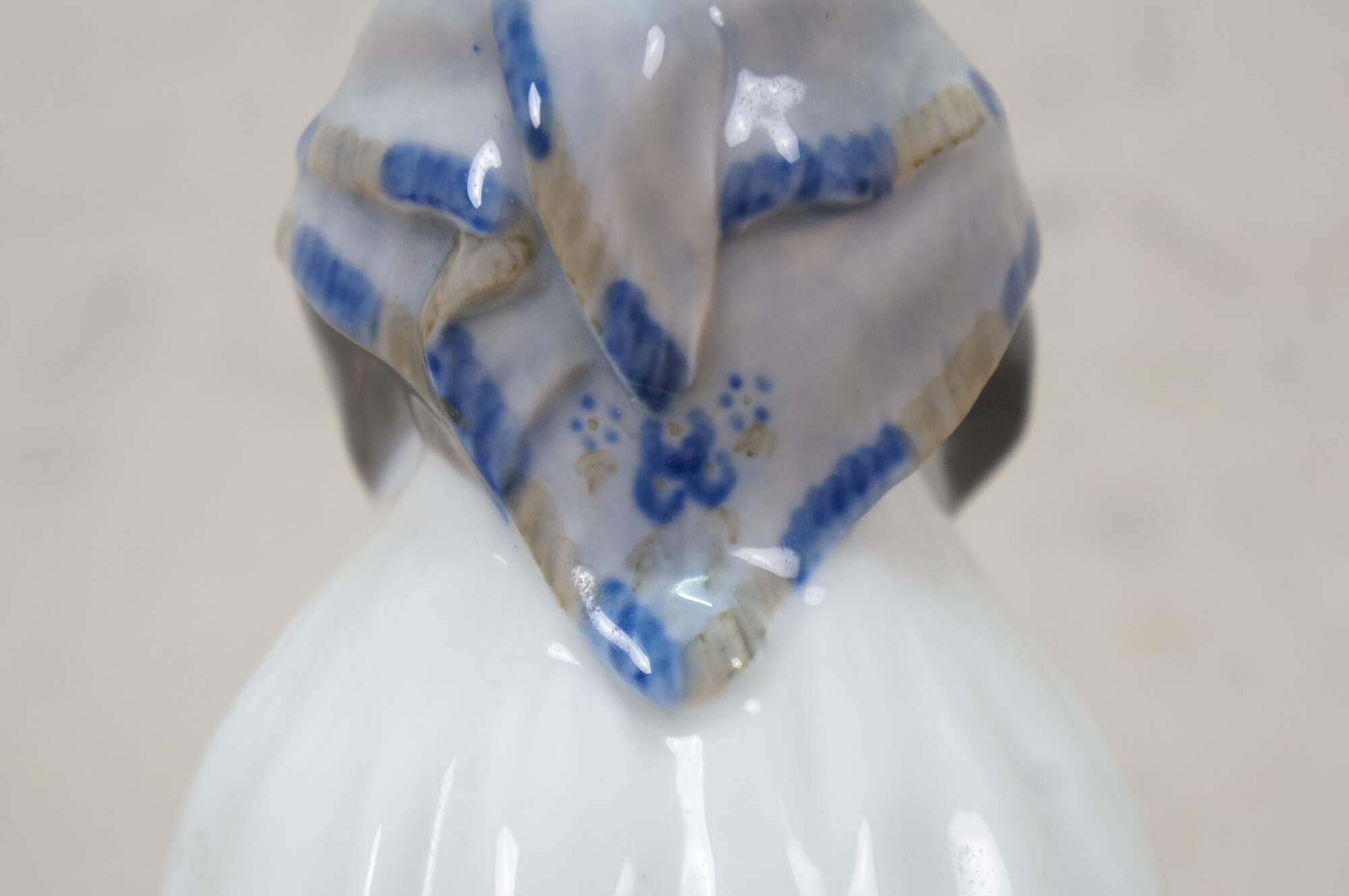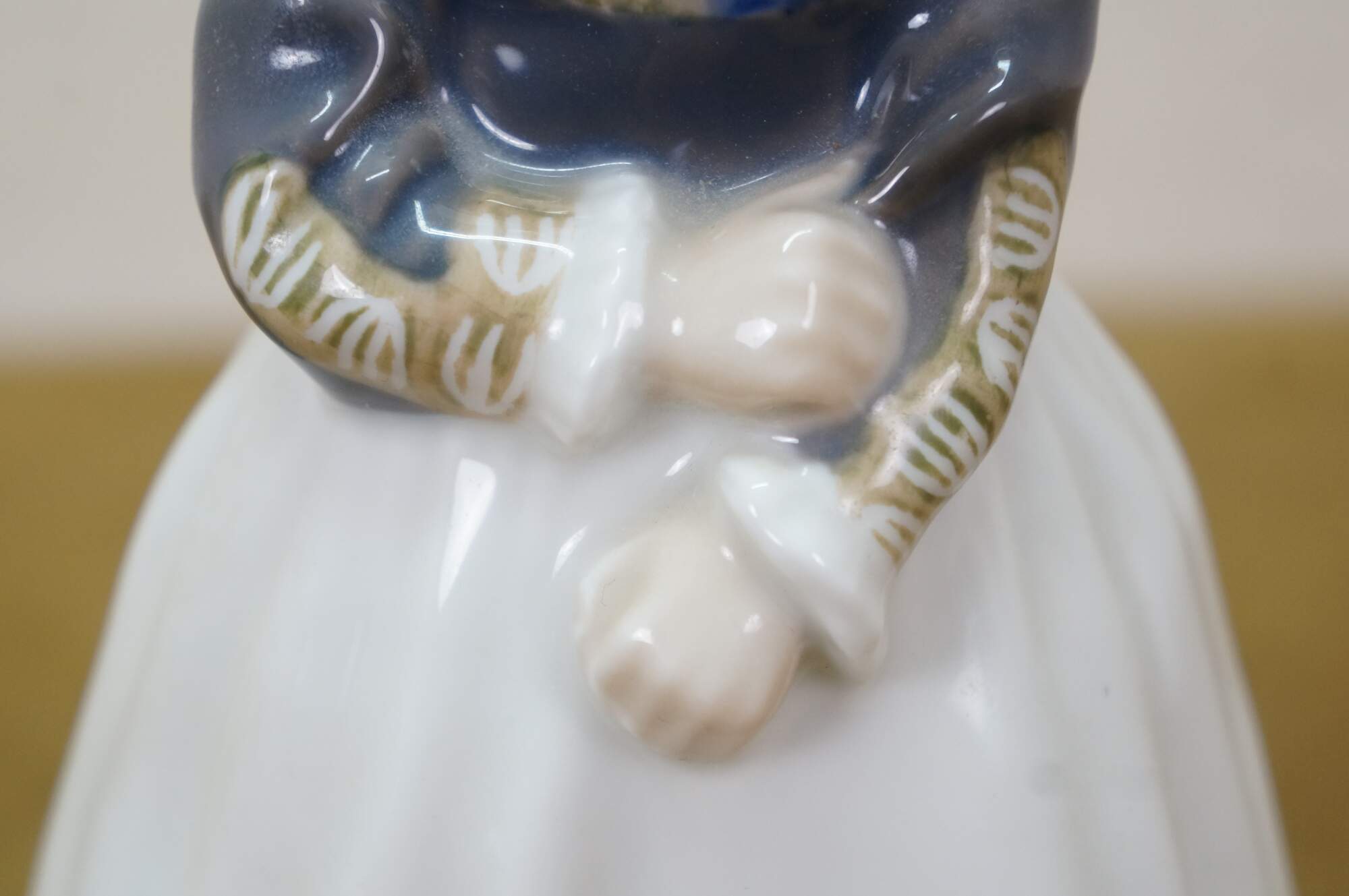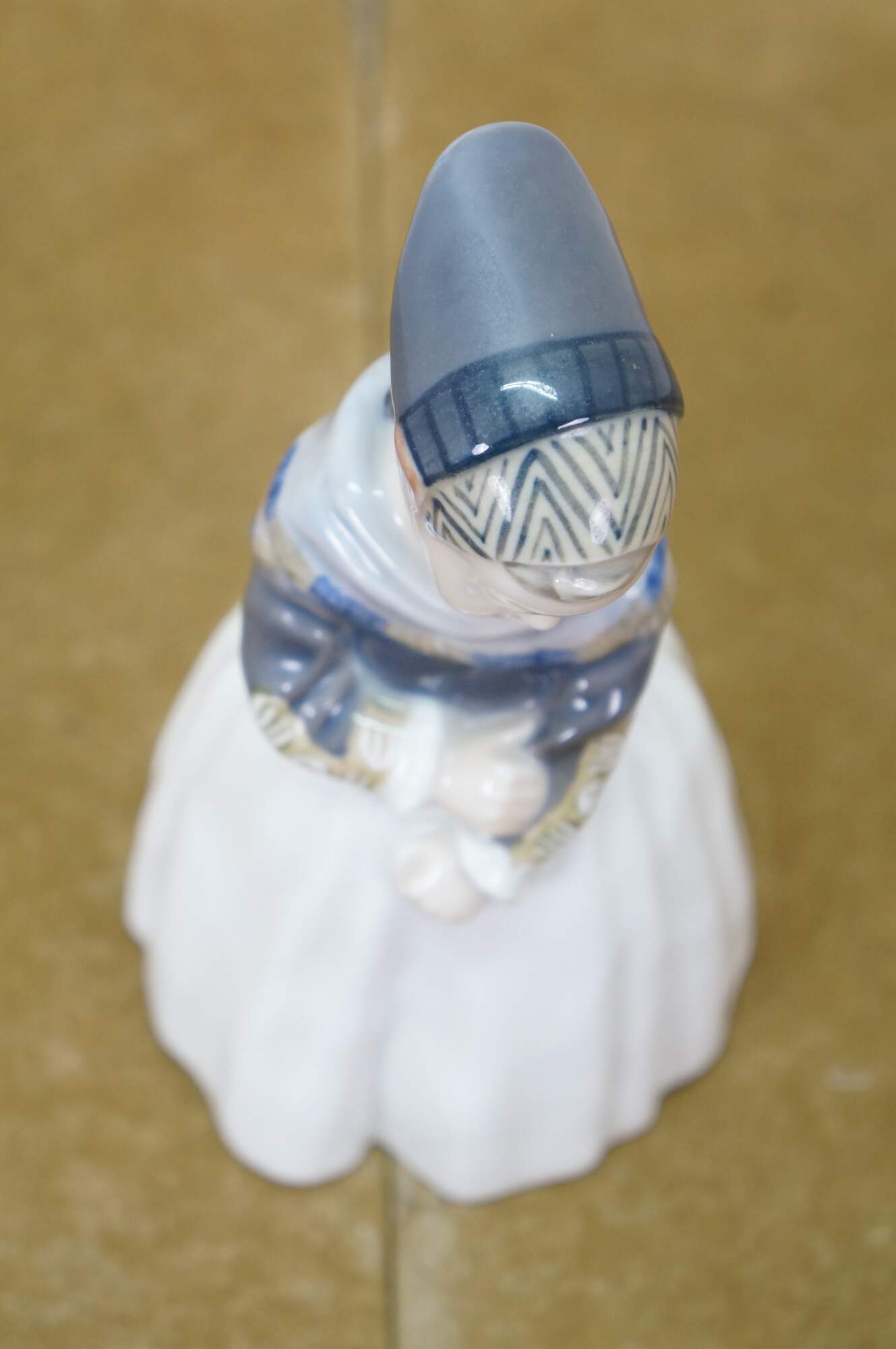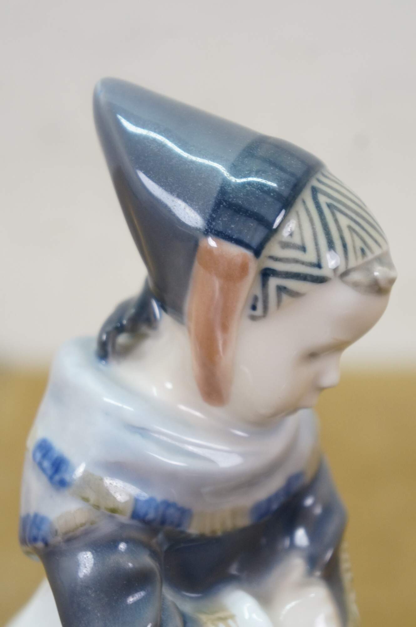 1969-1974 Royal Copenhagen Amager Girl porcelain figurine, model 1251. Designed in 1911 by Lotte Benter and produced in Denmark, it depicts a young girl in traditional Danish regional dress.