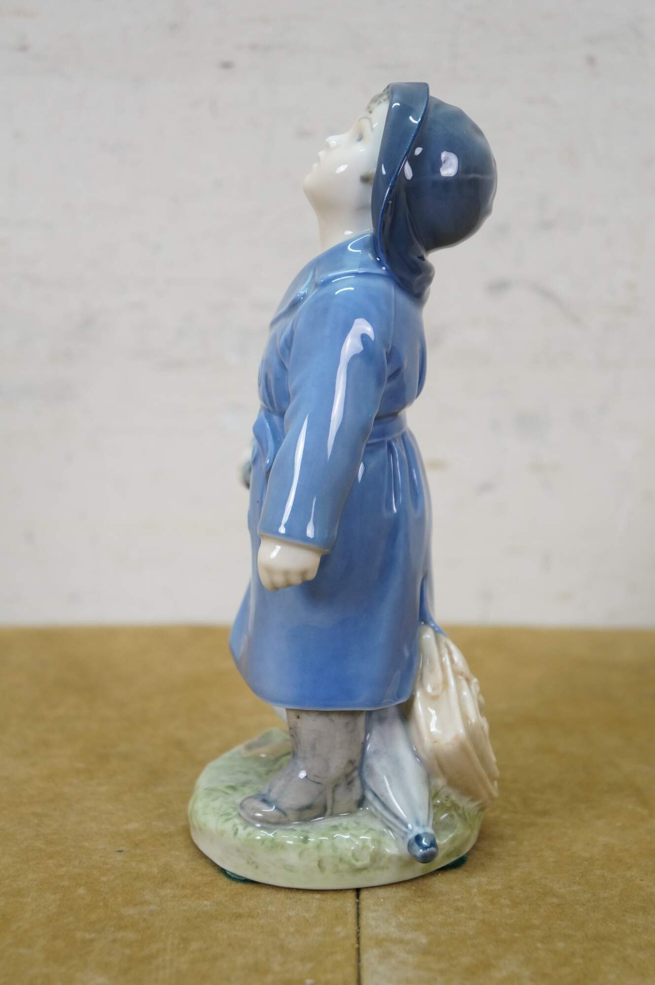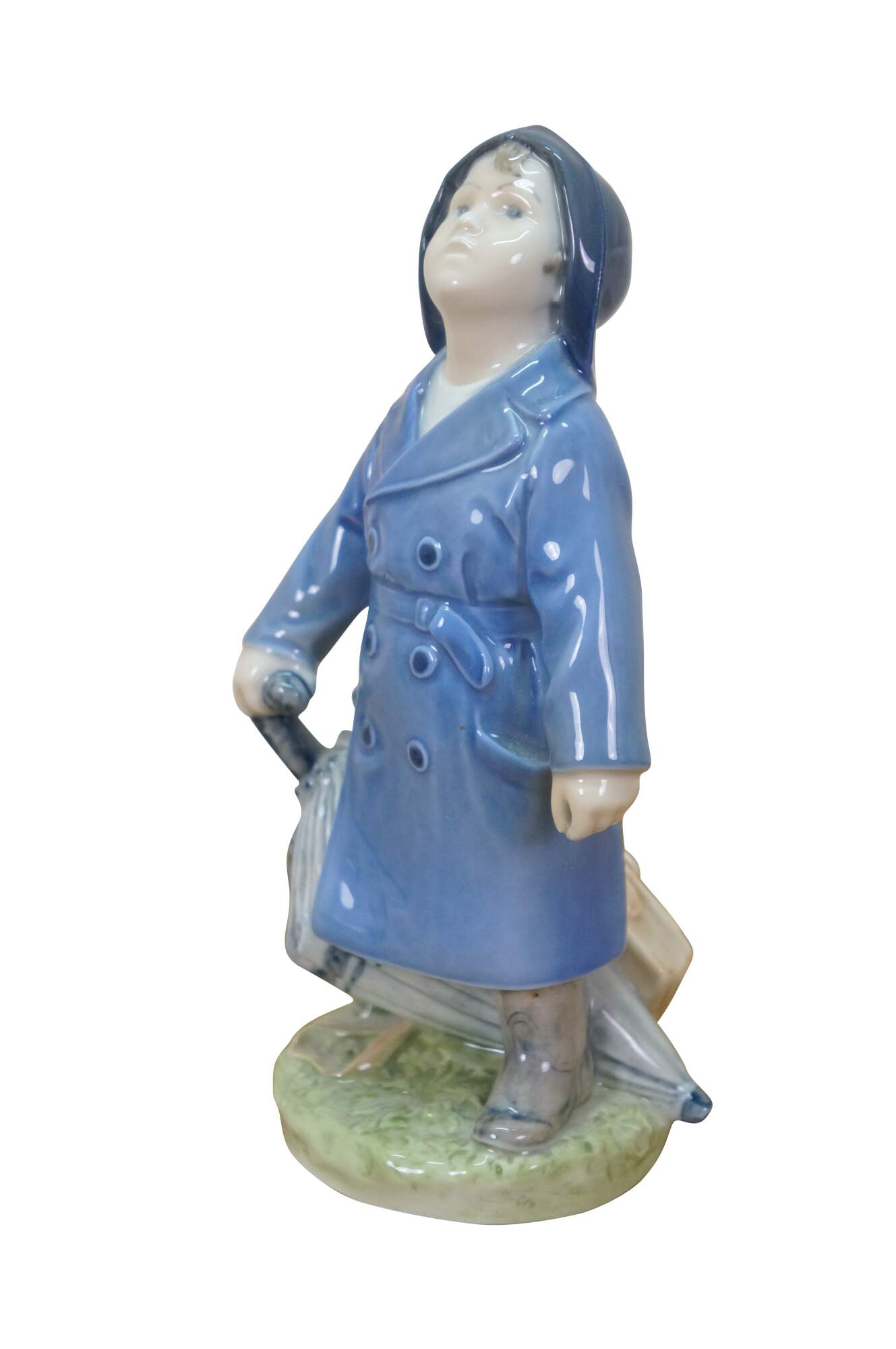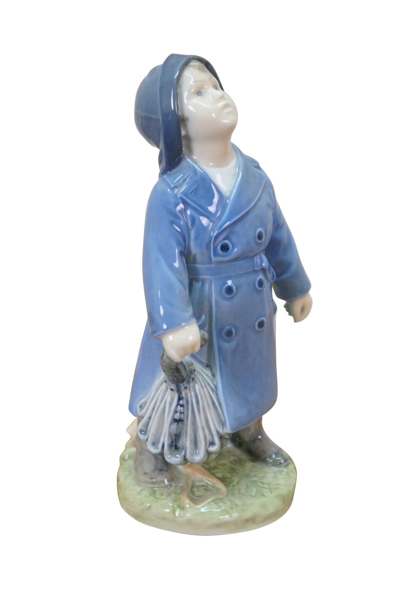 1969-1974 Royal Copenhagen Boy in Raincoat with Umbrella porcelain figurine by designer Ada Bonfils, Model 3556
