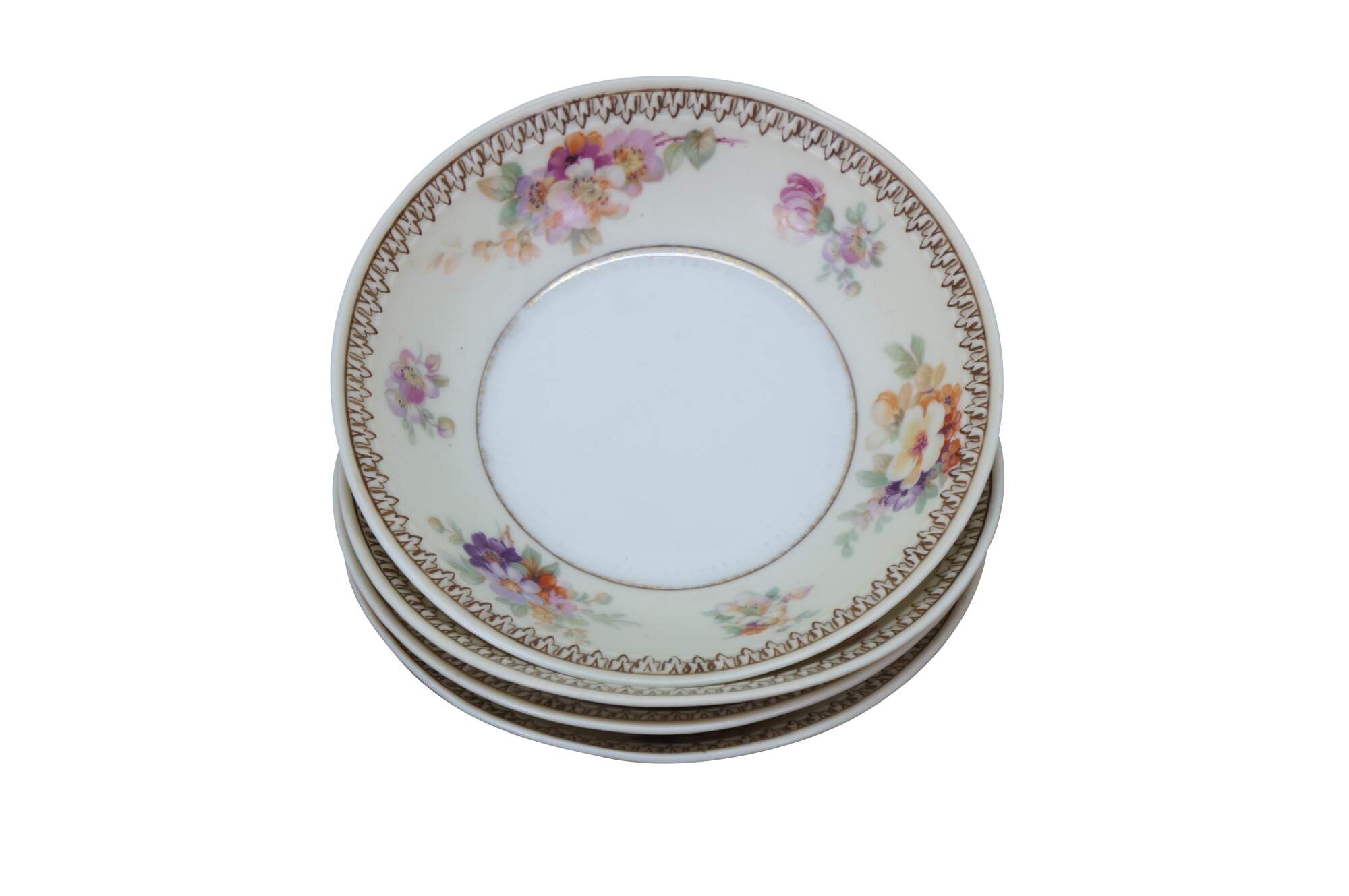 Antique Silesia German Hermann Ohme Old Ivory 201 Floral Bowls, circa 1882-1928.