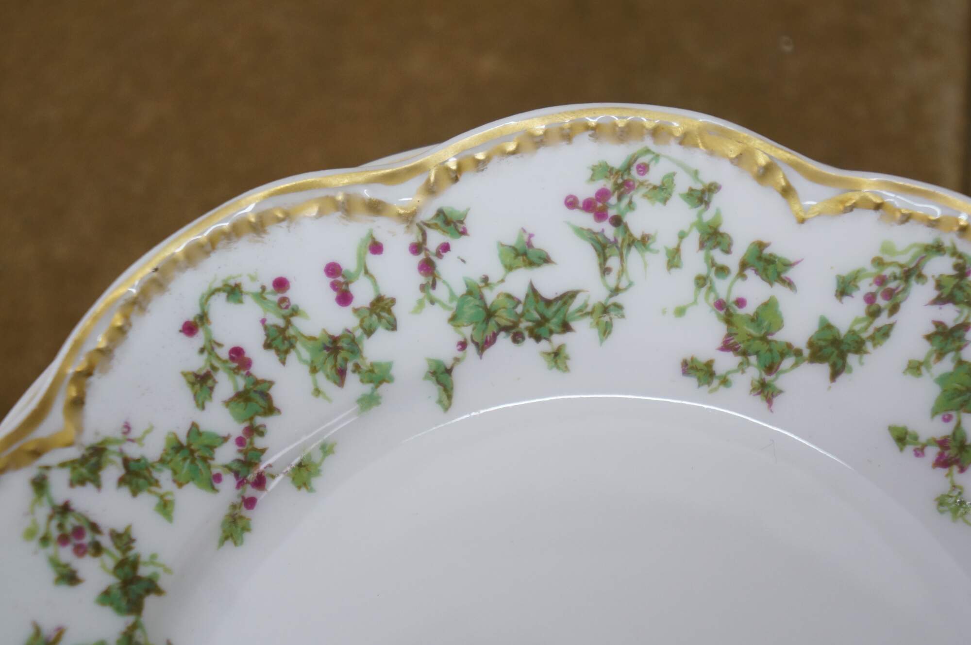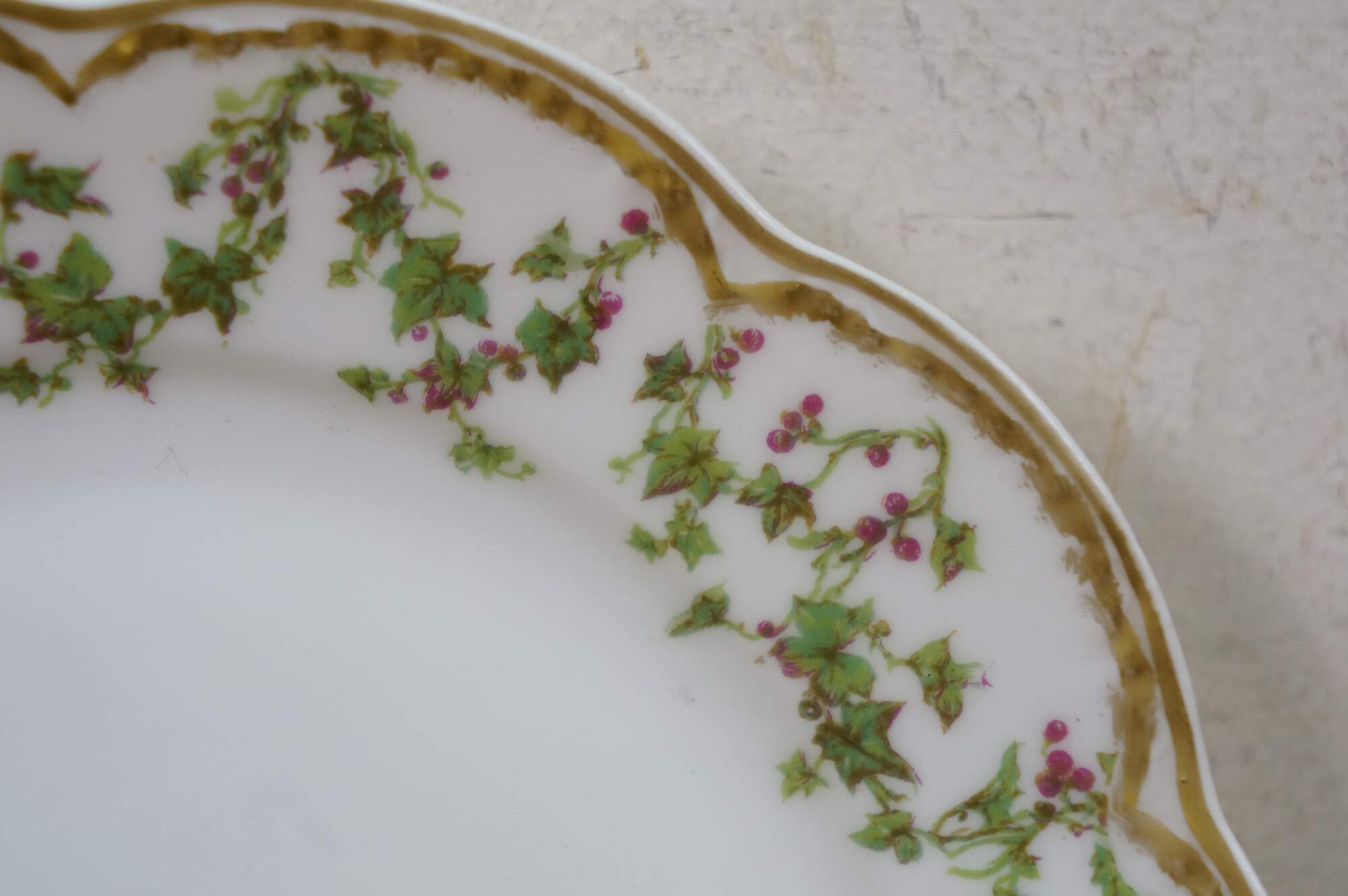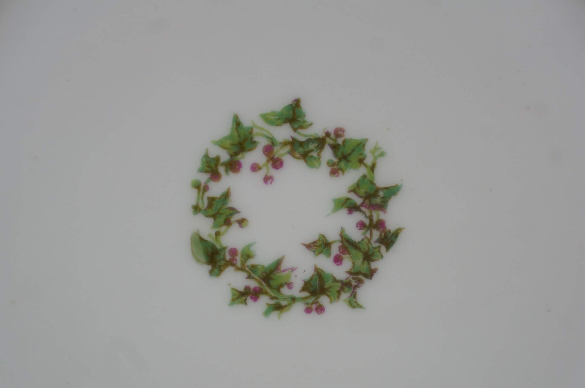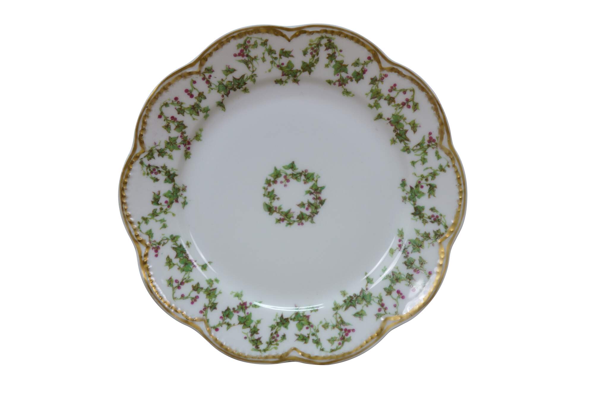 Six rare antique Haviland Limoges Schleiger France scalloped Holly Berries Christmas wreath plates.