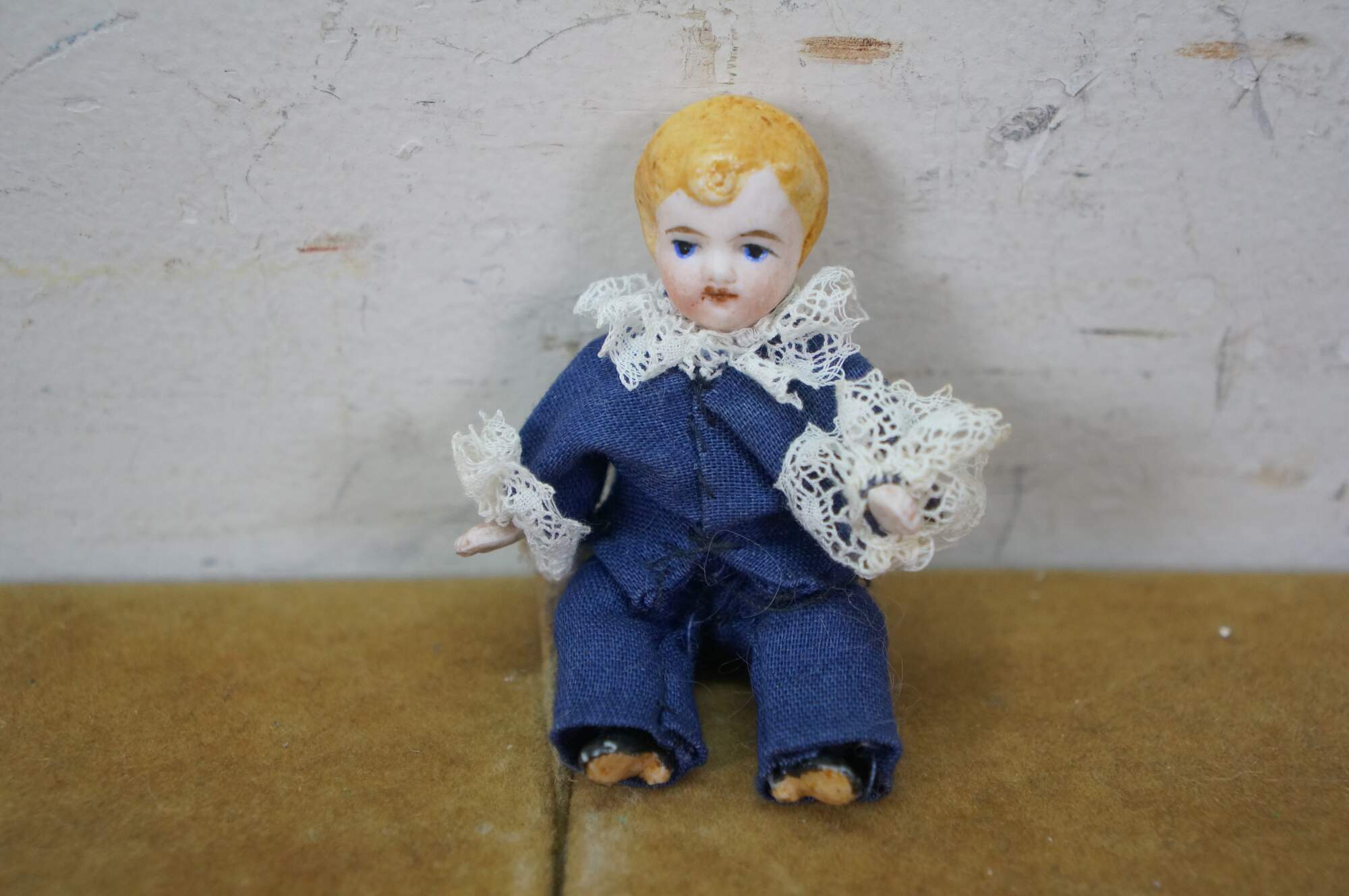 3 Vintage German Porcelain Doll Figurines Dresden Style Lace Bisque Boy Girl