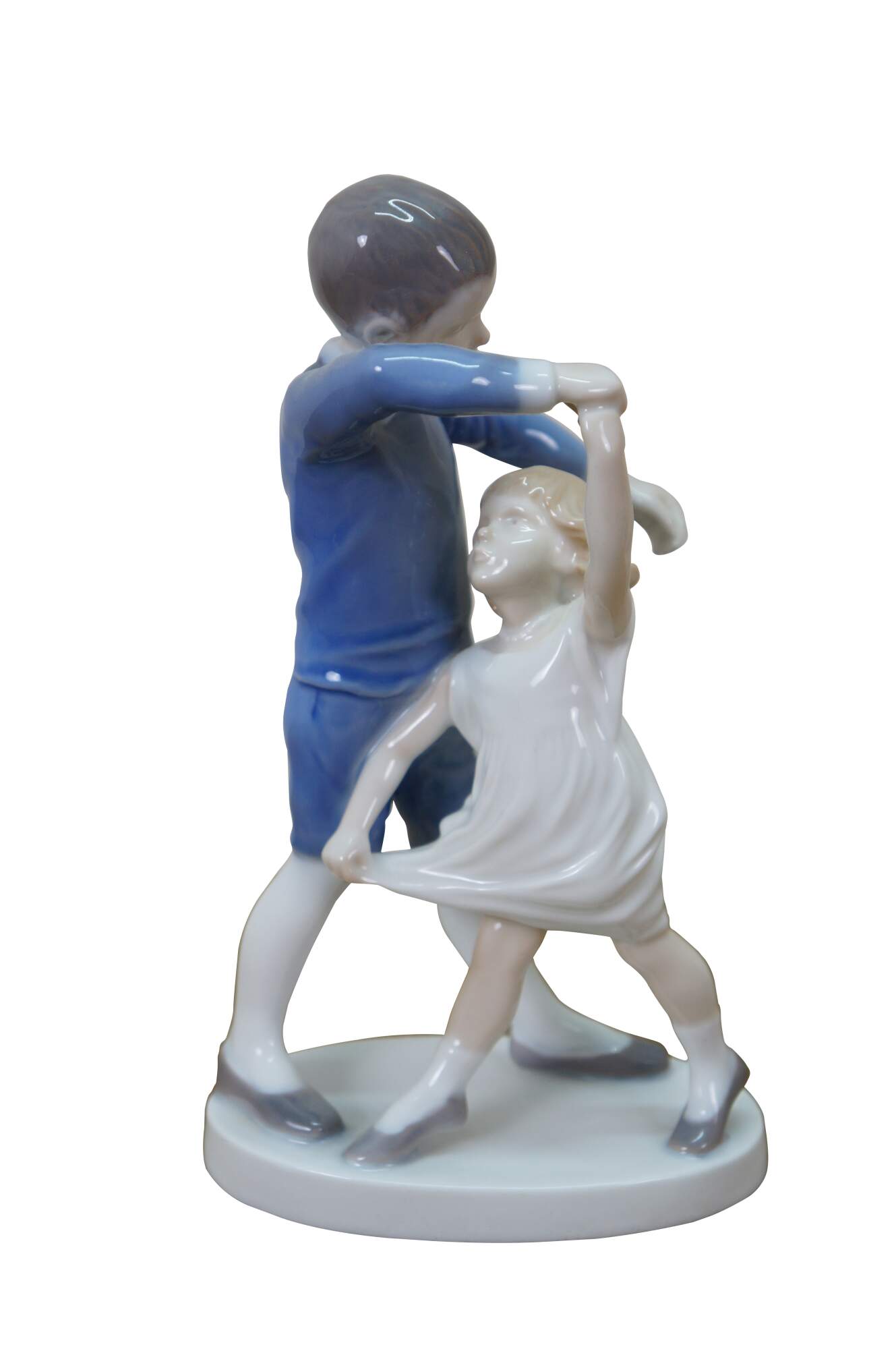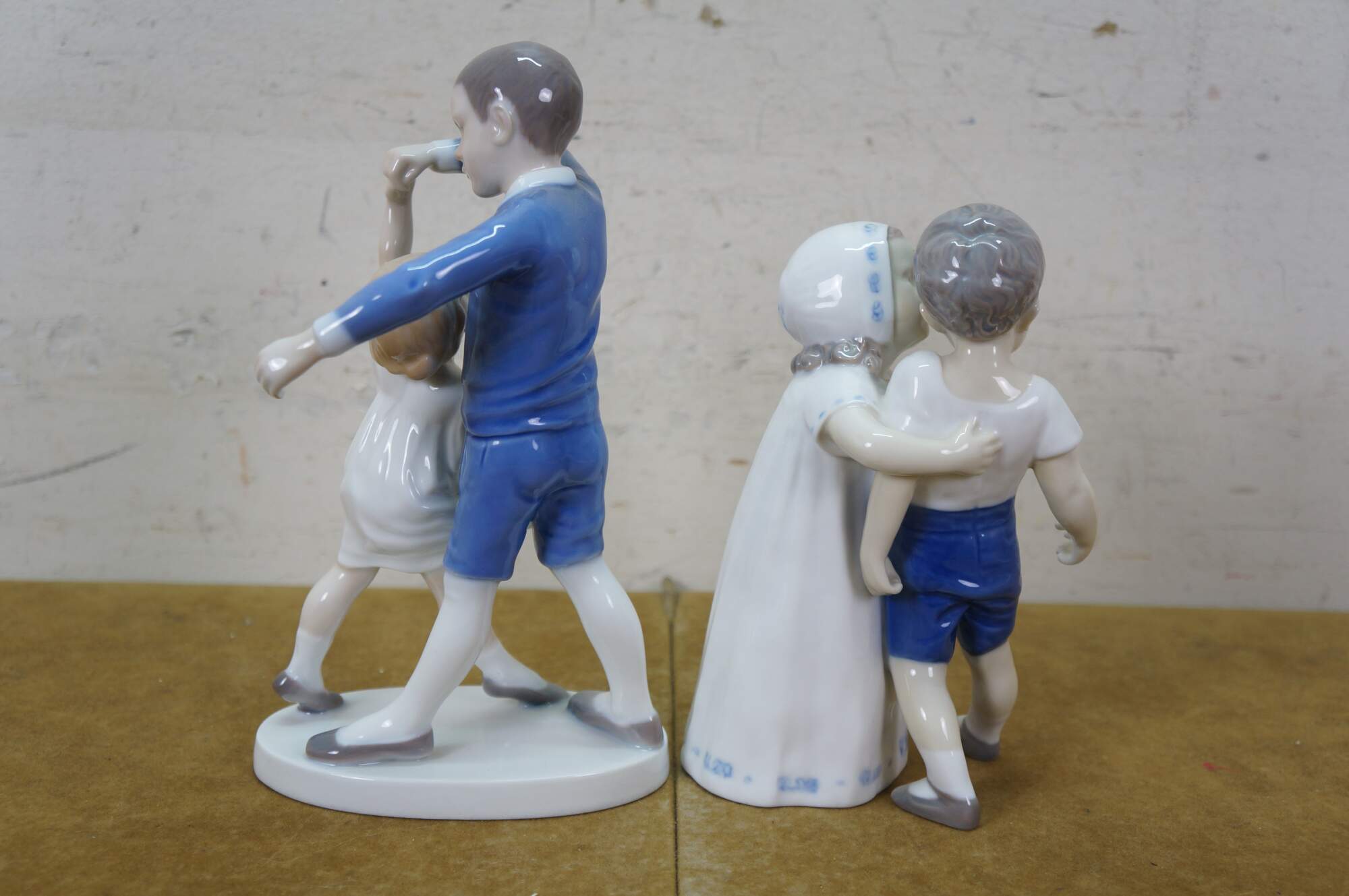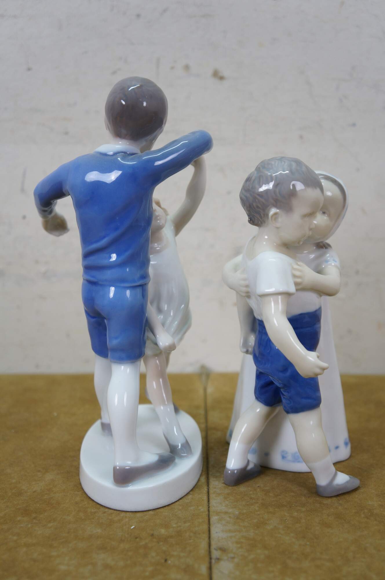 Vintage Bing & Grøndahl porcelain figurines, Dancing School or Dancing Children 1845 & Love Refused or Love Scorned 1614. Both created by Danish artist Ingeborg Plockross Irminger.