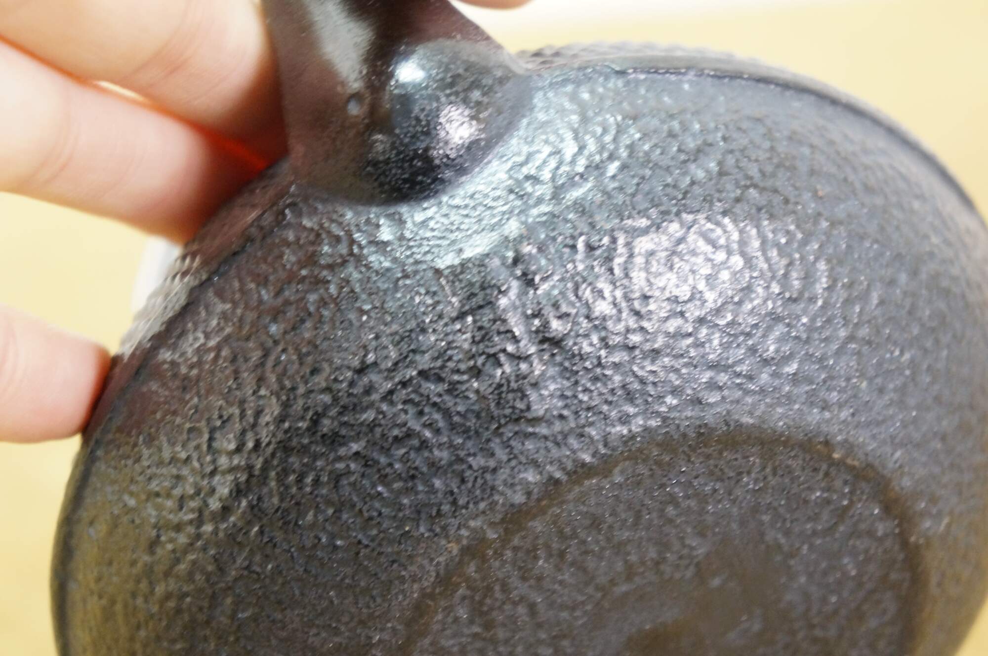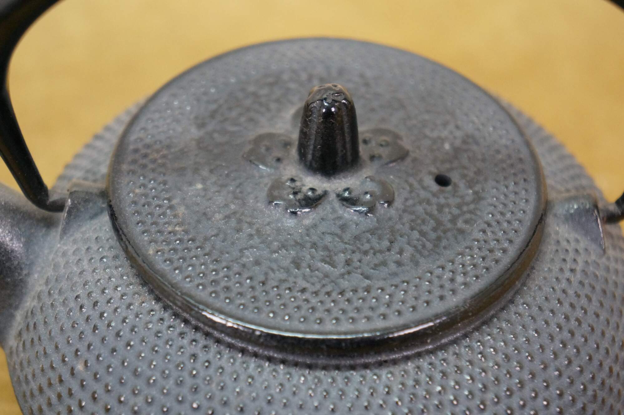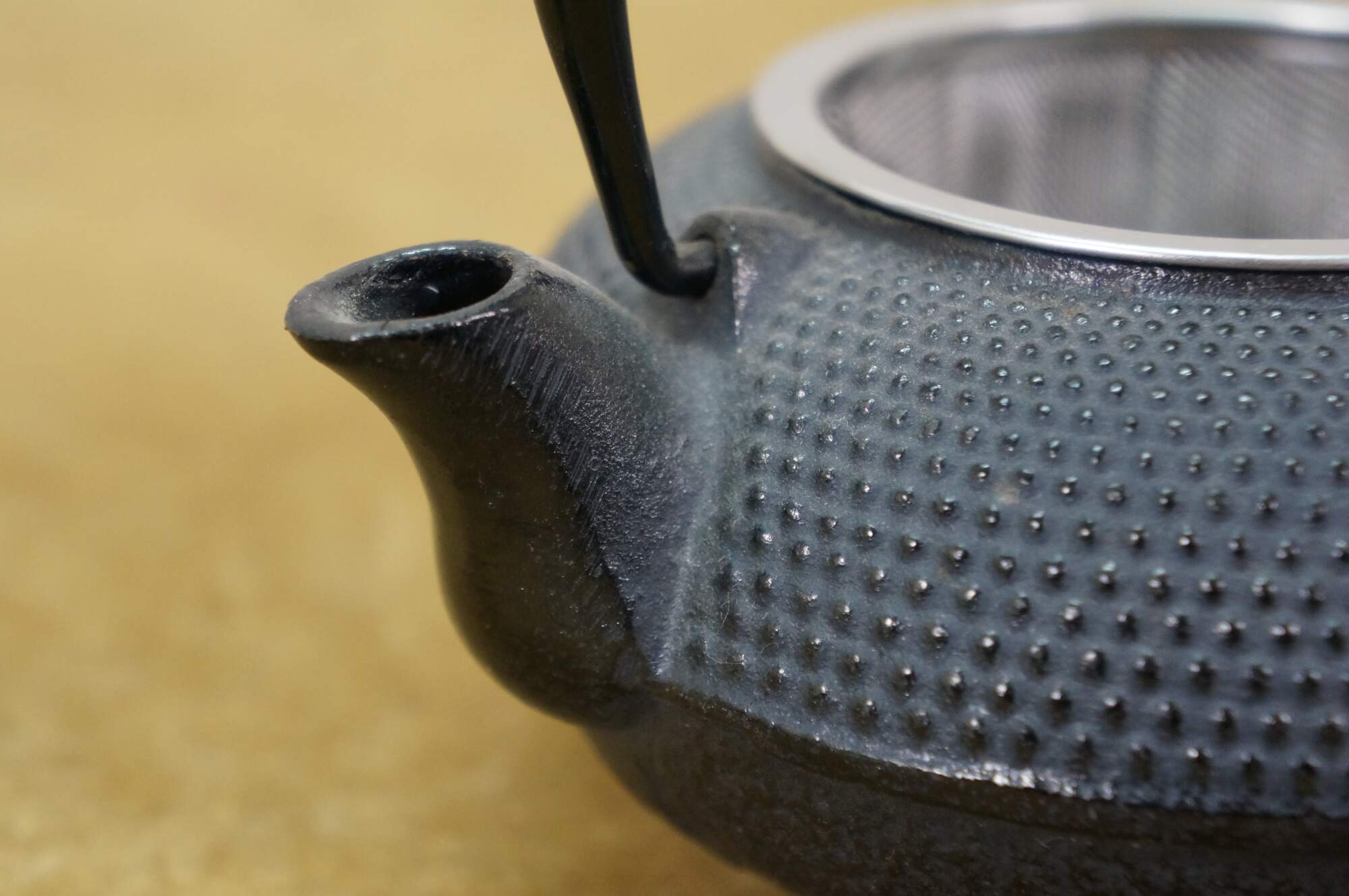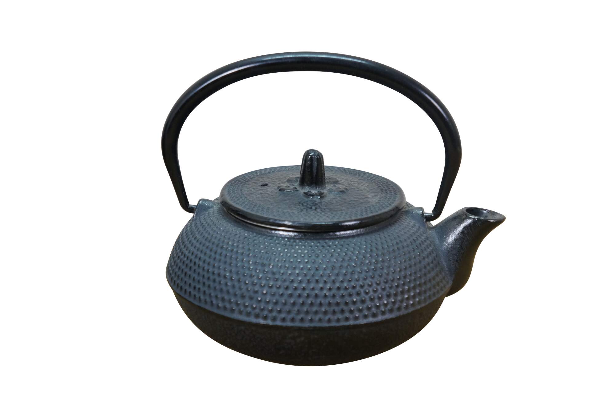 Vintage Japanese black cast iron Arare / hobnail pattern teapots / kettles, known as tetsubin or Nambu tekki. Tetsubin pots are traditionally used for boiling water and are prized for their durability and craftsmanship. The cast iron material helps keep water heated for longer periods than other materials. Water boiled in these kettles can release dissolved iron, which may help prevent anemia and enhances the flavor of green tea.