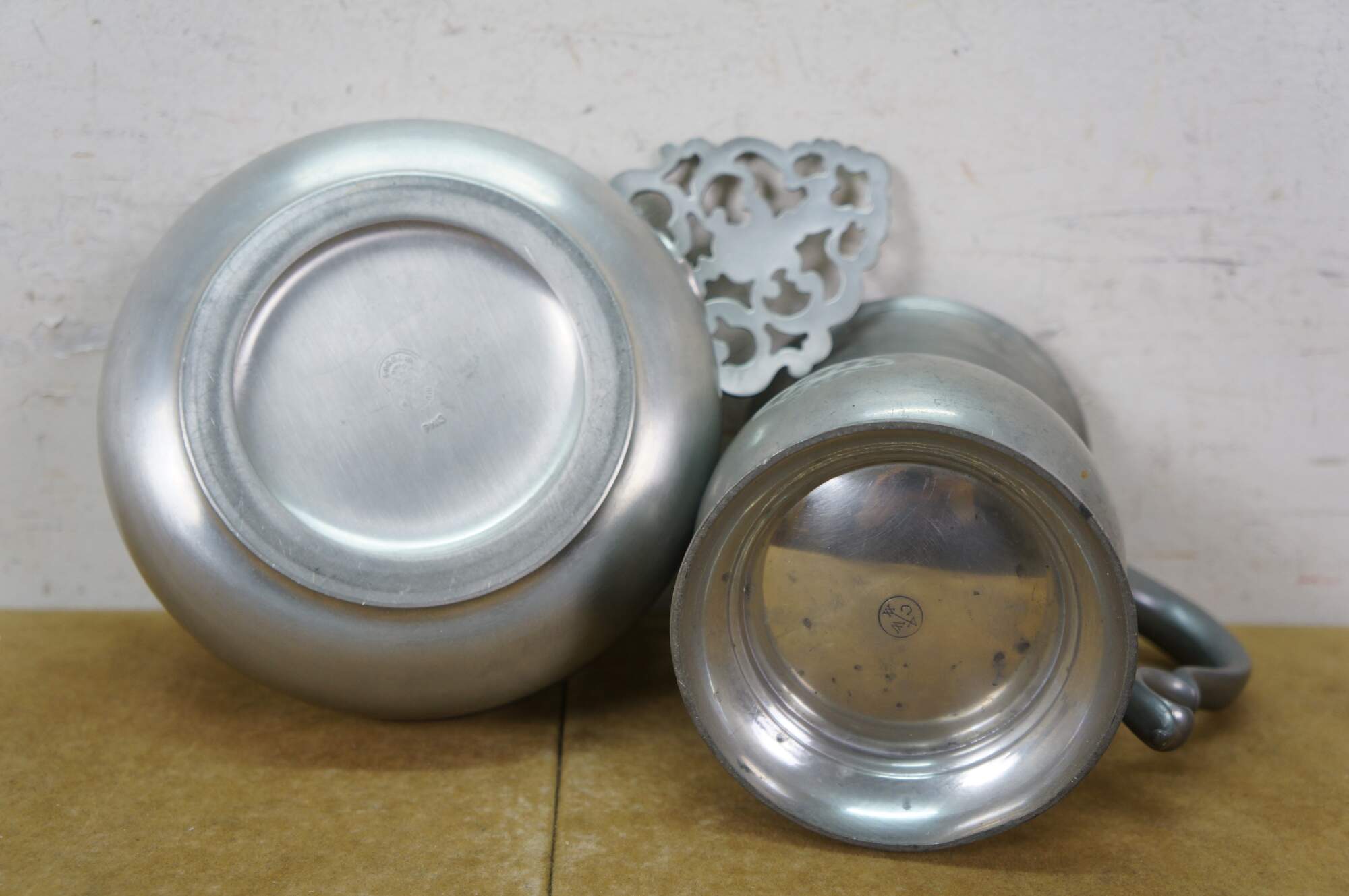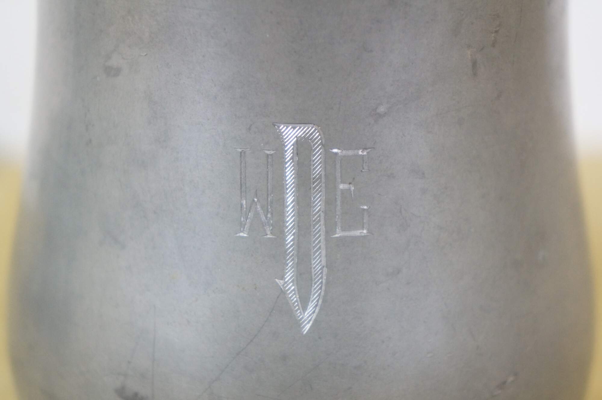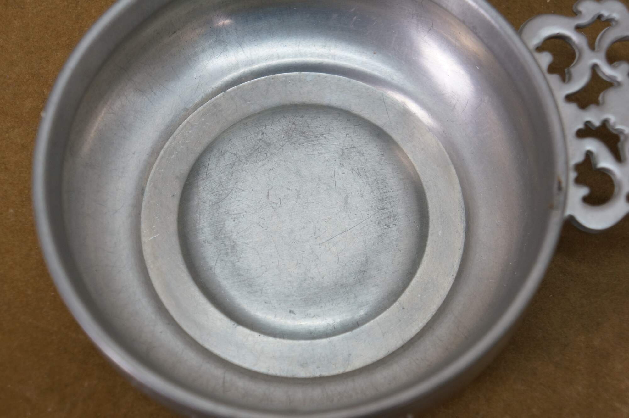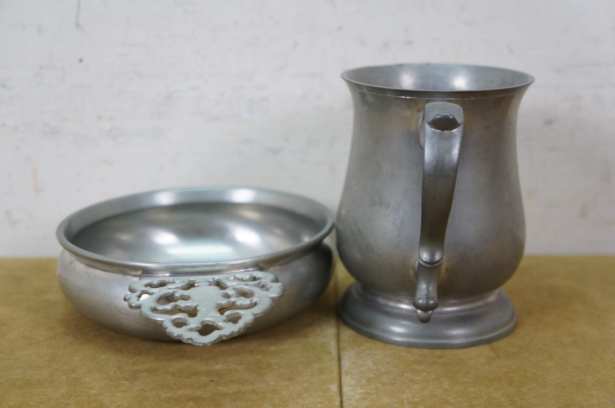Two vintage pewter pieces. Gorham Pewter PH13 porringer cup and Colonial Williamsburg mug.