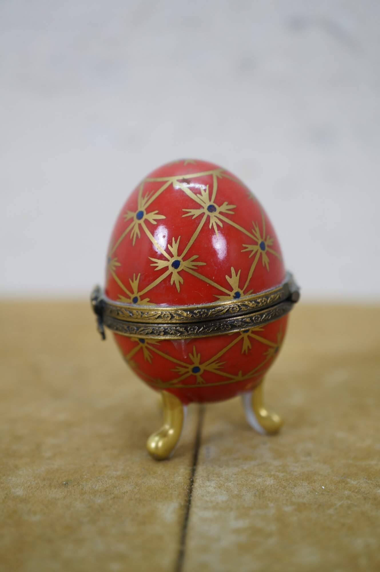 Vintage Limoges France Peint Main porcelain Faberge style Easter egg trinket keepsake box
