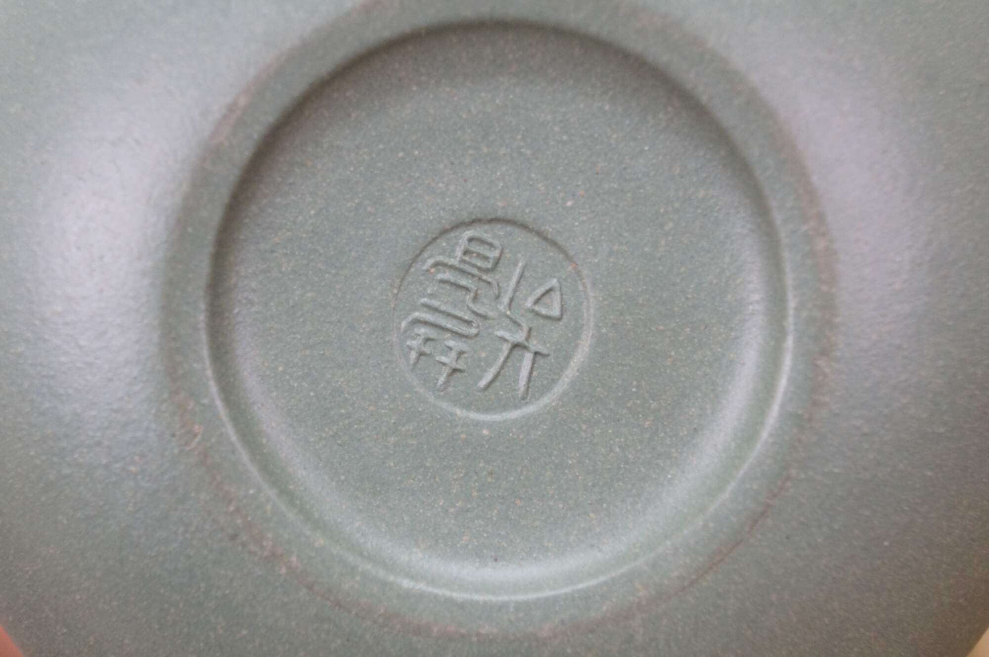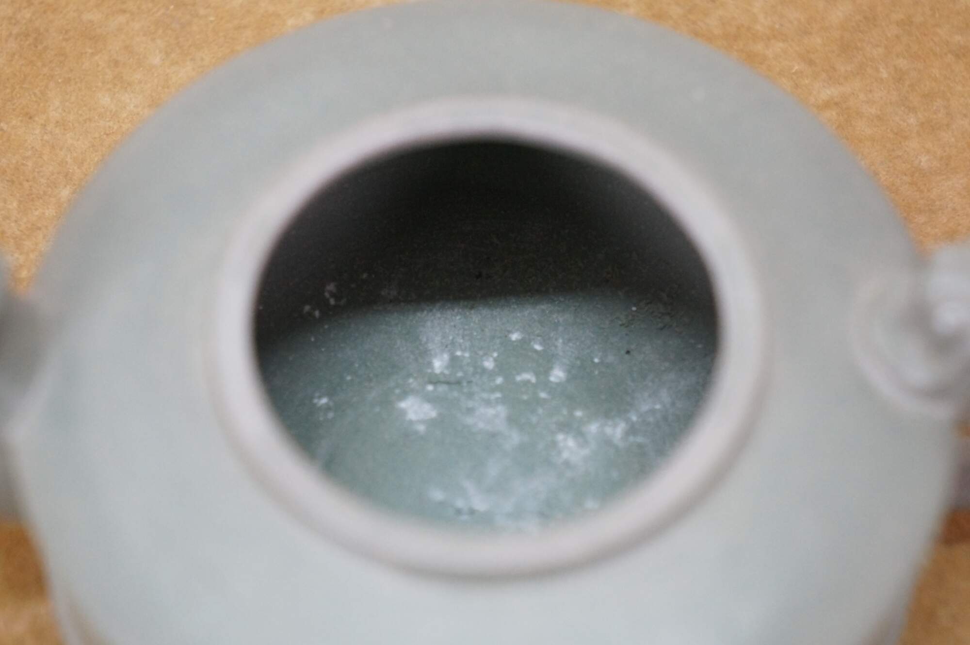 Beautiful vintage Chinese Yixing zisha green clay Kung Fu tea / coffee pot with a Dragon / serpent / Koi fish motif.