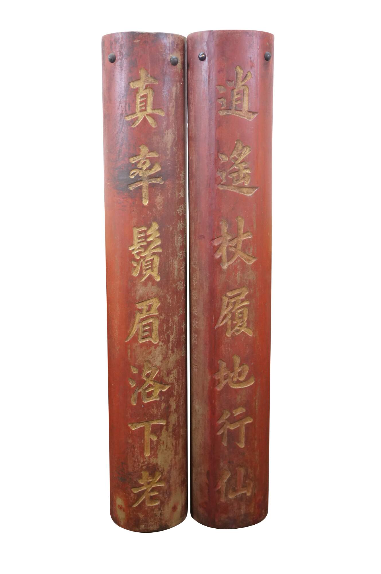 1.Right side couplet; 逍遙杖履地⾏仙:Carefree, with staff and sandals — an earth-roaming immortal.