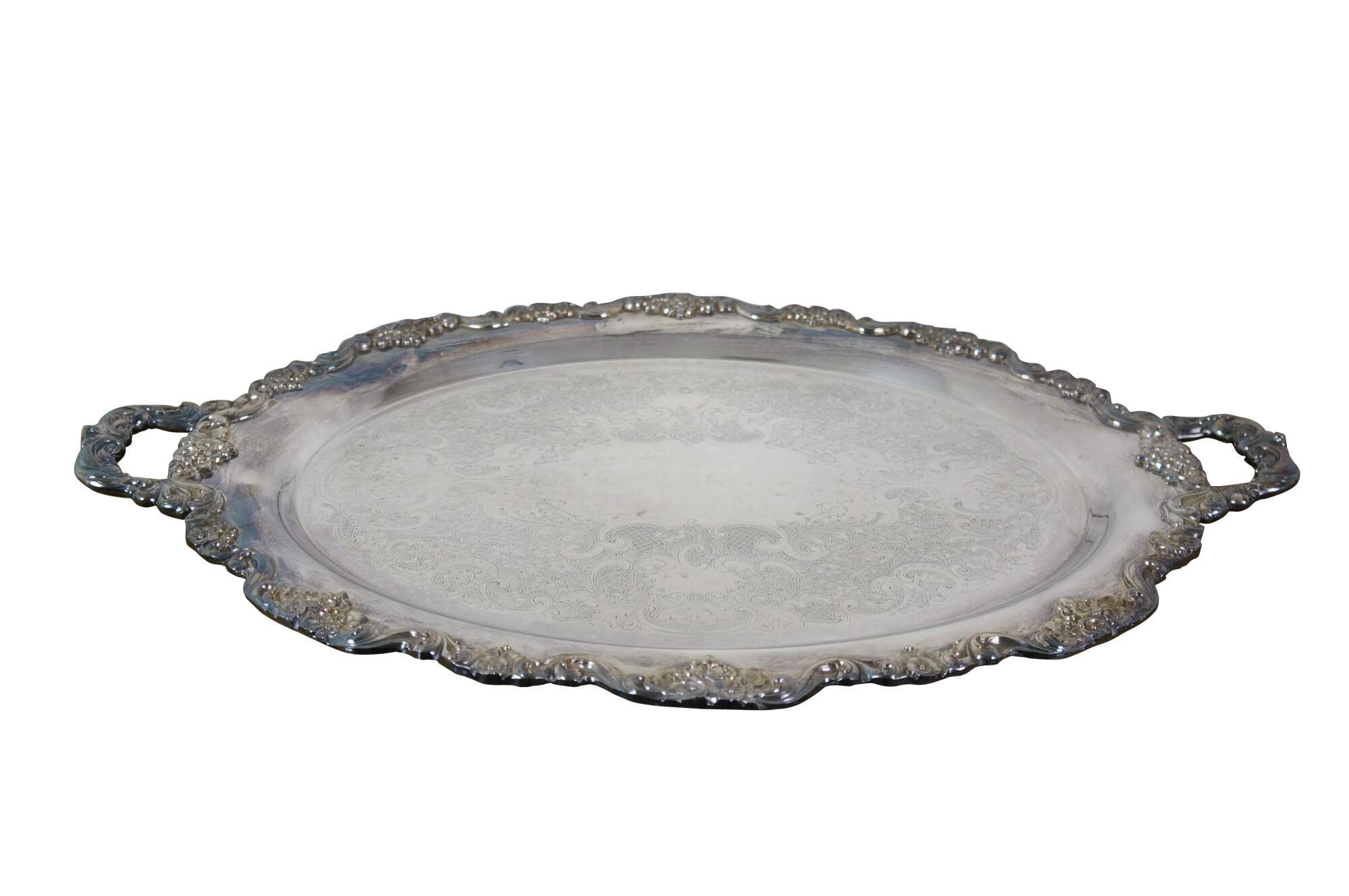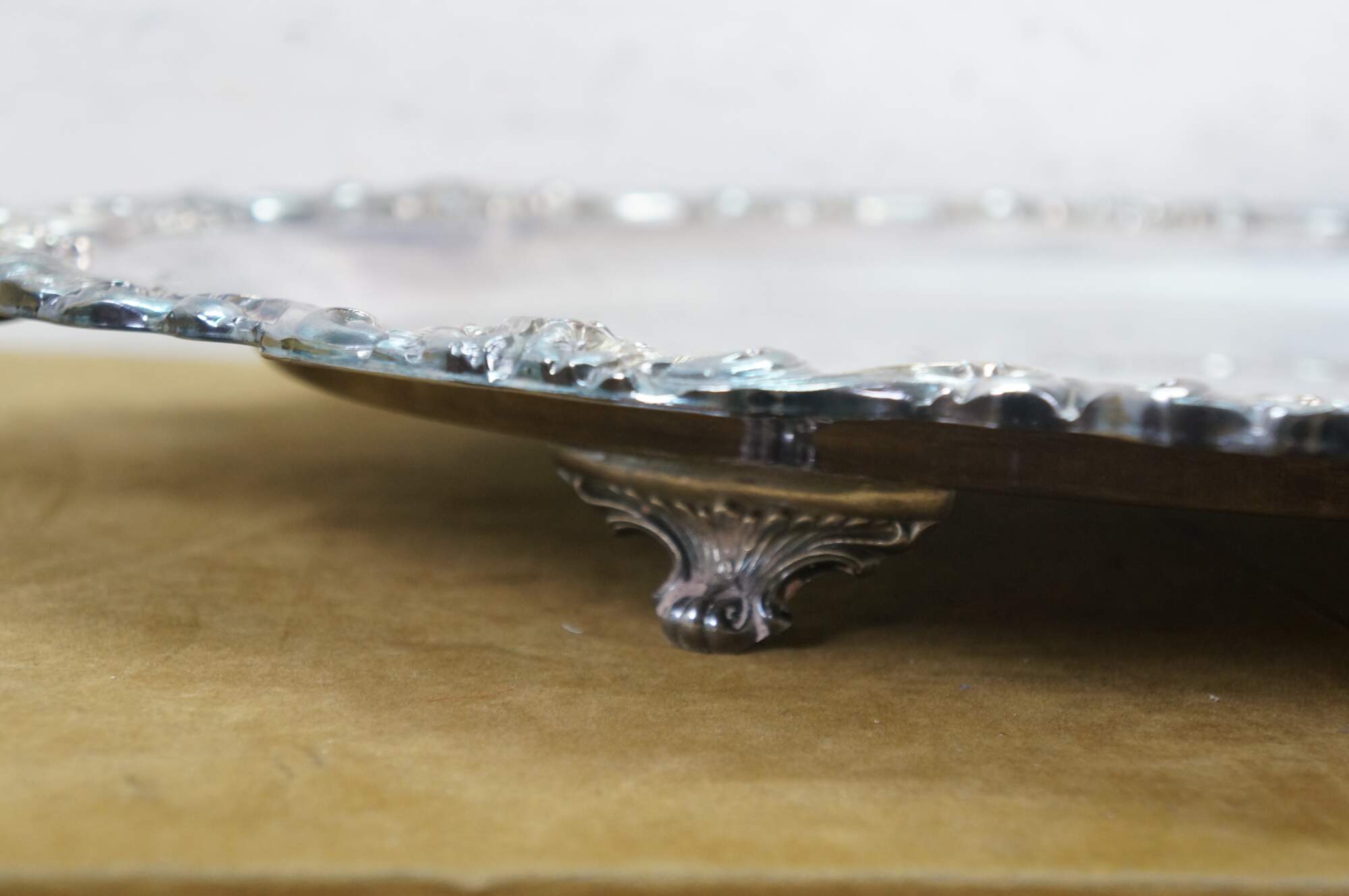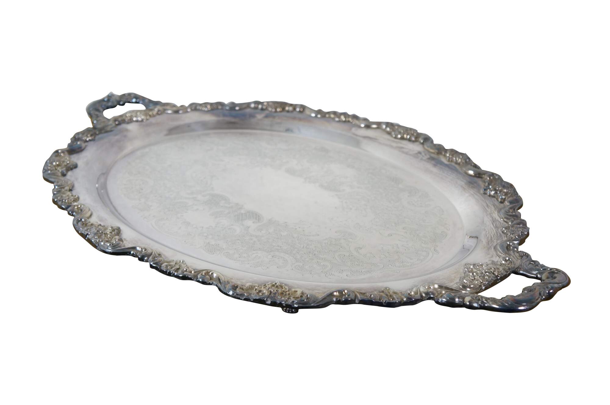 Very large Towle 6955 Grand Duchess scalloped Victorian floral silver plate handled bar / butler / waiter serving tray or platter.