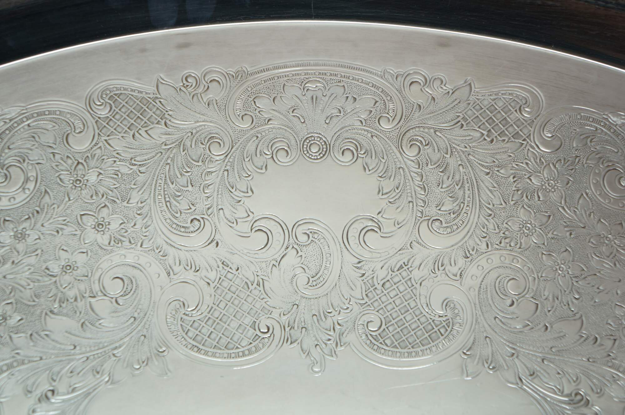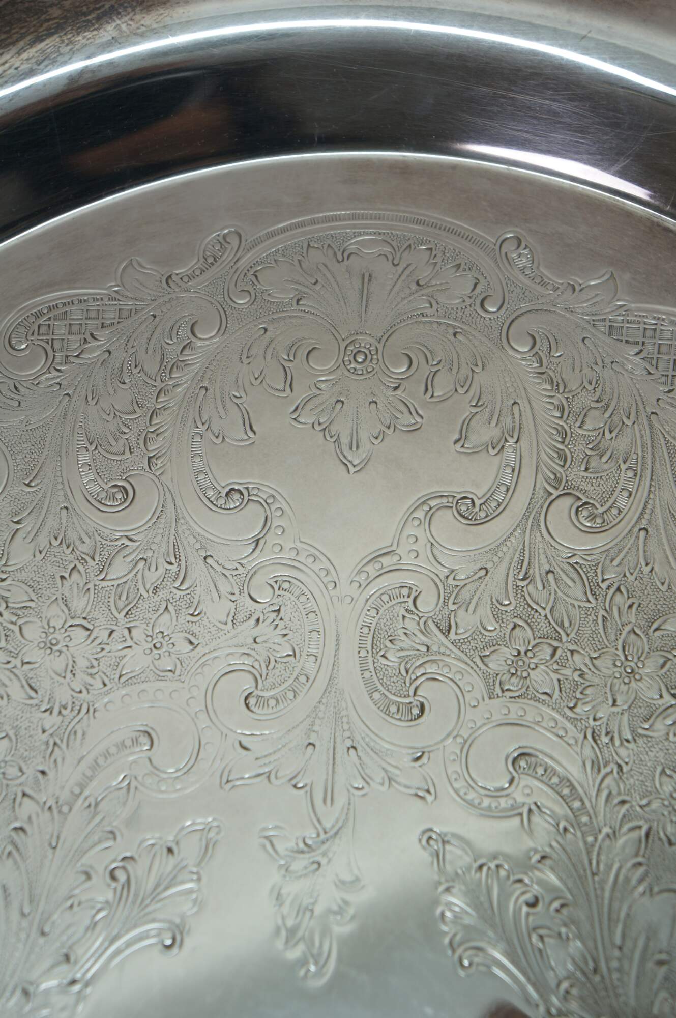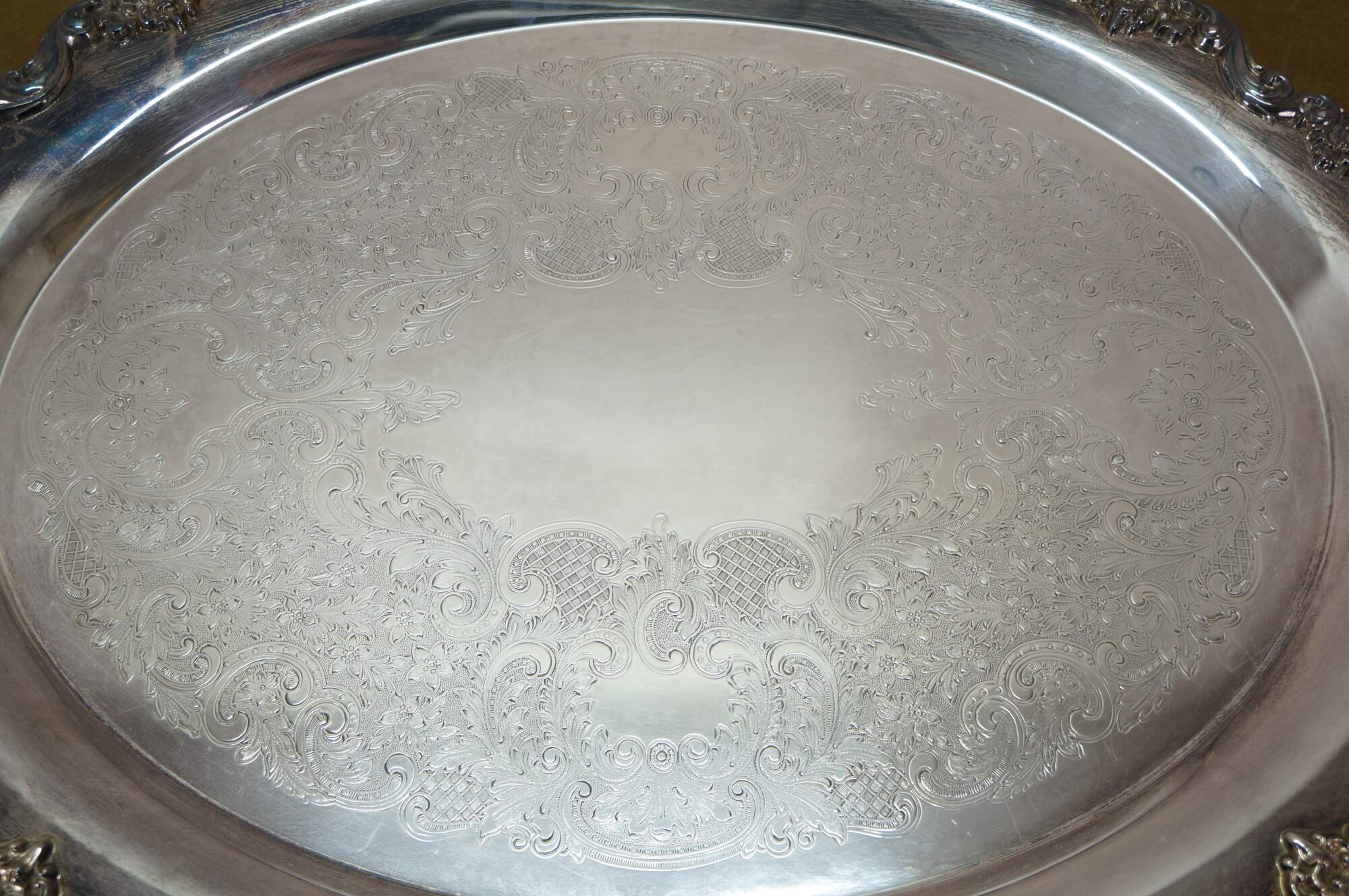 Very large Towle 6955 Grand Duchess scalloped Victorian floral silver plate handled bar / butler / waiter serving tray or platter.
