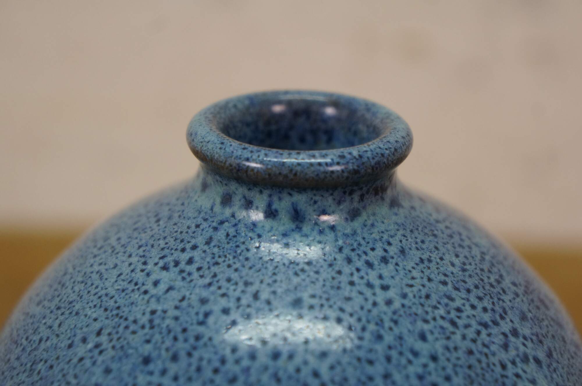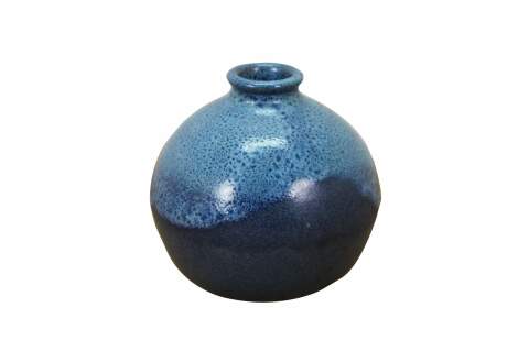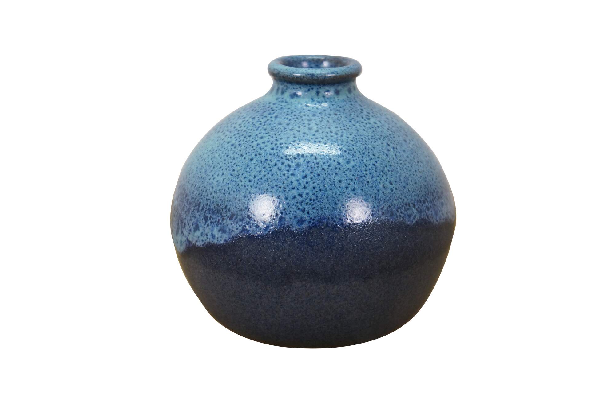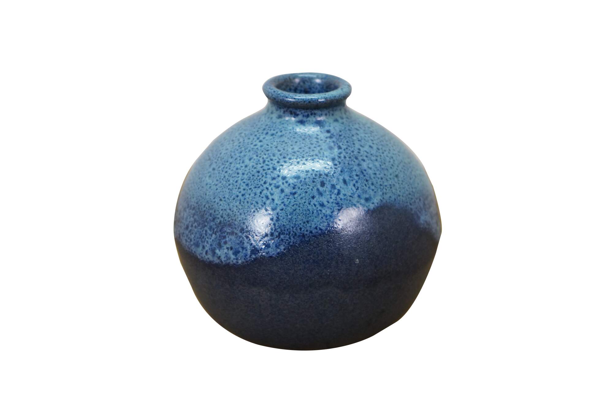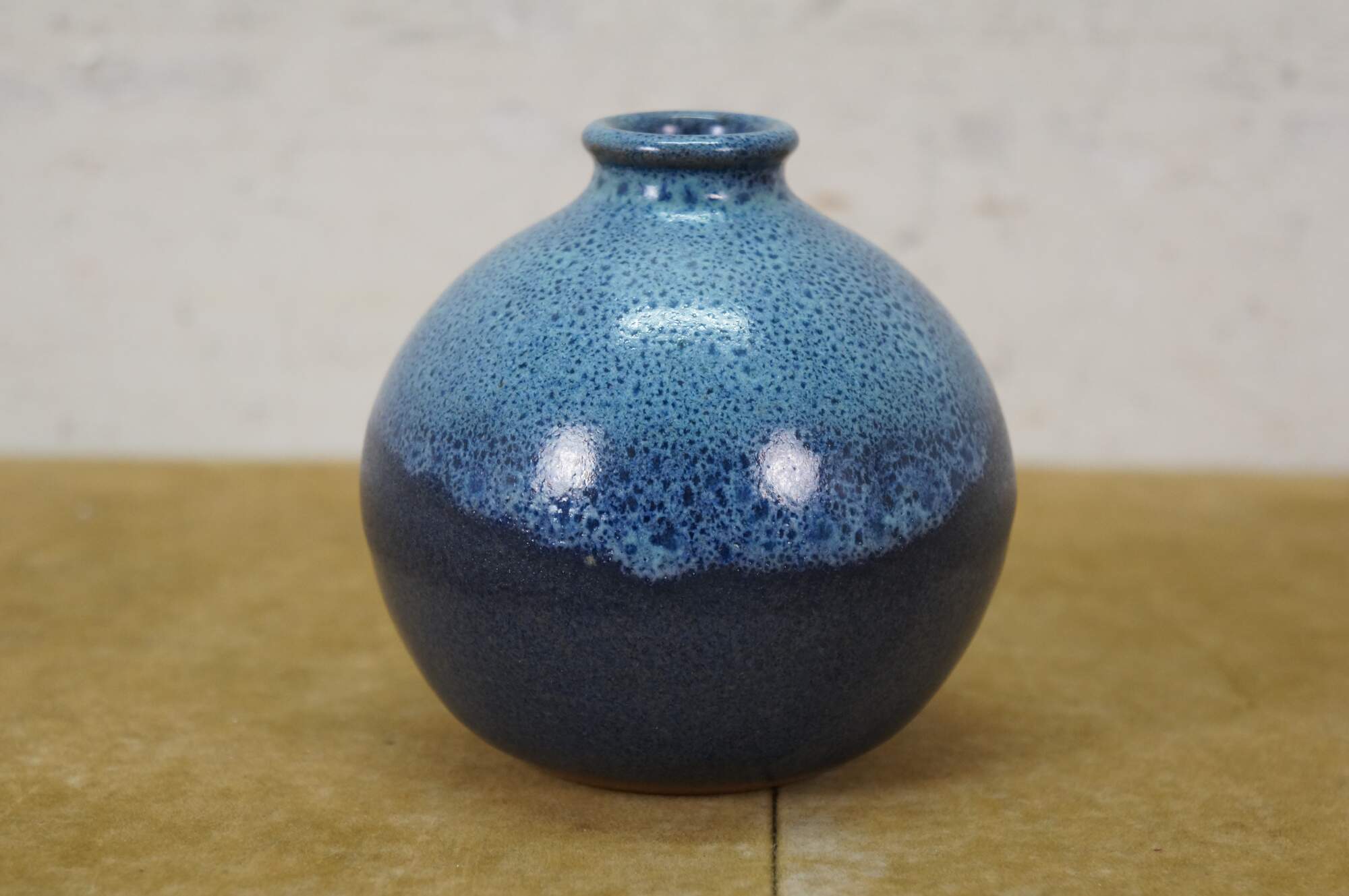 Vintage Studio Art Pottery Blue Mottled Glaze Bud Flower Vase 4"