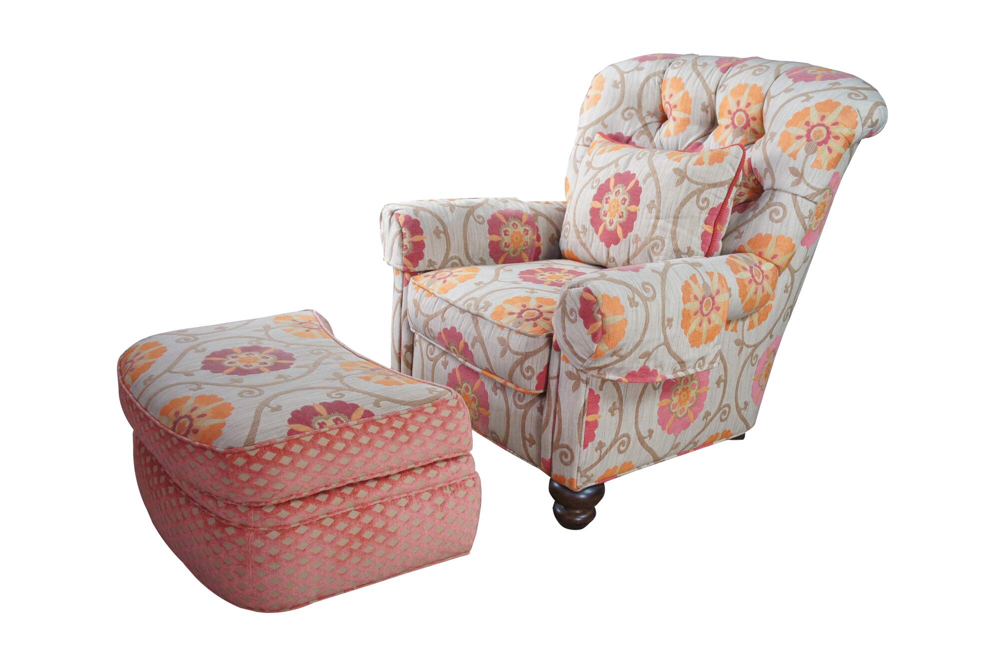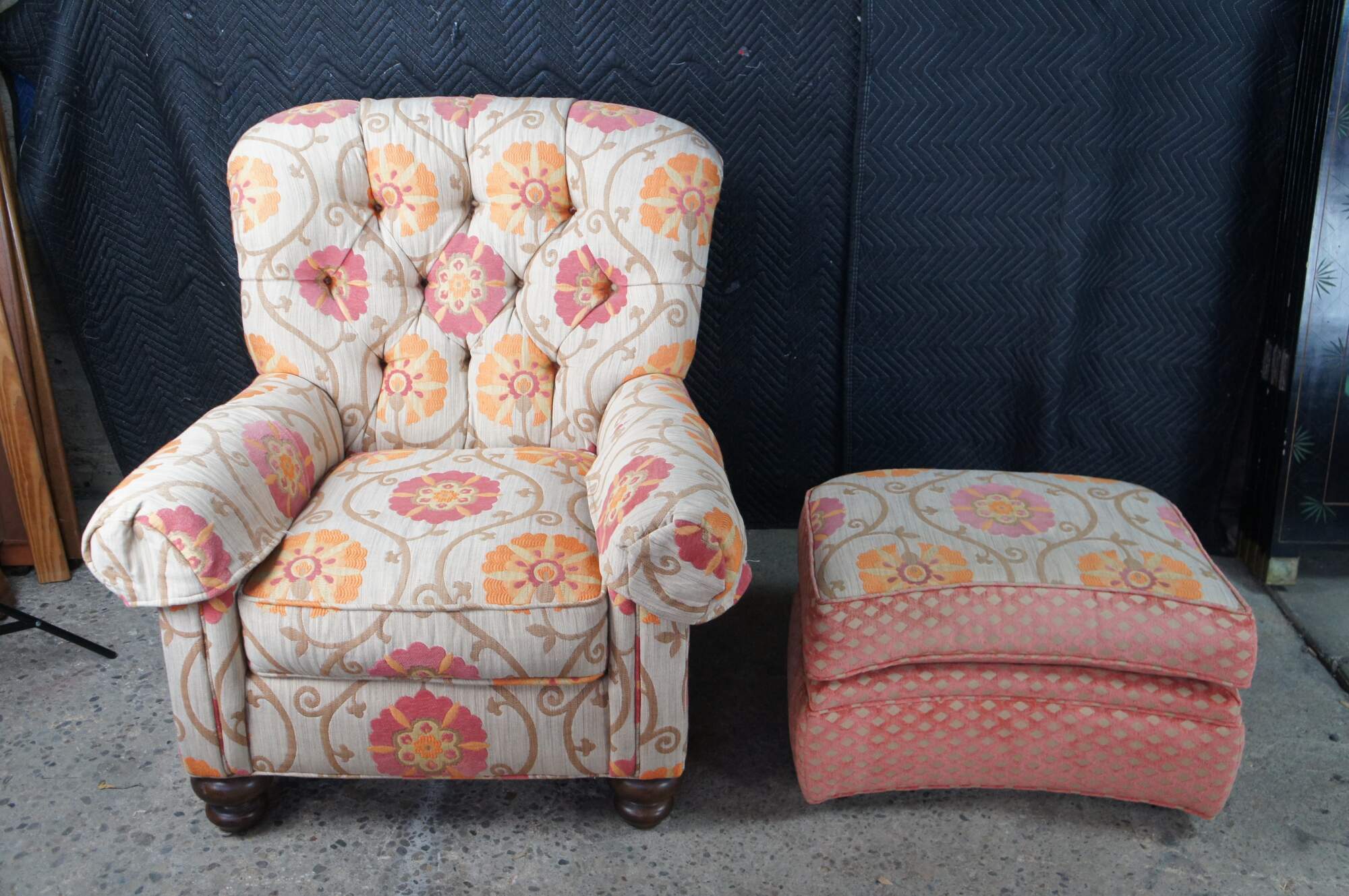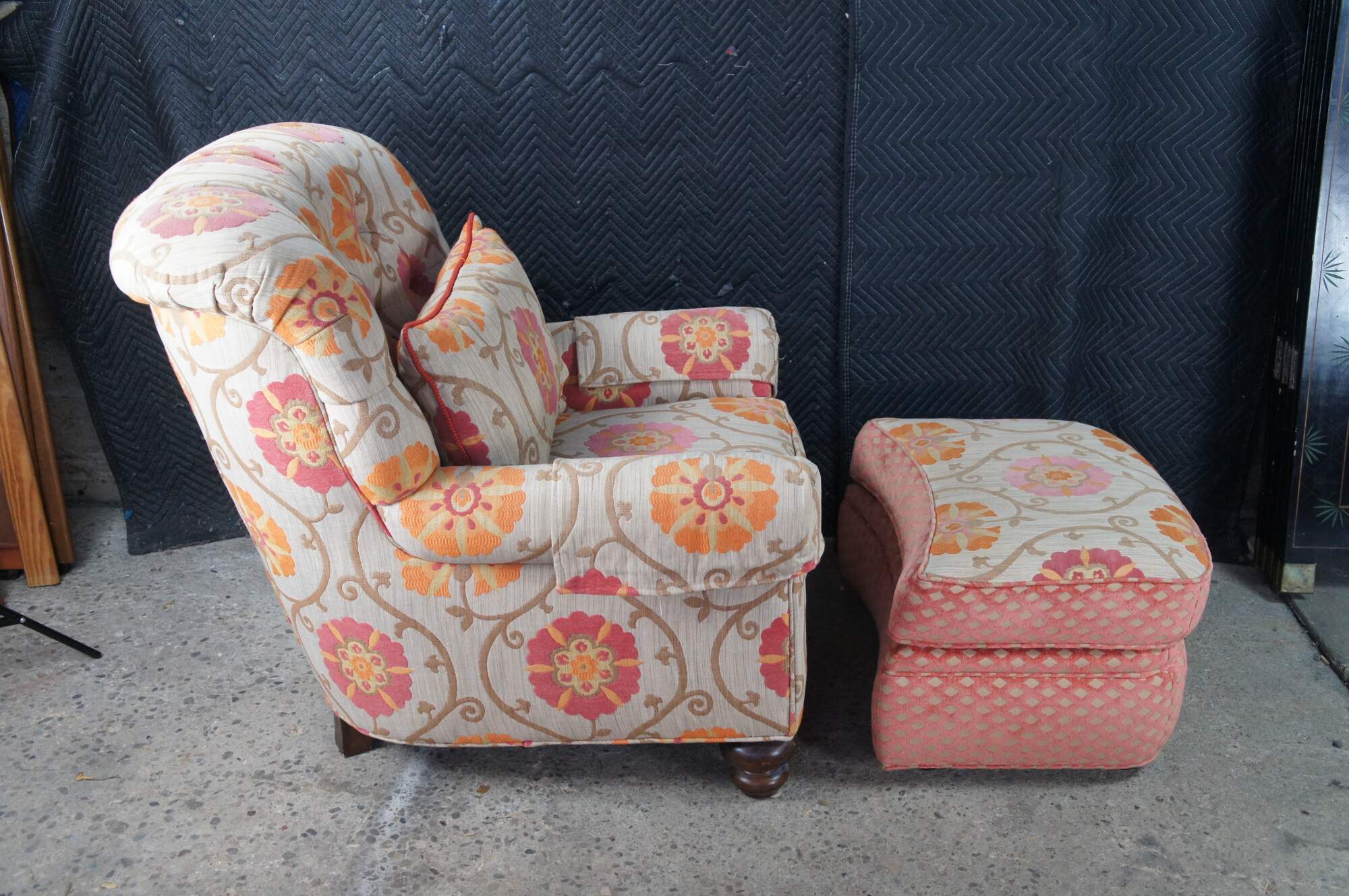 Vintage Pearson Furniture club / lounge / arm chair and ottoman / footrest / stool featuring a floral acanthus design.