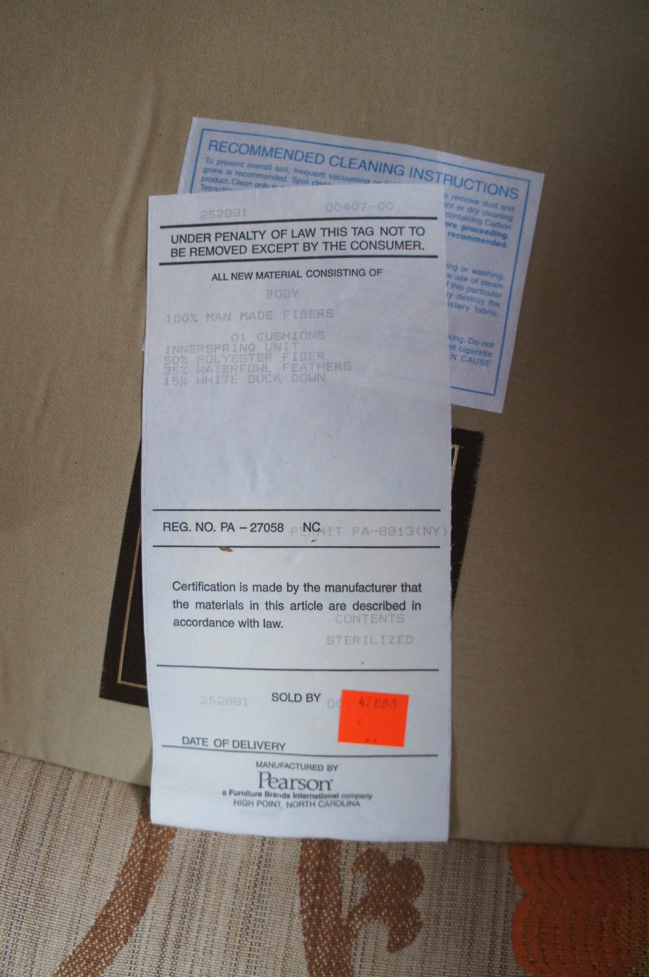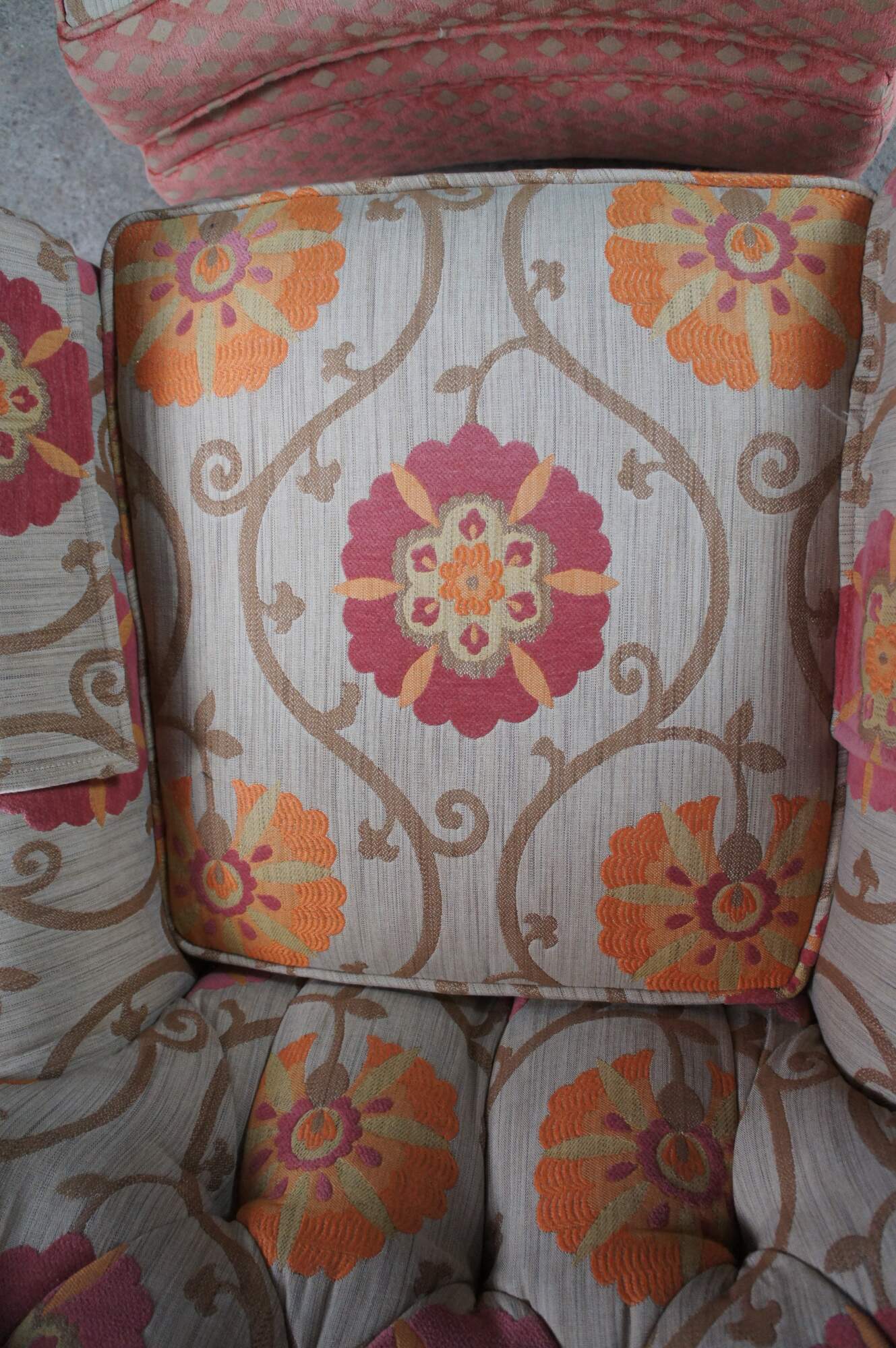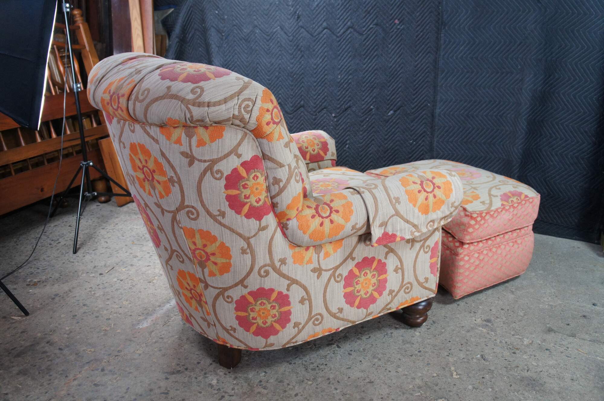 Vintage Pearson Furniture club / lounge / arm chair and ottoman / footrest / stool featuring a floral acanthus design.