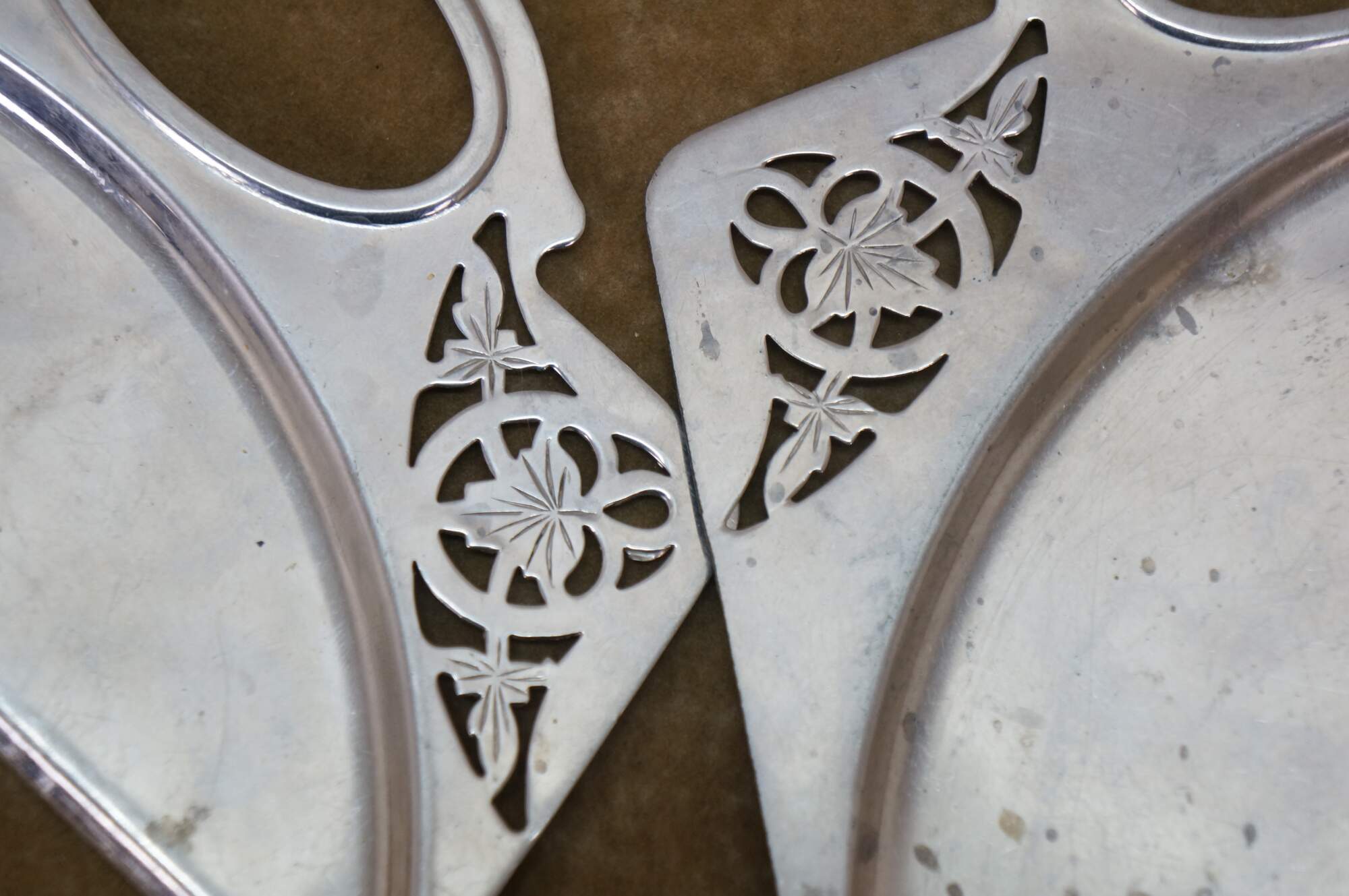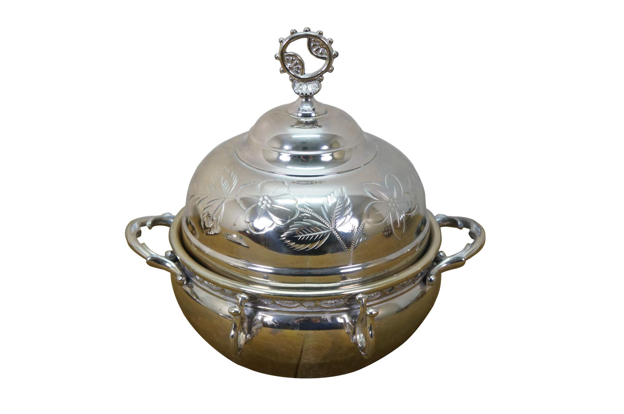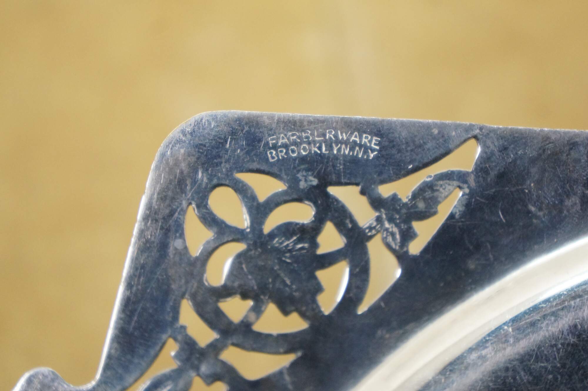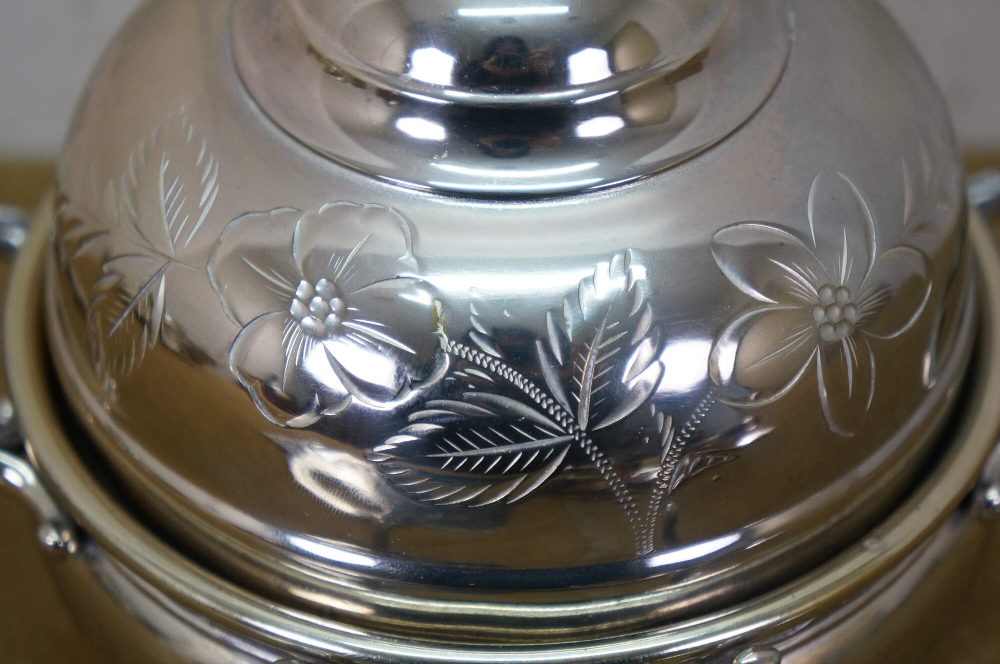 Vintage silver plate serving pieces. Including Oneida Community - Lakewood, National Silver Co, W&S Blackinton, Farberware. 2 Gravy / Sauce Boats, 2 Butler Crumb Trays, Lidded Butter Dish, Cream & Sugar Bowl with Underplate