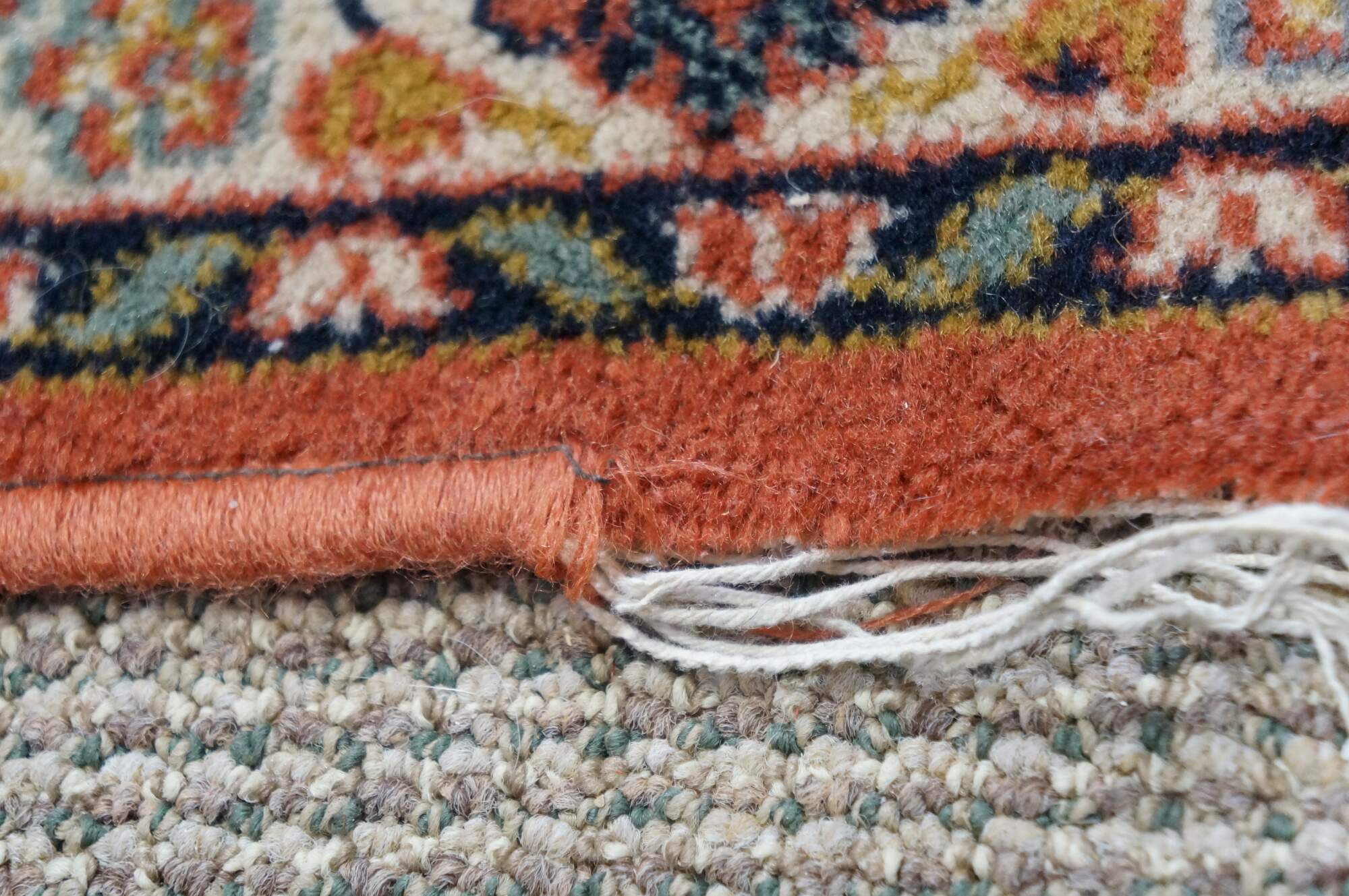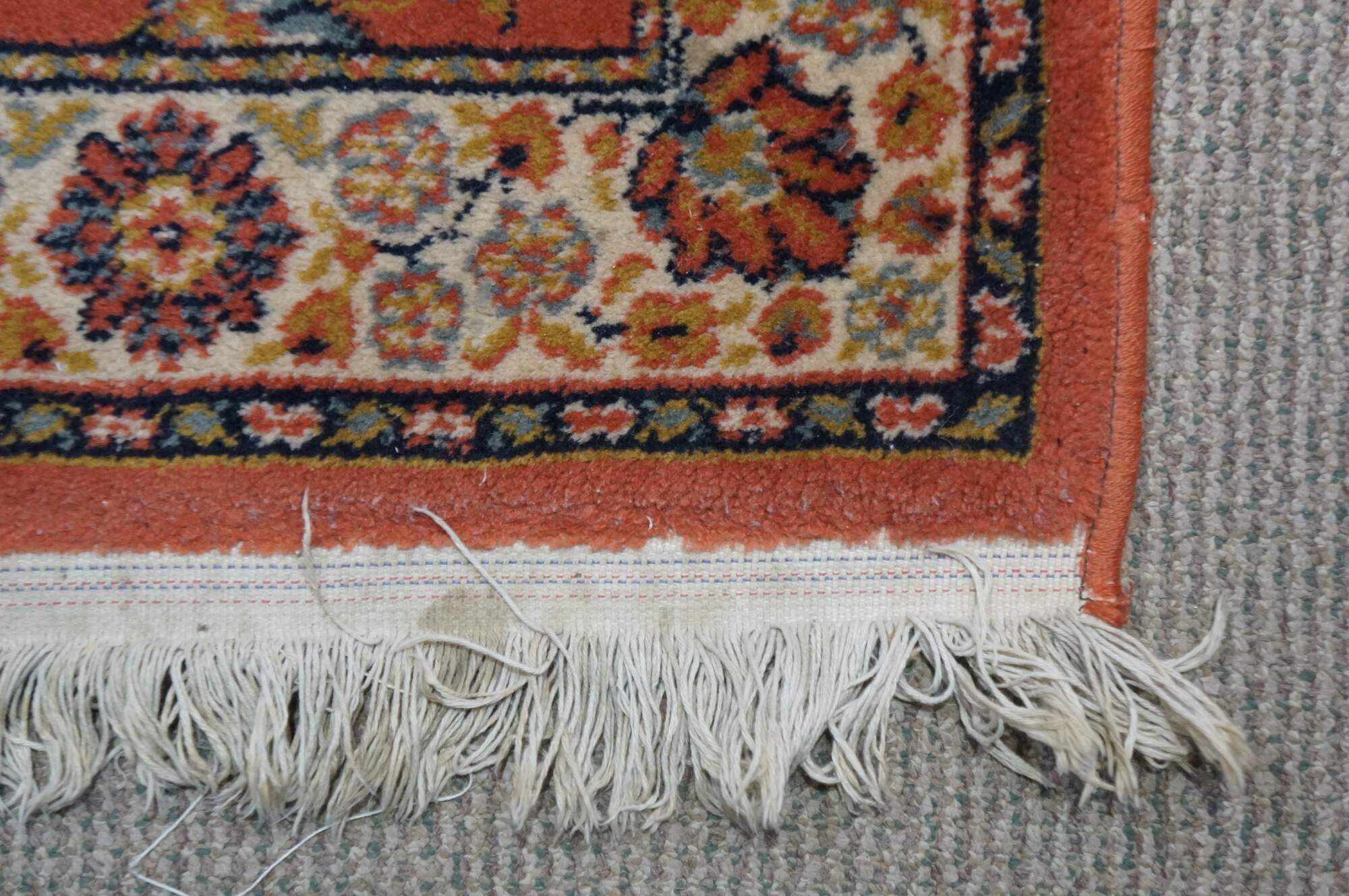 wear; unraveled / missing edging / fraying.