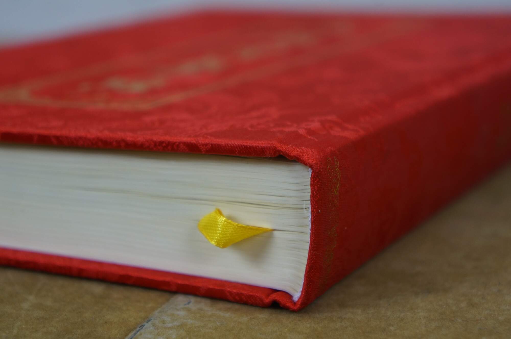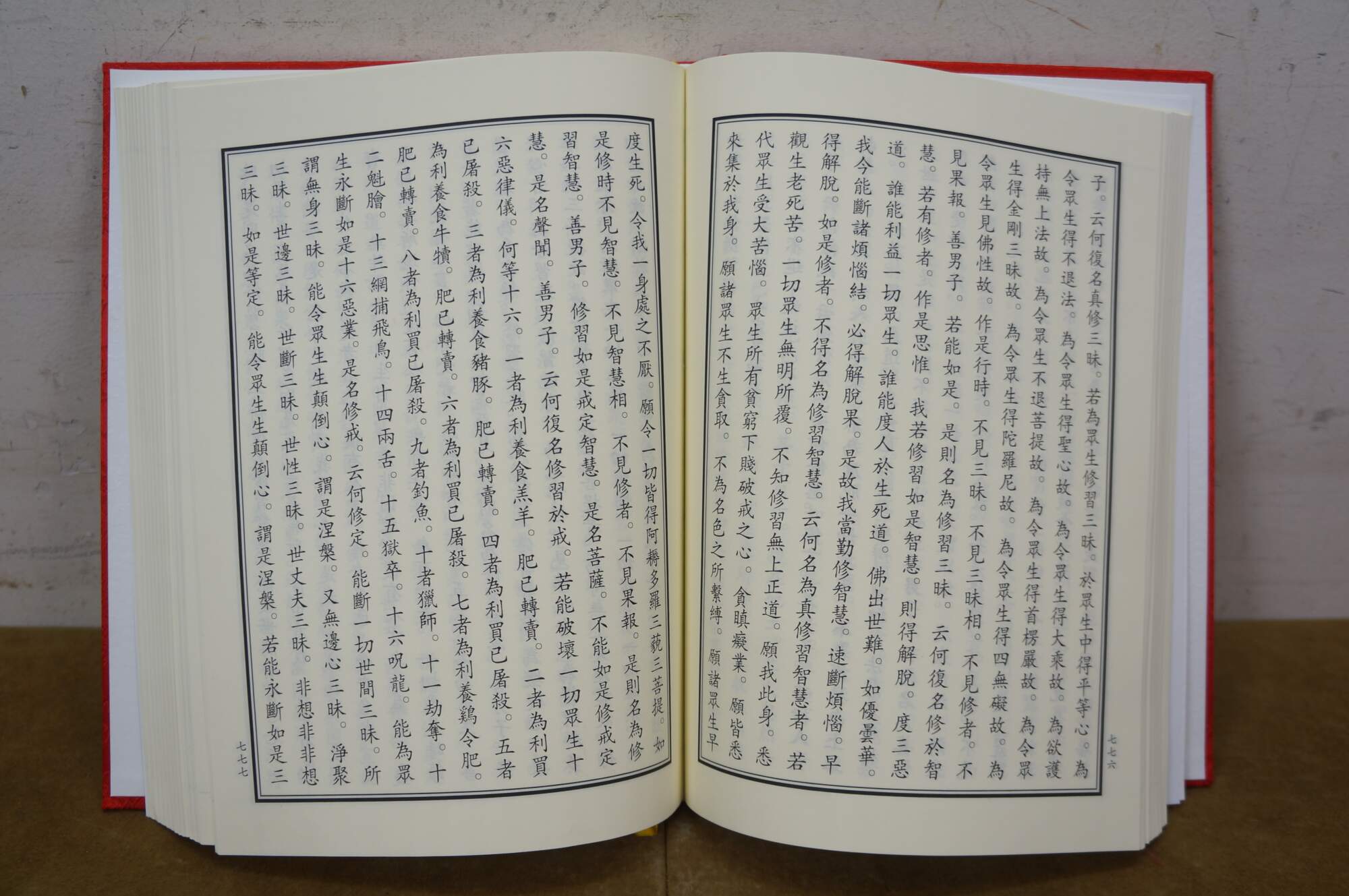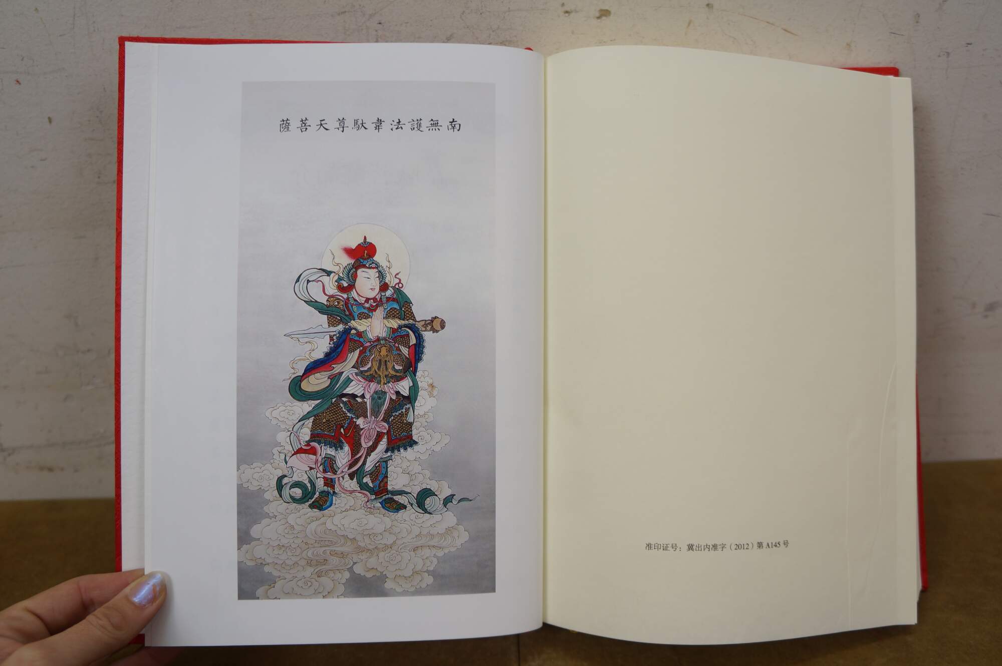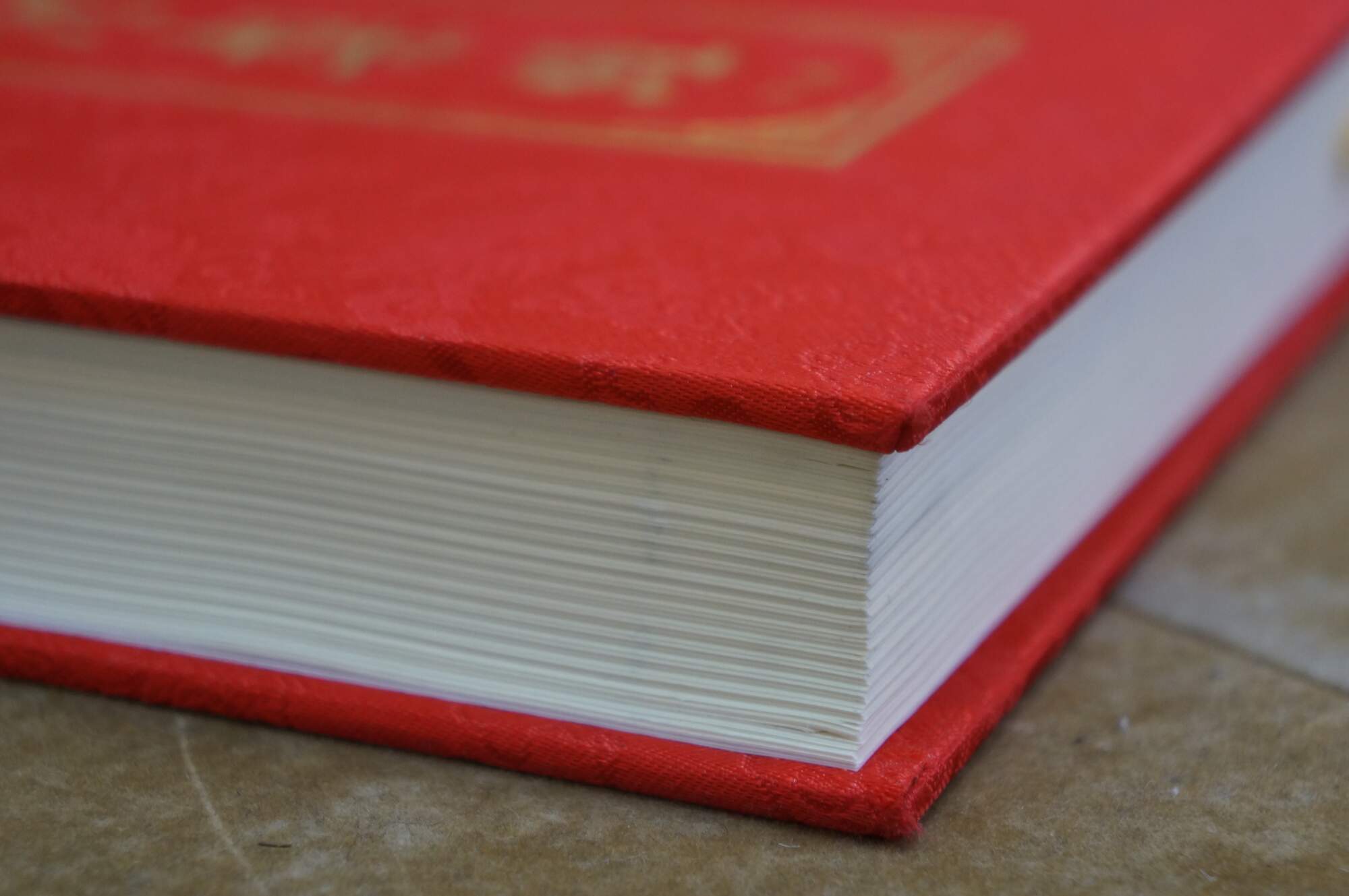 Vintage Chinese Buddhist text known as the Mahaparinirvana Sutra. The cover features gold calligraphy and five toed dragons on a red sky.