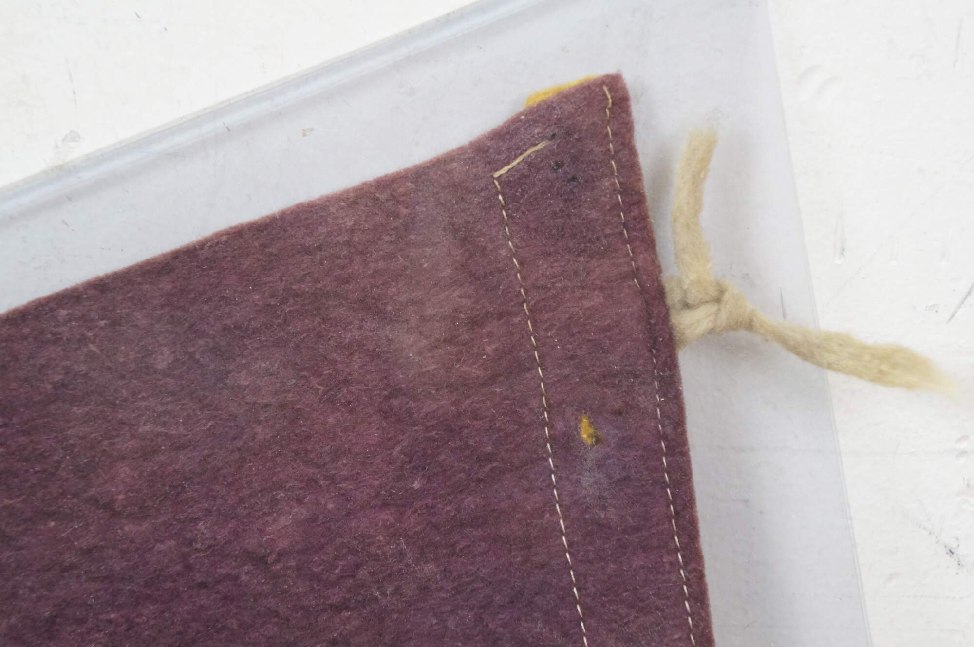wear; some discoloration/pinholes/creasing, damaged upper tassels.