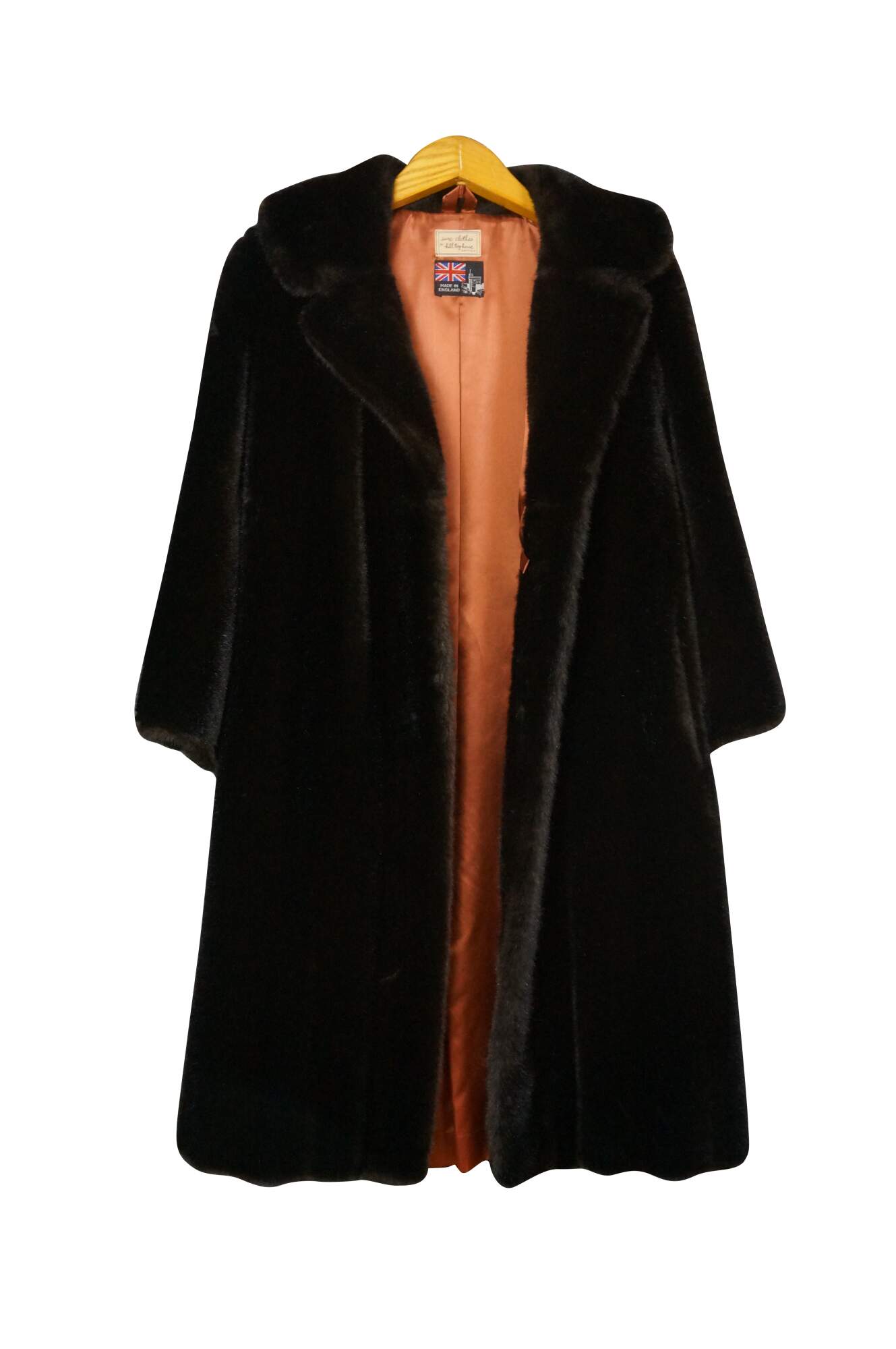 Vintage Tocci Imports brown Astraka faux fur coat. Made in England with 100% acrylic pile Tissavel fabric from France. Purchased Dayton Ohio at The Hill Top house circa 1970s.