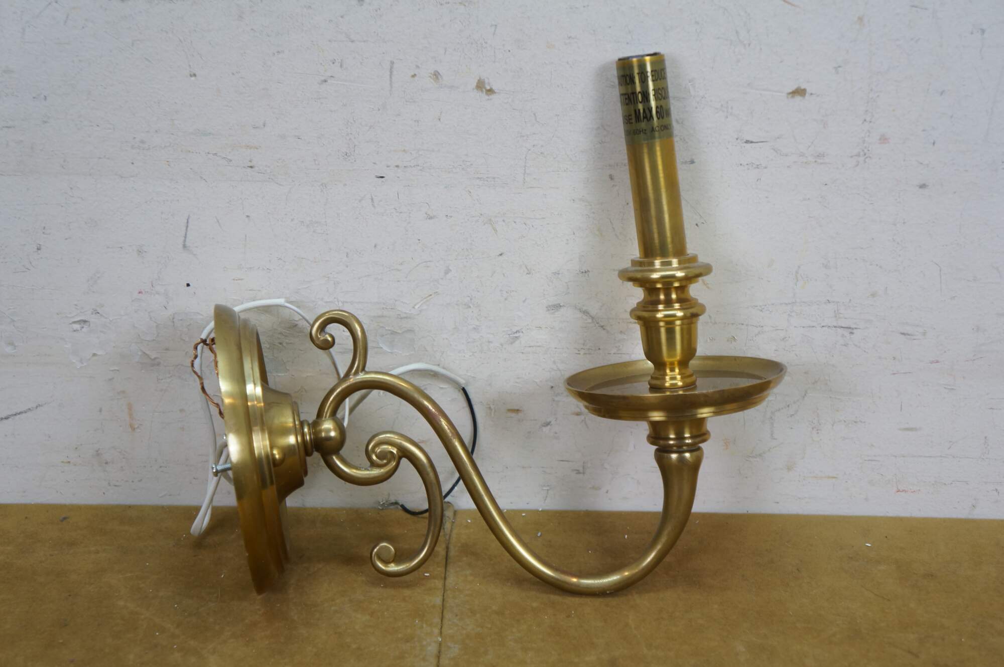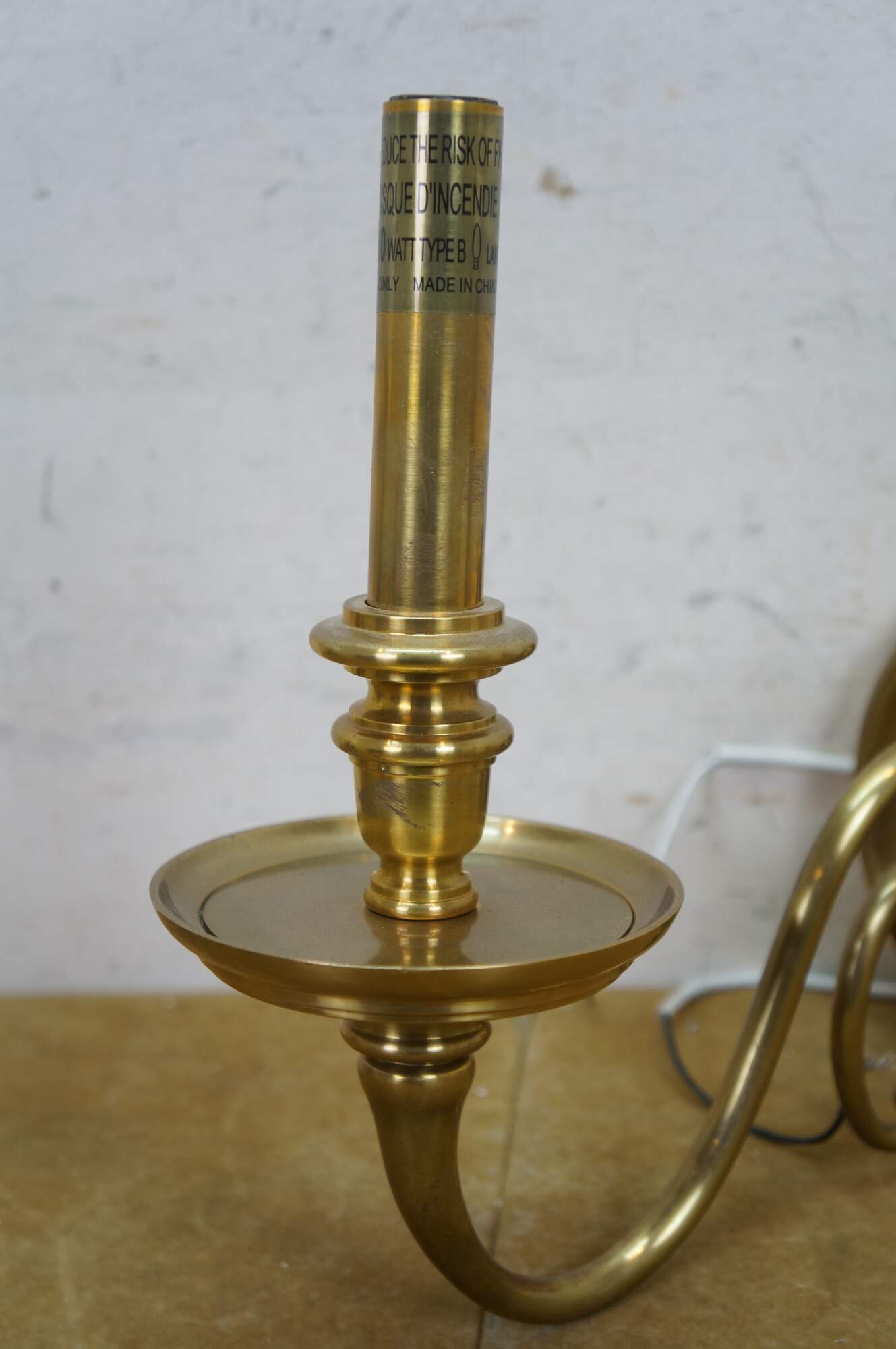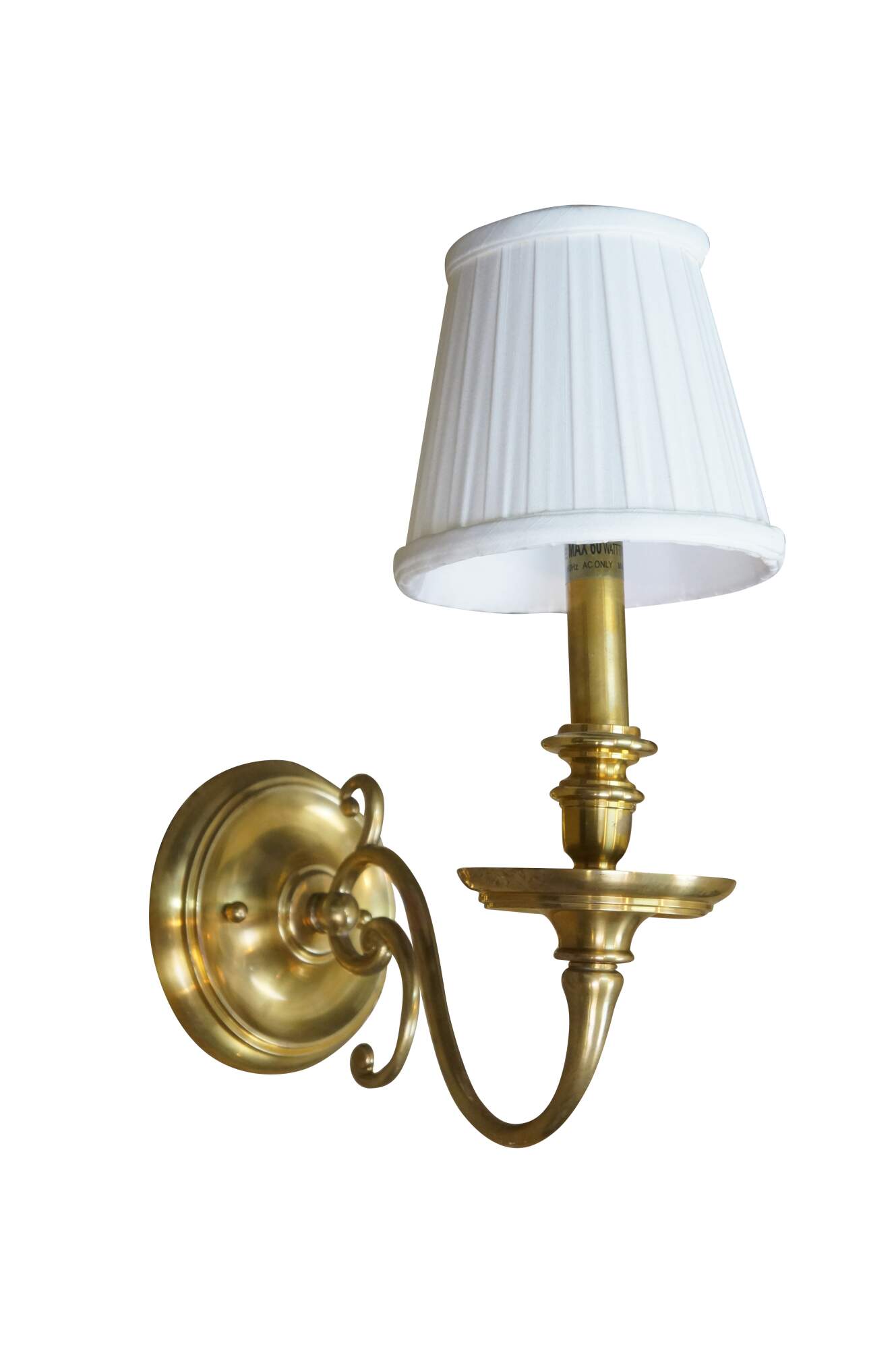 Vintage Hudson Valley Charleston brass traditional candle stick wall sconce featuring serpentine form with white tapered shade.