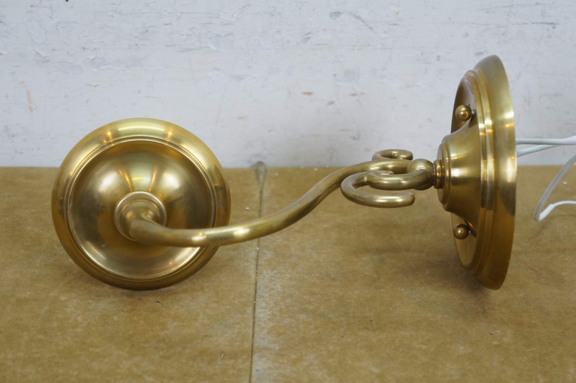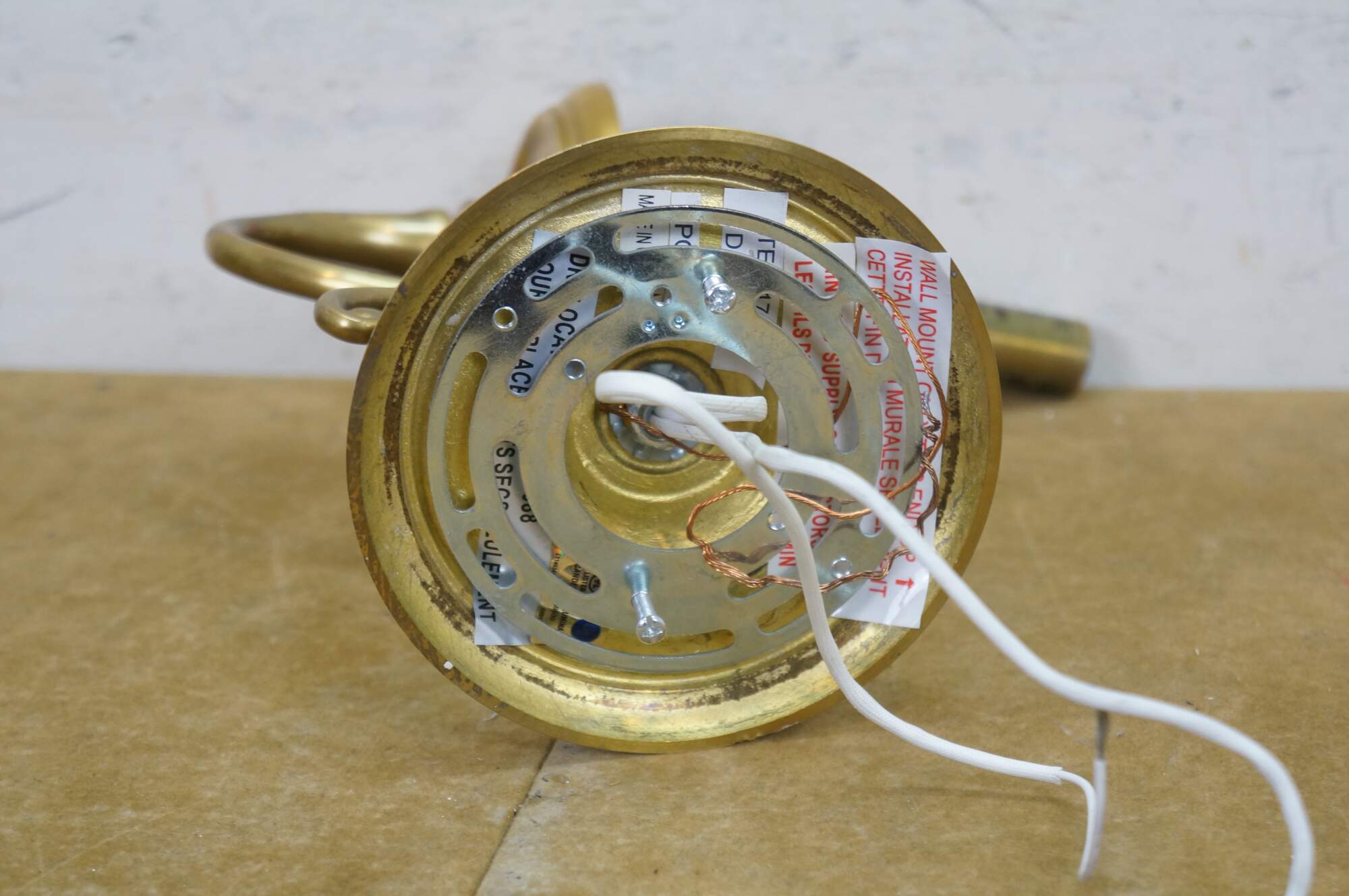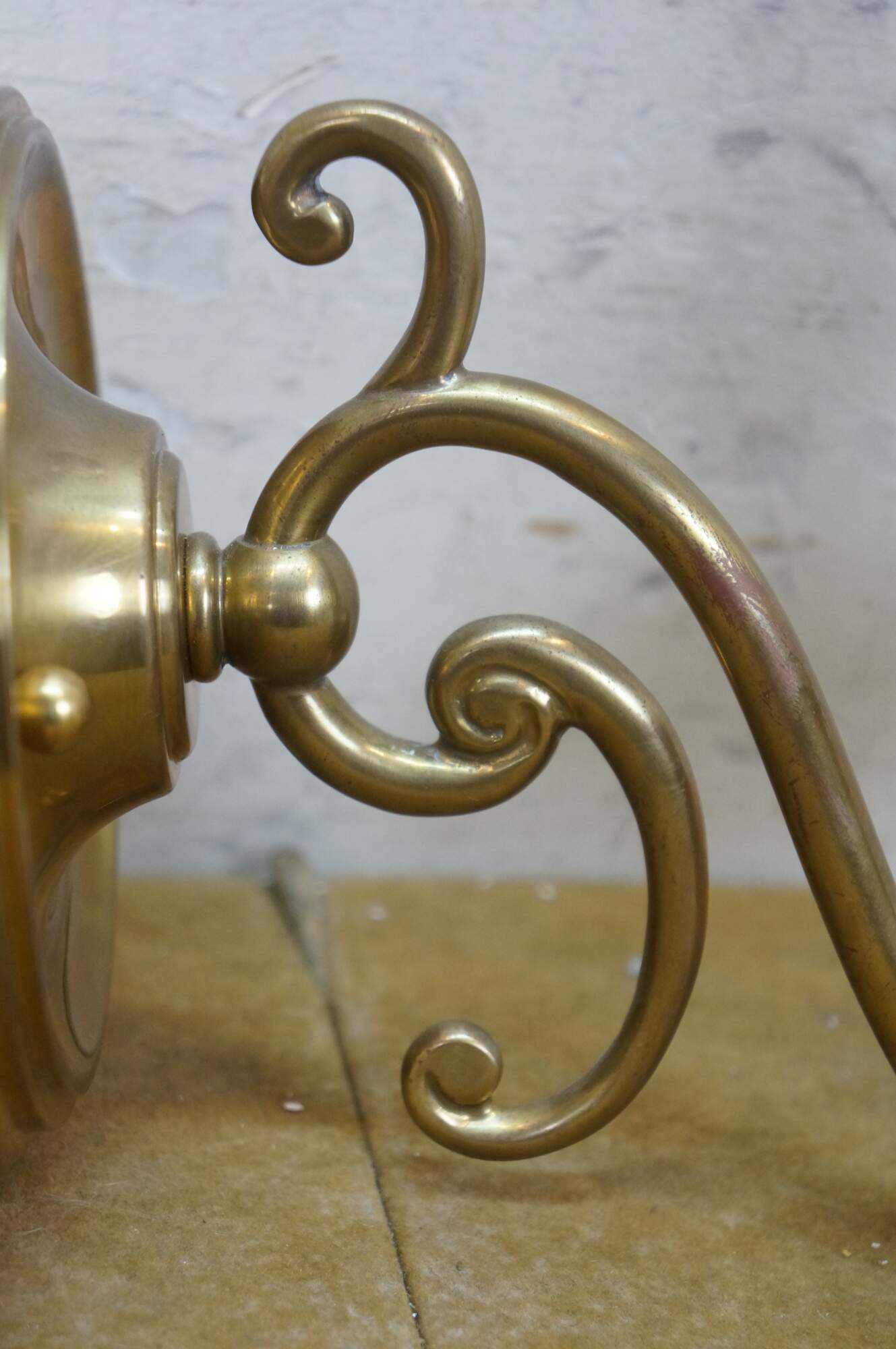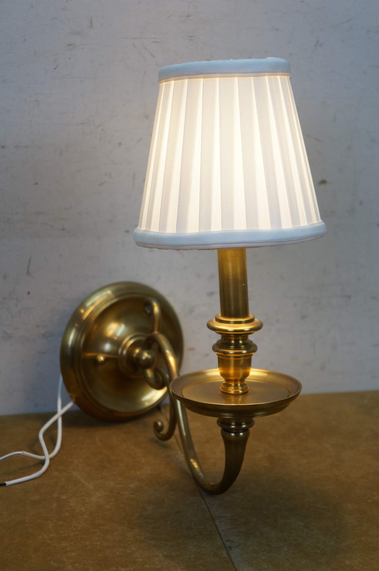 Vintage Hudson Valley Charleston brass traditional candle stick wall sconce featuring serpentine form with white tapered shade.
