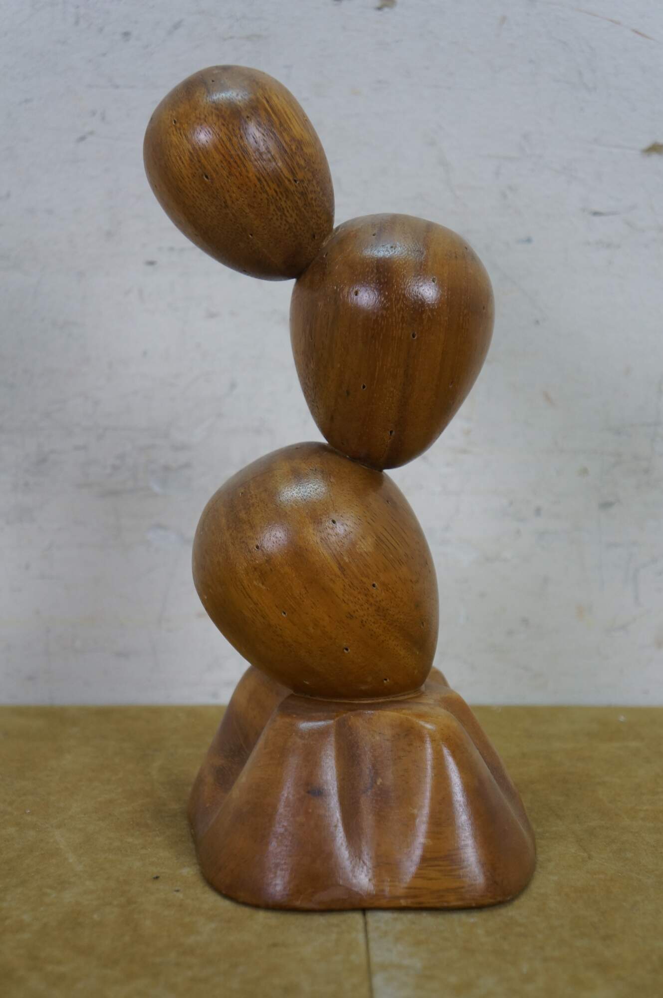 Mid century teak cactus-shaped atomic hors d'oeuvres toothpick holder. Toothpicks can be inserted into the small holes along the cactus to create spines. A great party serving piece. Made in the Philippines.