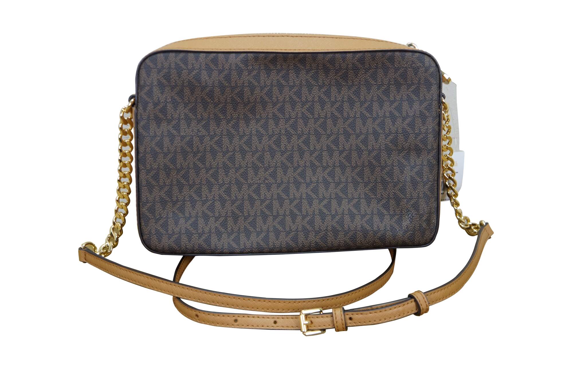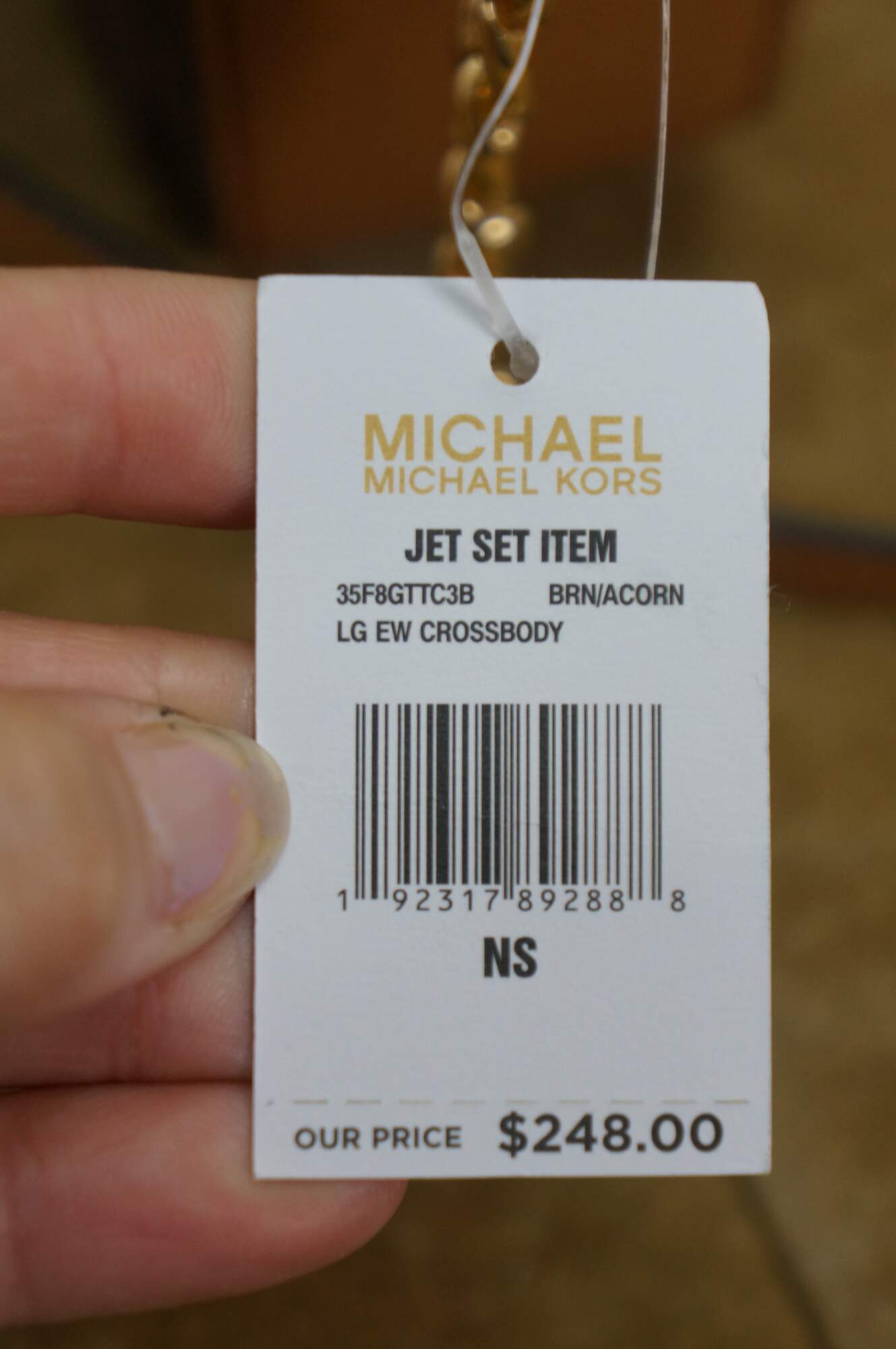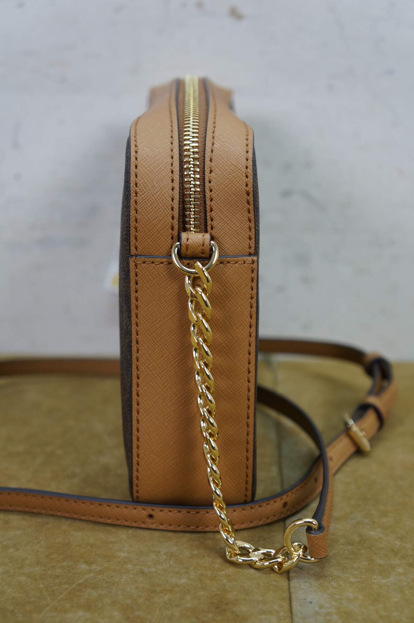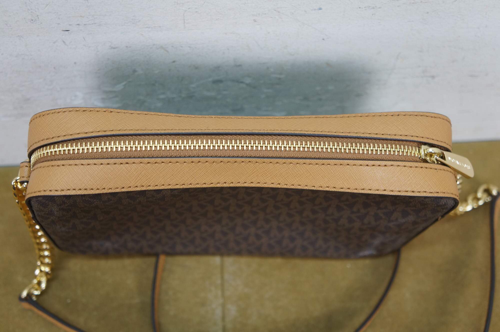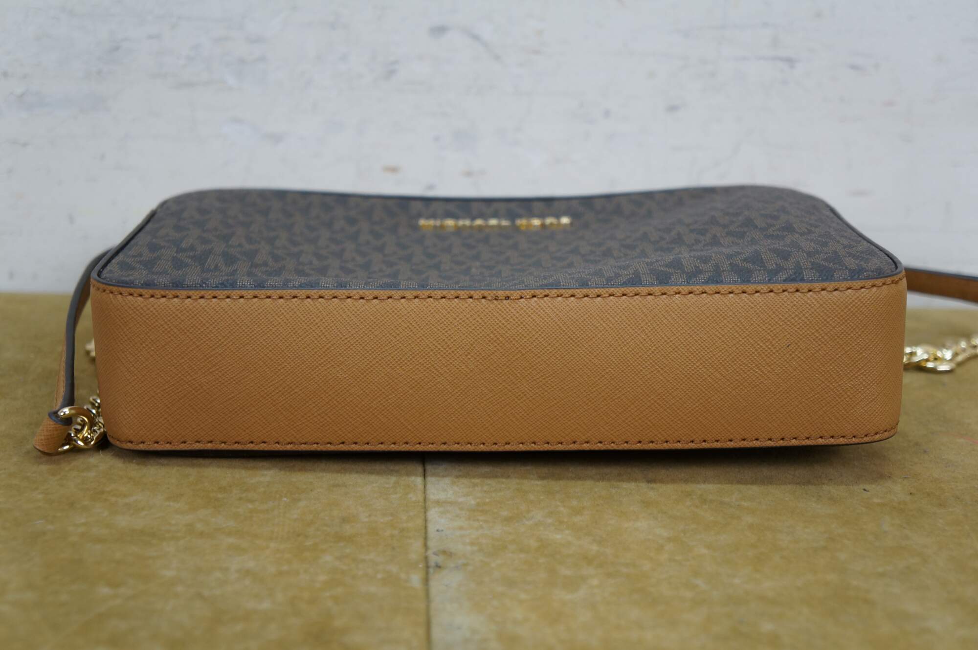 Michael Kors Jet Set Item East West (EW) crossbody bag in brown signature PVC leather. MSRP $248. 35f8gttc3b.