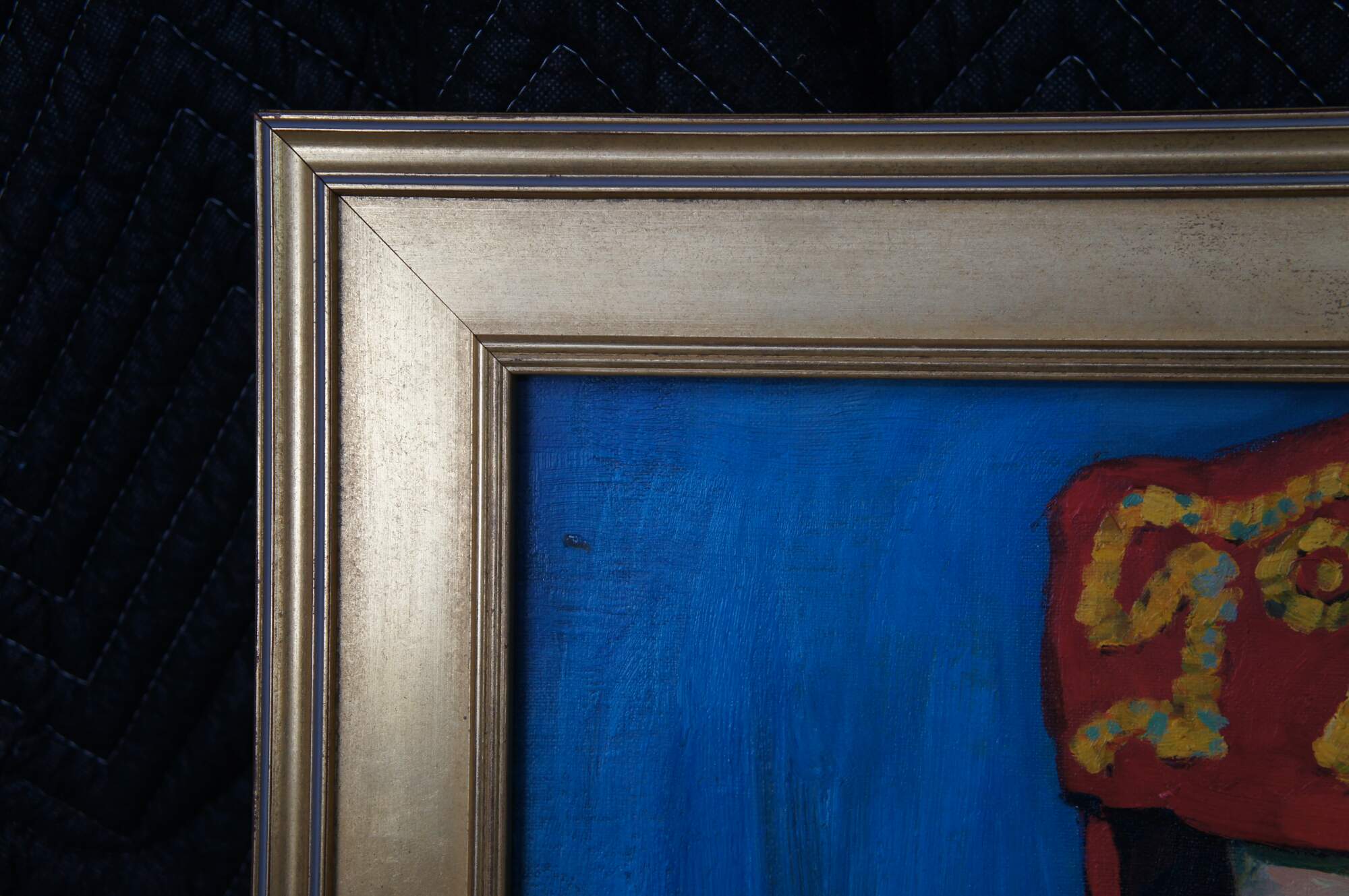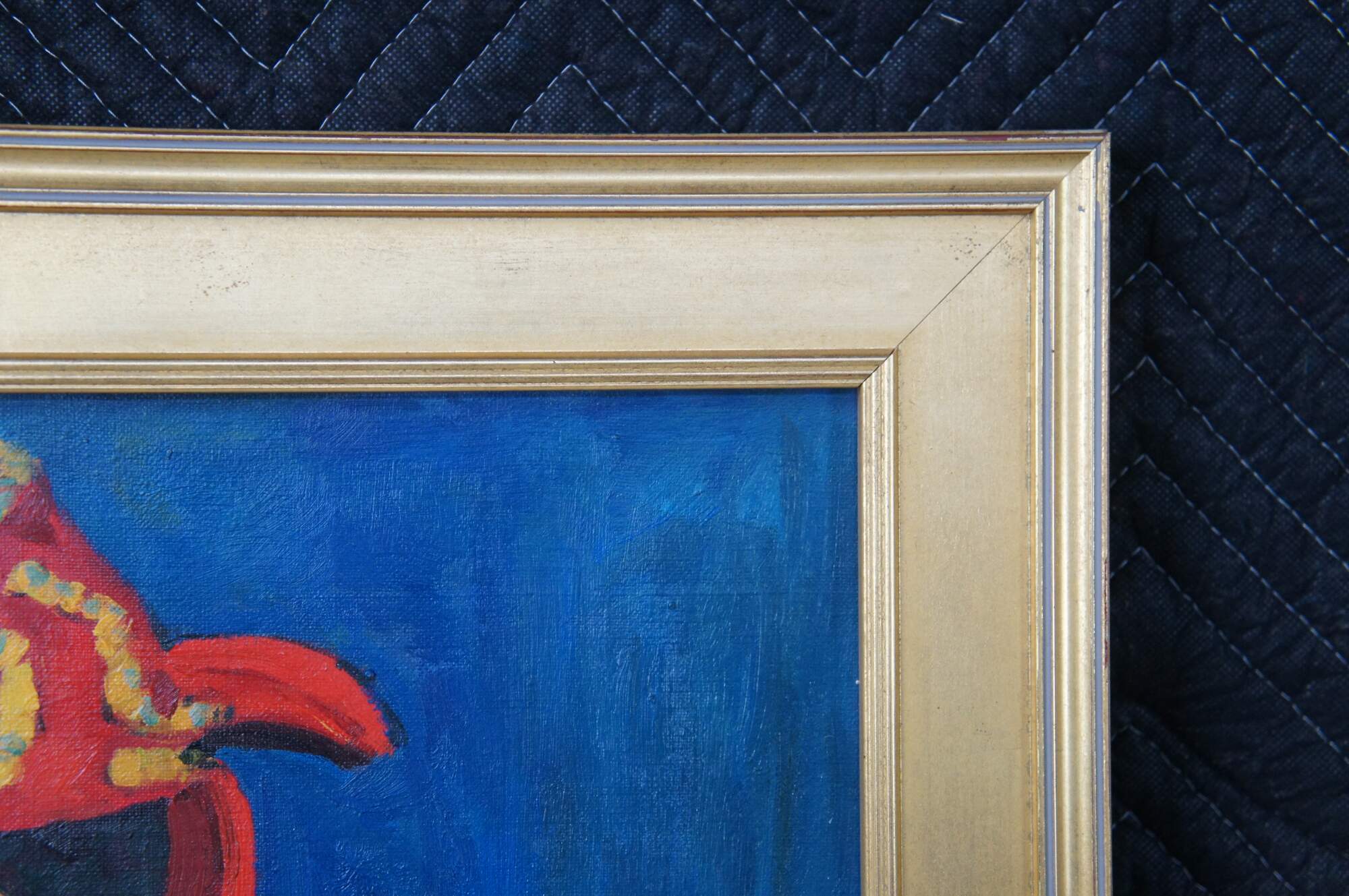 The Red Madras Headdress" (or Le Madras rouge), is a famous 1907 painting by the French artist Henri Matisse. The painting is currently housed in the Barnes Foundation in Philadelphia, Pennsylvania. This contemporary example was painted at the end of the 20th century, framed in hardwood with gold finish. The portrait depicts the artist's wife, Amélie Matisse, who modeled frequently for him
