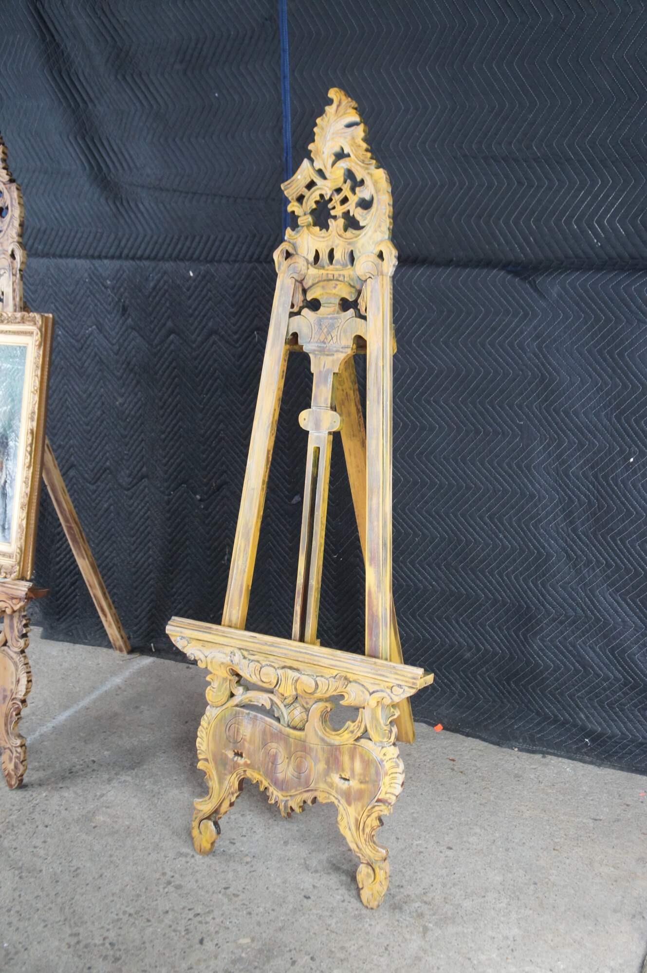 Vintage French / Baroque / Rococo Revival Artist Easel. Made from carved mahogany with an adjustable stand.