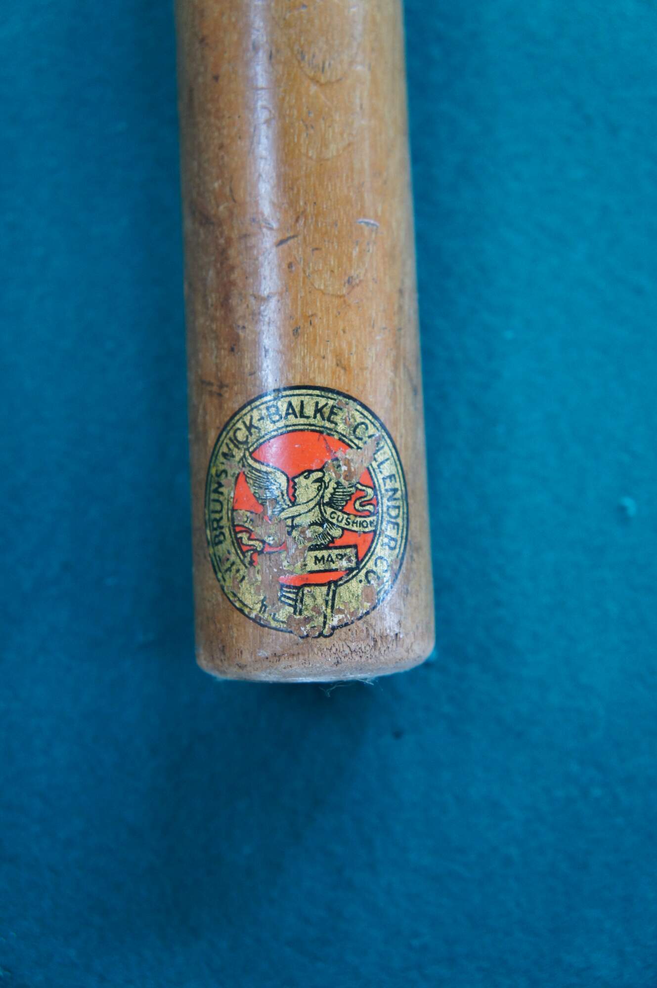 Fair; wear and distressing from age and use. Marking and edgewear. Table felt should be replaced. Current felt is worn with holes. Two of the Belgian Amarith Balls are missing. Others are worn with splits and crazing to finish. Some sticks are wrapped. Leather pockets are dry