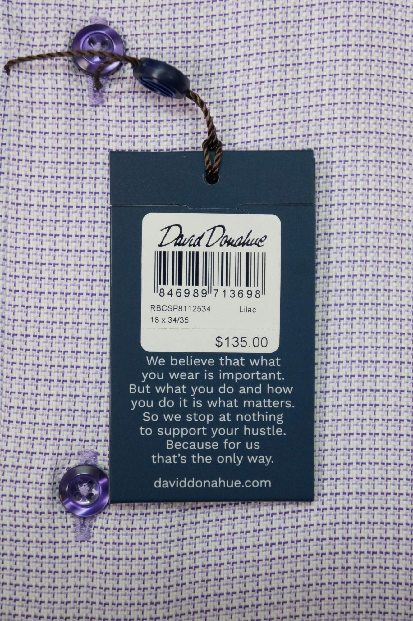 David Donahue Purple Lilac 100% Cotton Size 18 34/35 Mens Dress Shirt. USA 407. RN 110577. New old stock with tags, never worn.