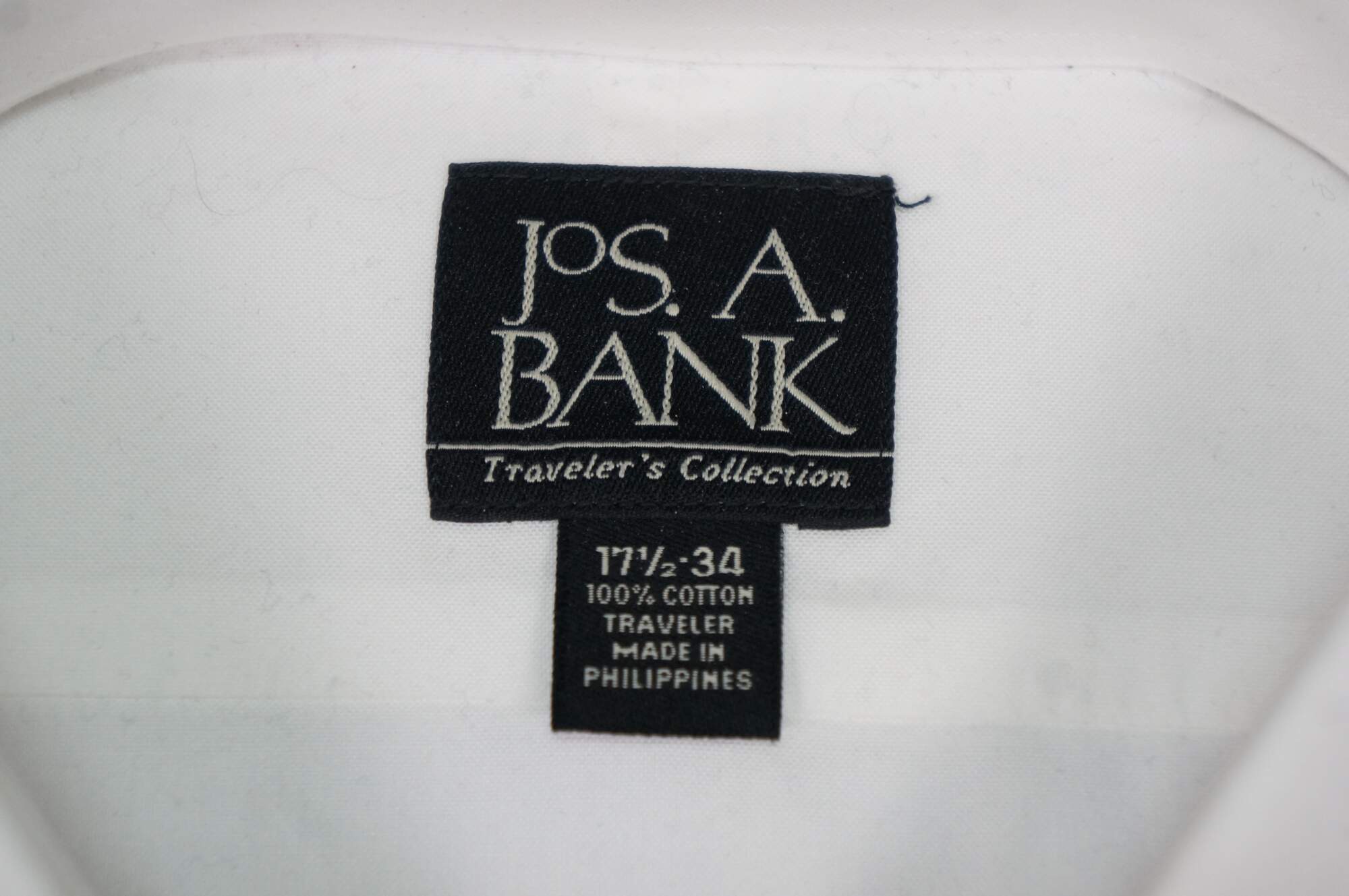 Jos A Bank Travelers Collection 100% Cotton Shirt & 1905 Tie Size 17.5 - 34. 301730. New old stock with tags, never worn. MSRP 87.50 and 59.50.