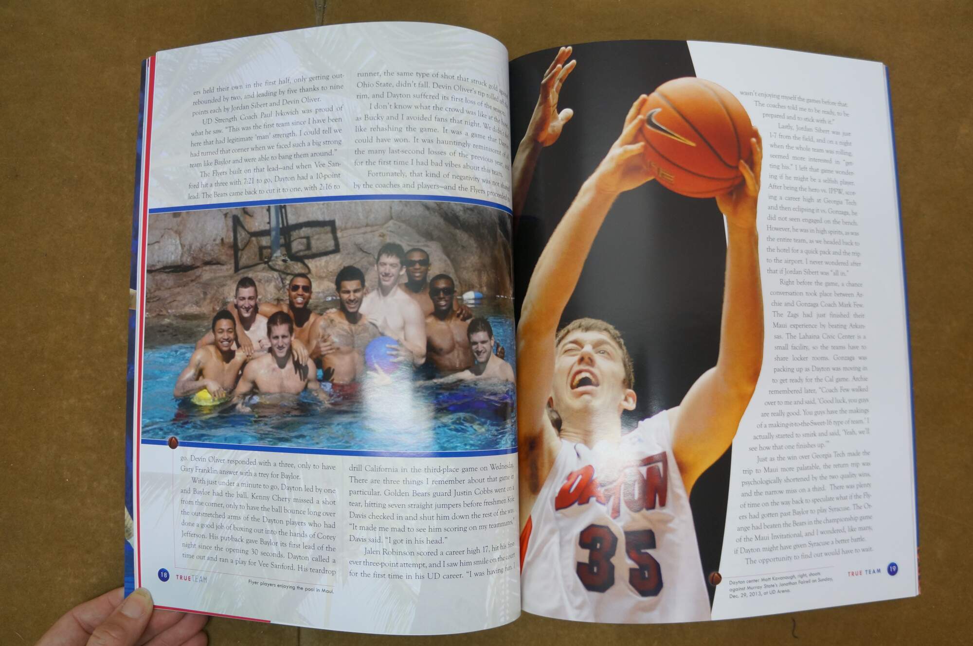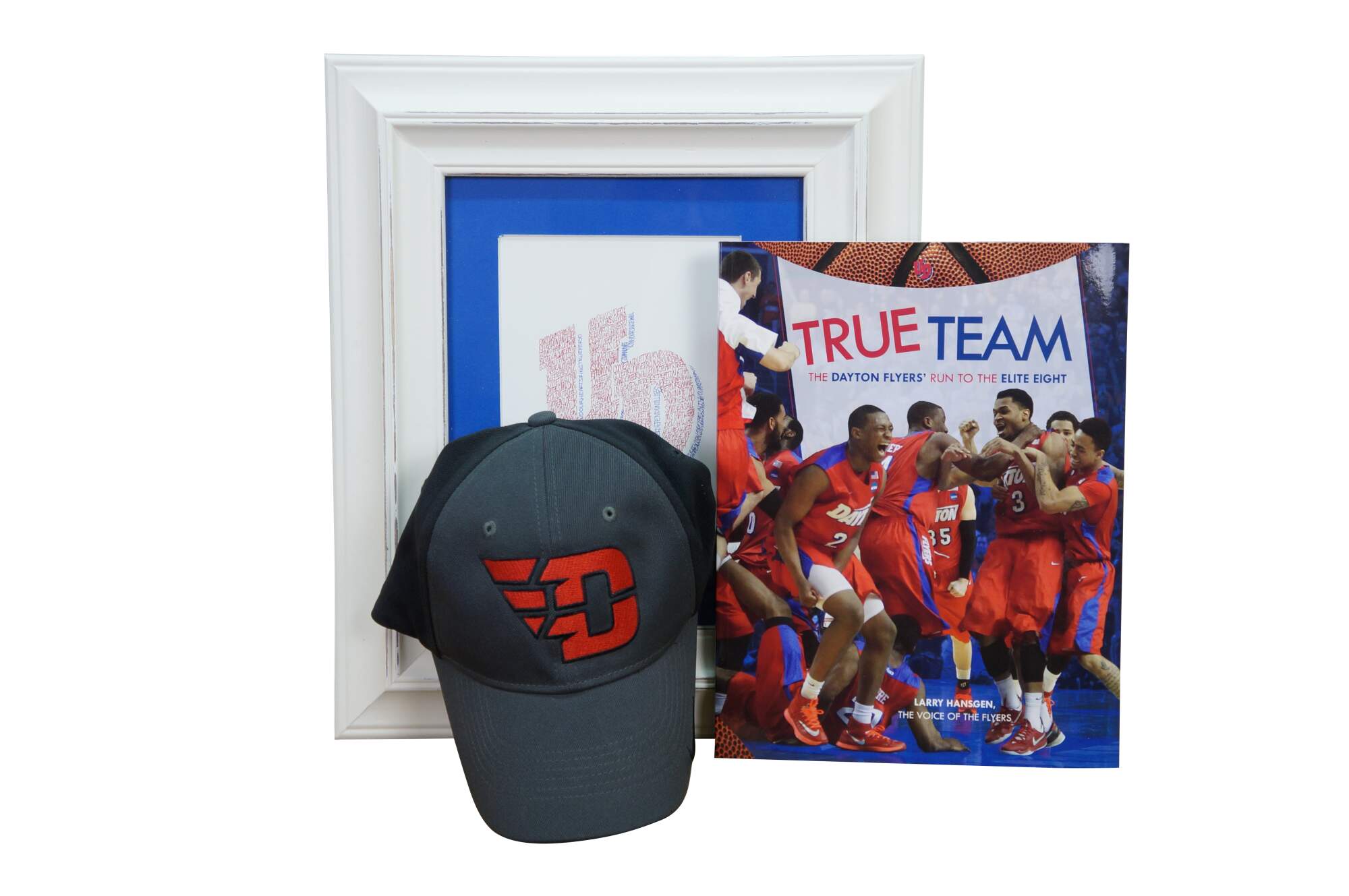 True Team Cox Media commemorative magazine highlighting the men's basketball run in 2014; and UD 3D logo cursive inspire artwork in white frame.