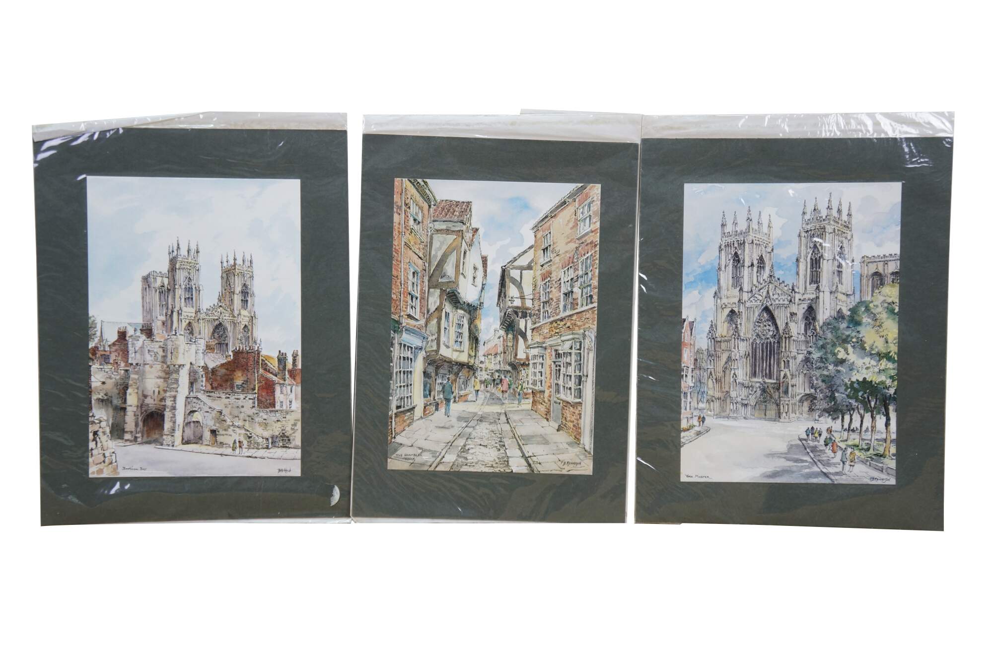 Vintage lot of historical architecture prints from the United Kingdom. Includes artwork by P.B. Rennison and Richard Tugwell.