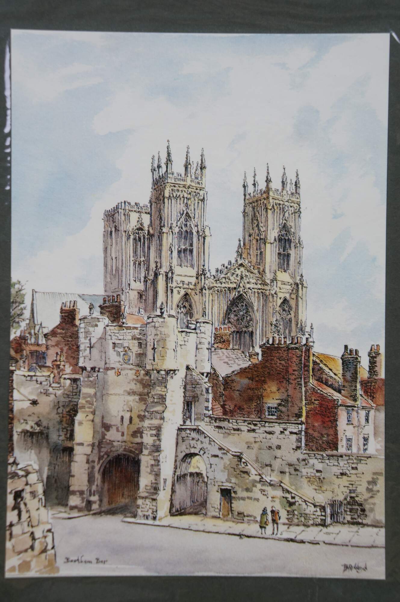 -Bootham Bar and York Minster in York, England. The prominent stone gatehouse in the foreground is one of the four main medieval fortified gateways into the city of York, built on the site of a Roman gateway. Visible behind the bar, this is the cathedral of York and one of the largest of its kind in Northern Europe, famous for its Gothic architecture.