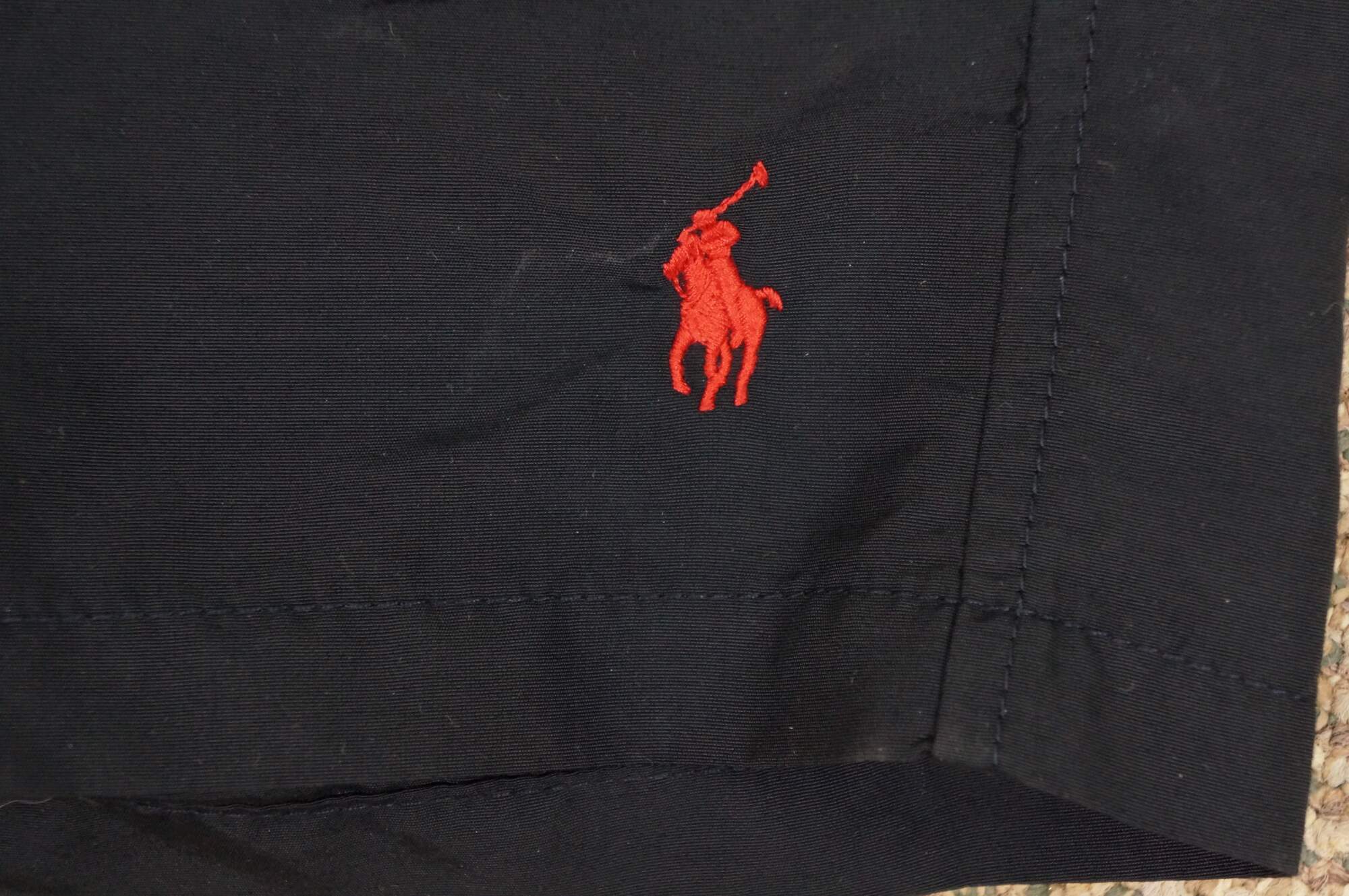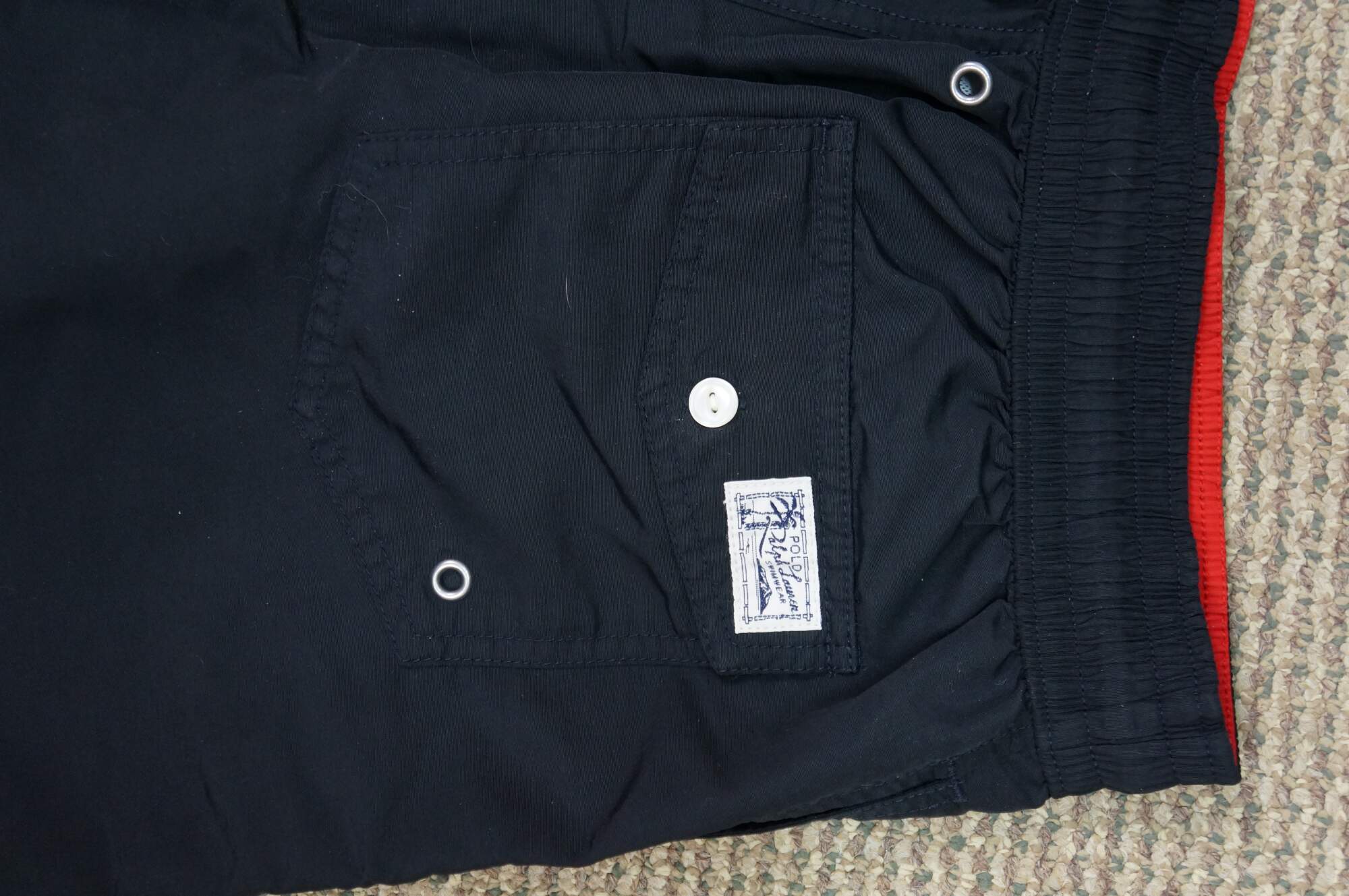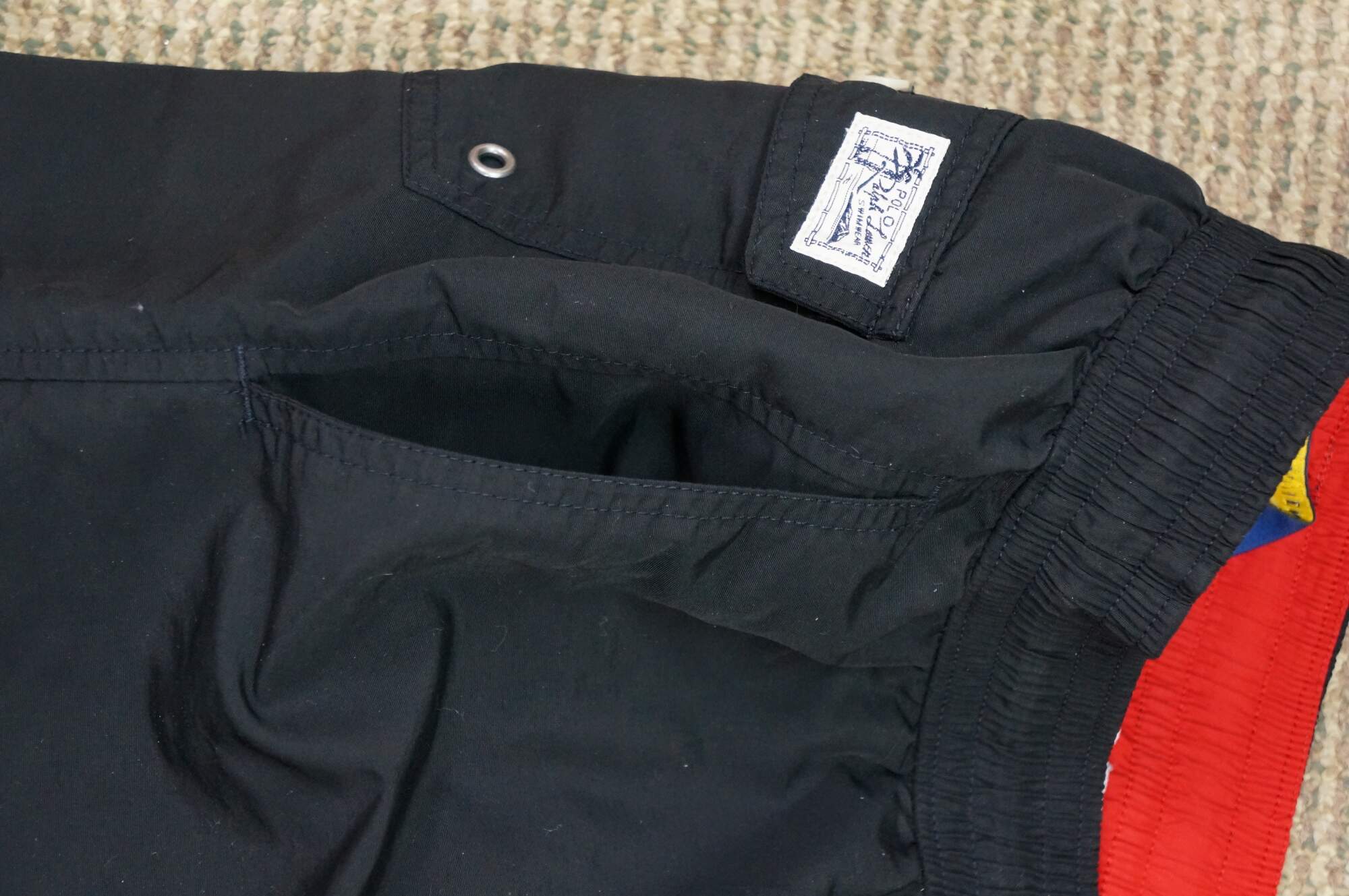 Vintage Ralph Lauren Polo 100% nylon swim trunks / shorts / bathing suit / swimwear. Small size. Black and red.