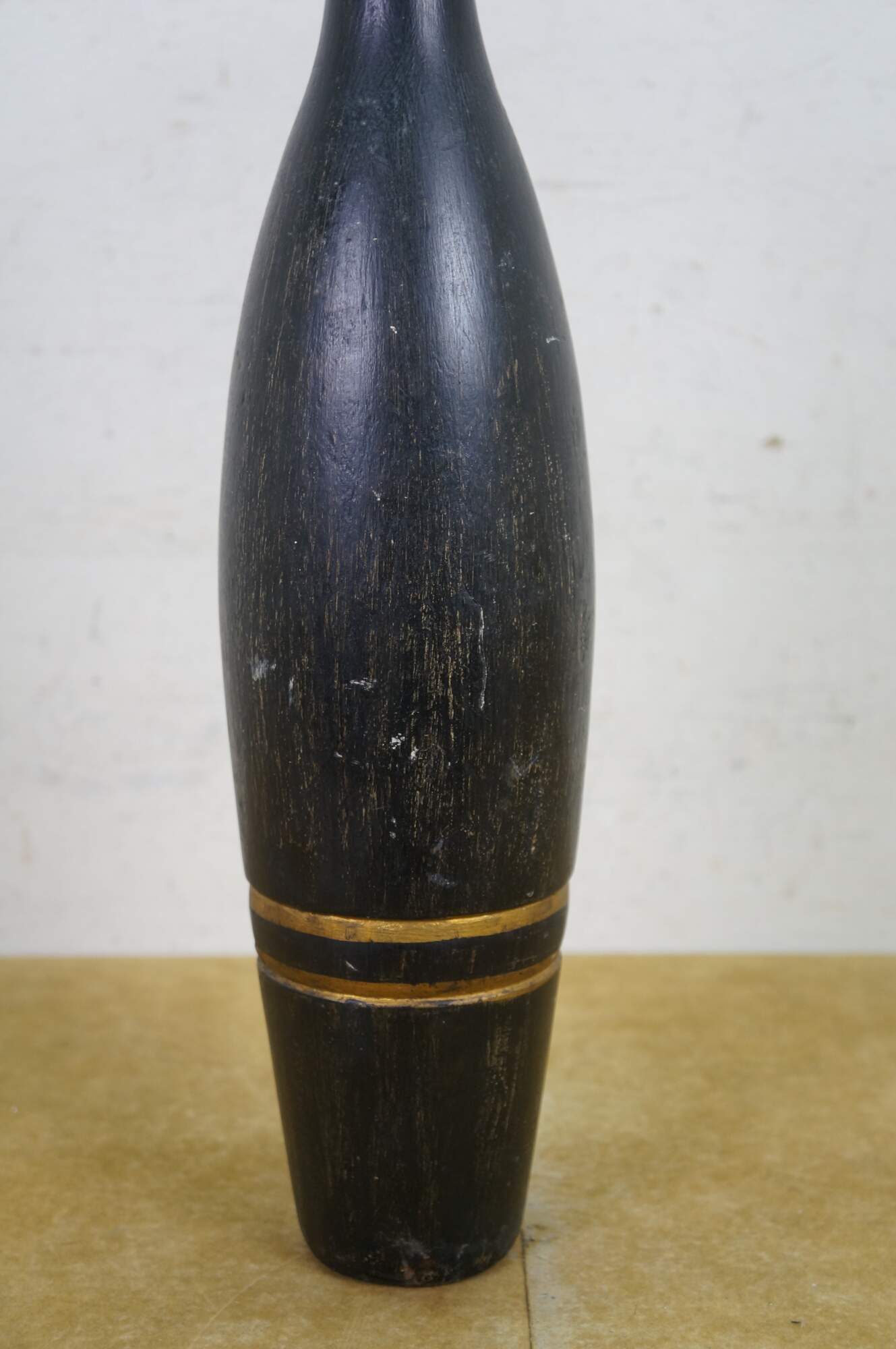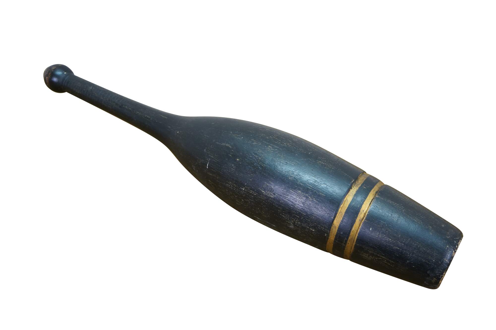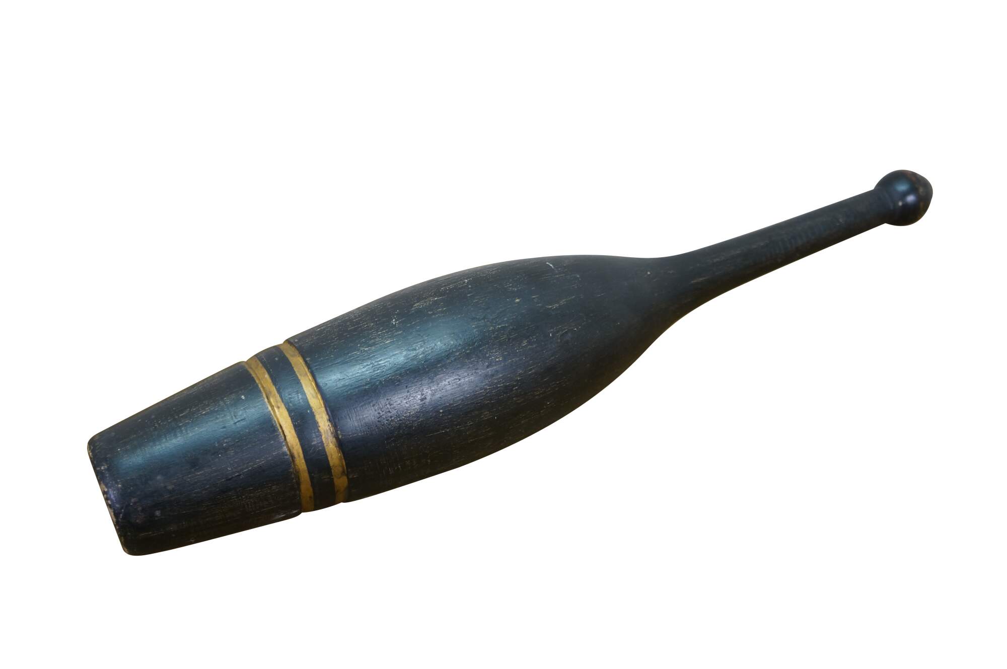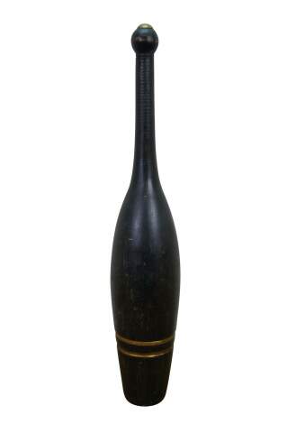 Antique Victorian old strong man exercise gym / circus / carnival juggling pin / Indian club with black finish and brass banding.