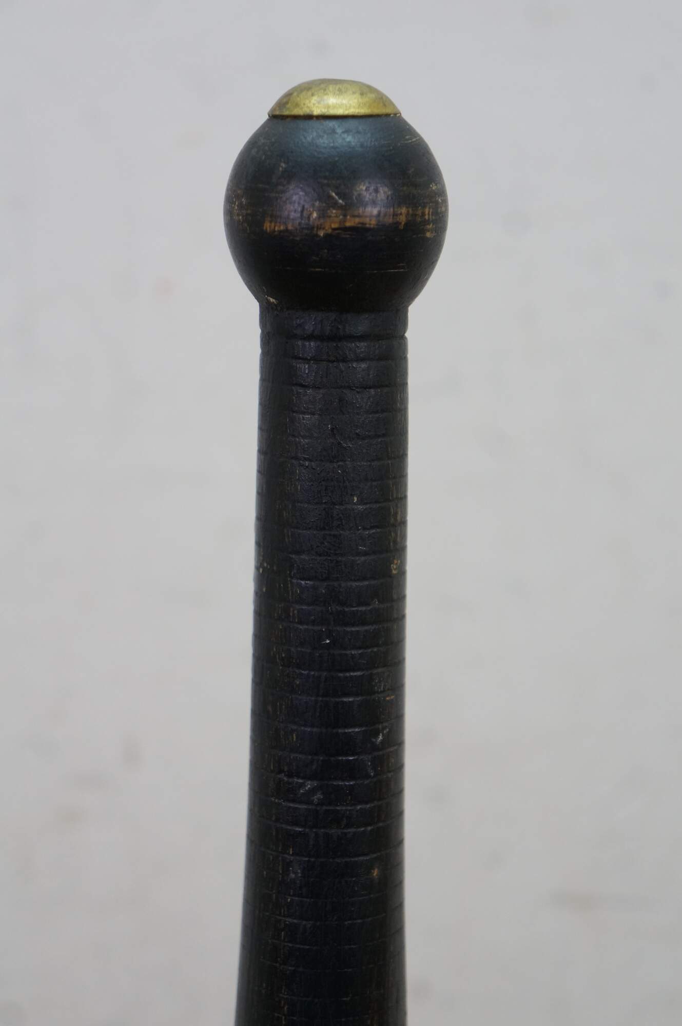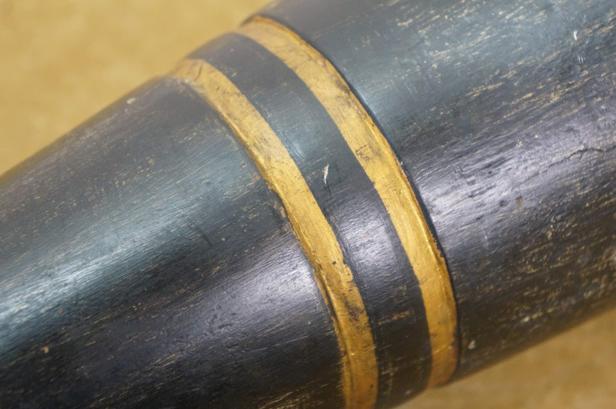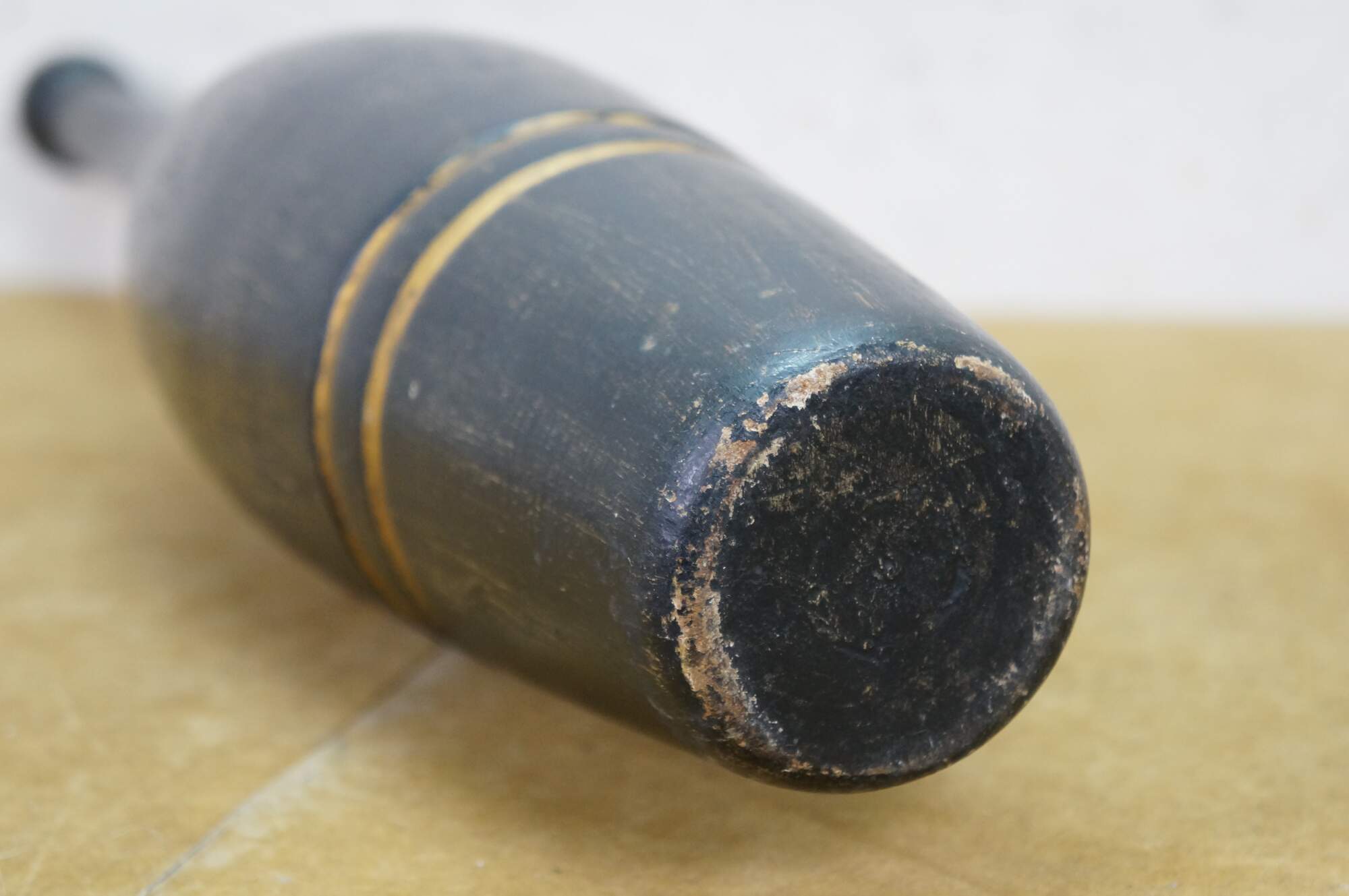 Antique Victorian old strong man exercise gym / circus / carnival juggling pin / Indian club with black finish and brass banding.