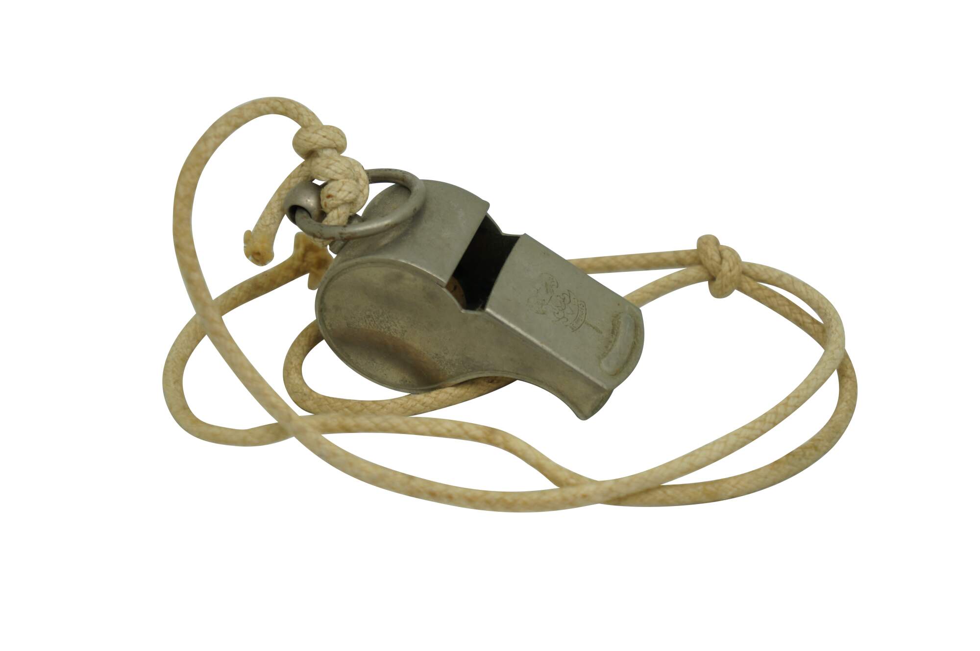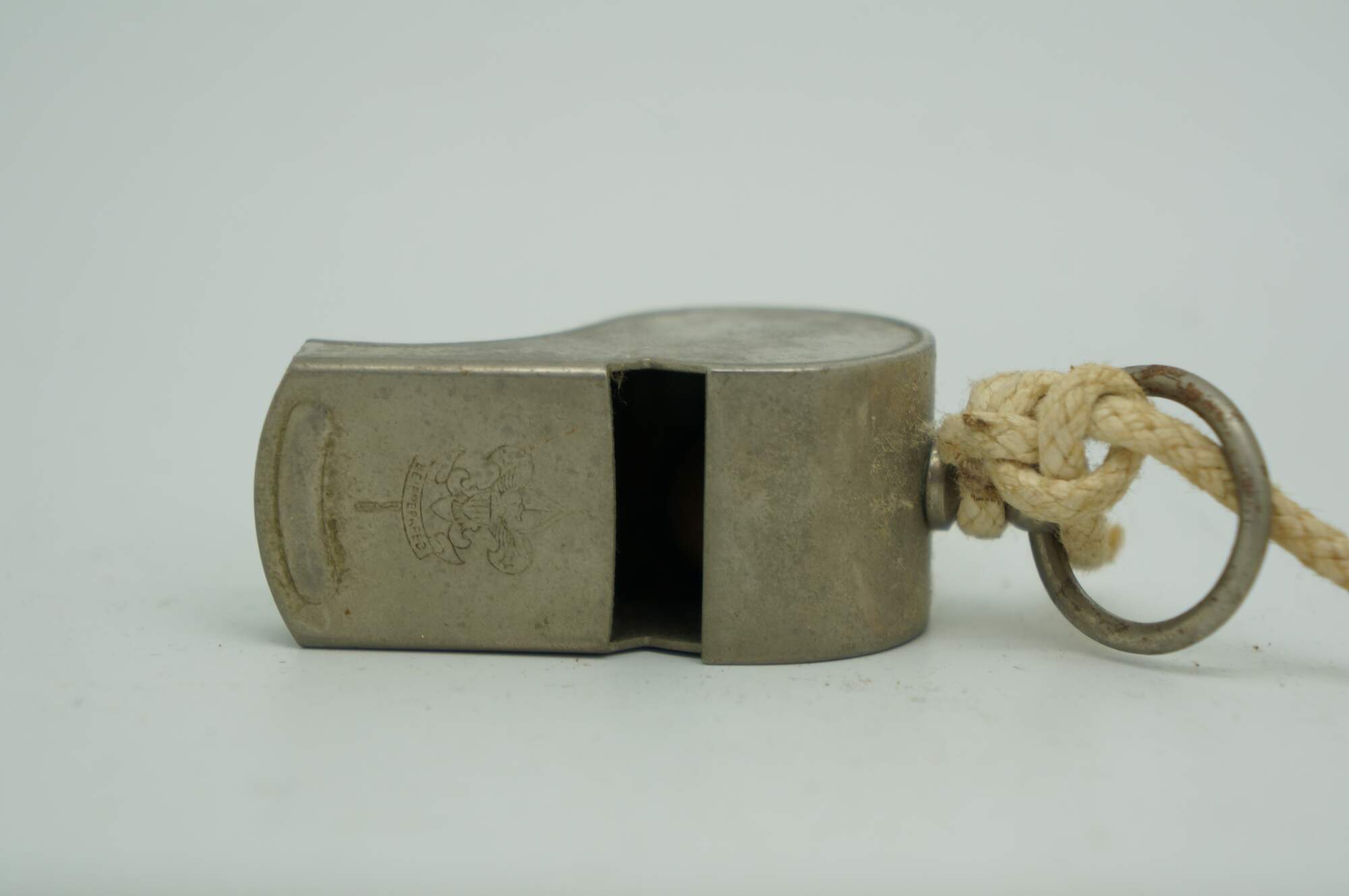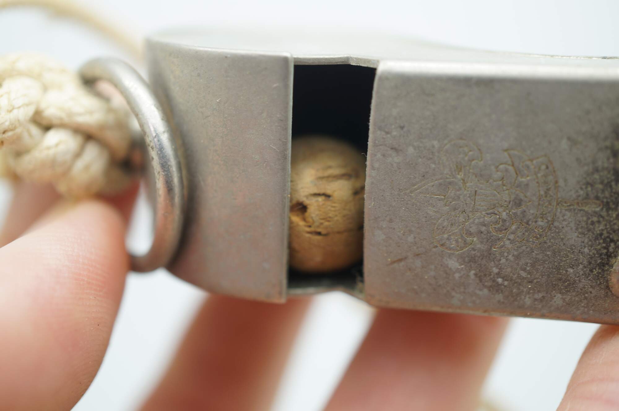 Vintage Boy Scouts of America Whistle Cork Ball Rope Fleur De Lis Engraved USA