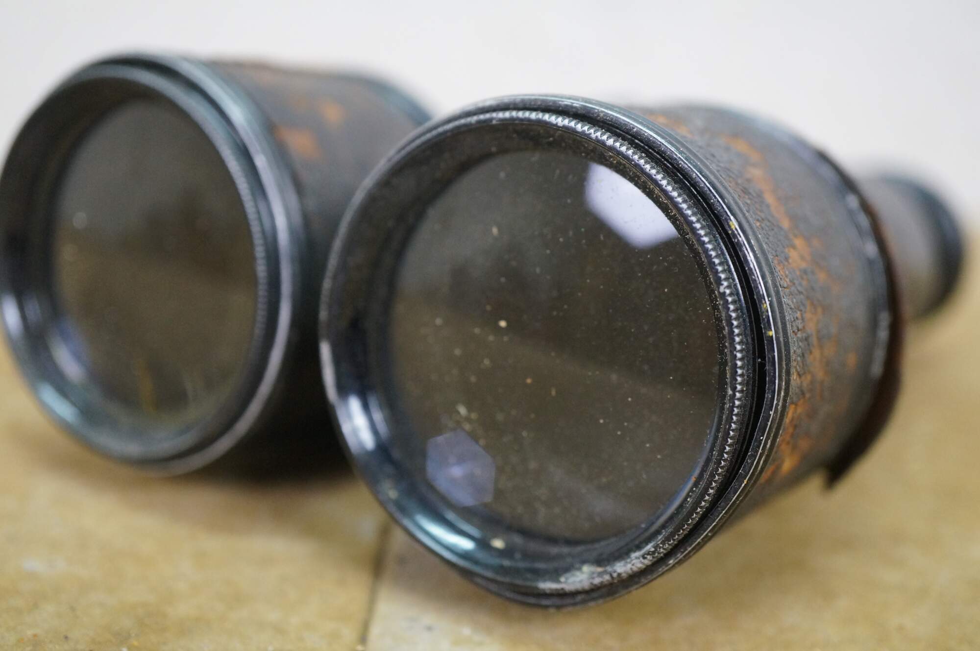 WWI Era Field Glasses / Binoculars by Bardou & Son of Paris. Features long leather wrapped cylinders. Marked with a Great Britain Medical Trademark.