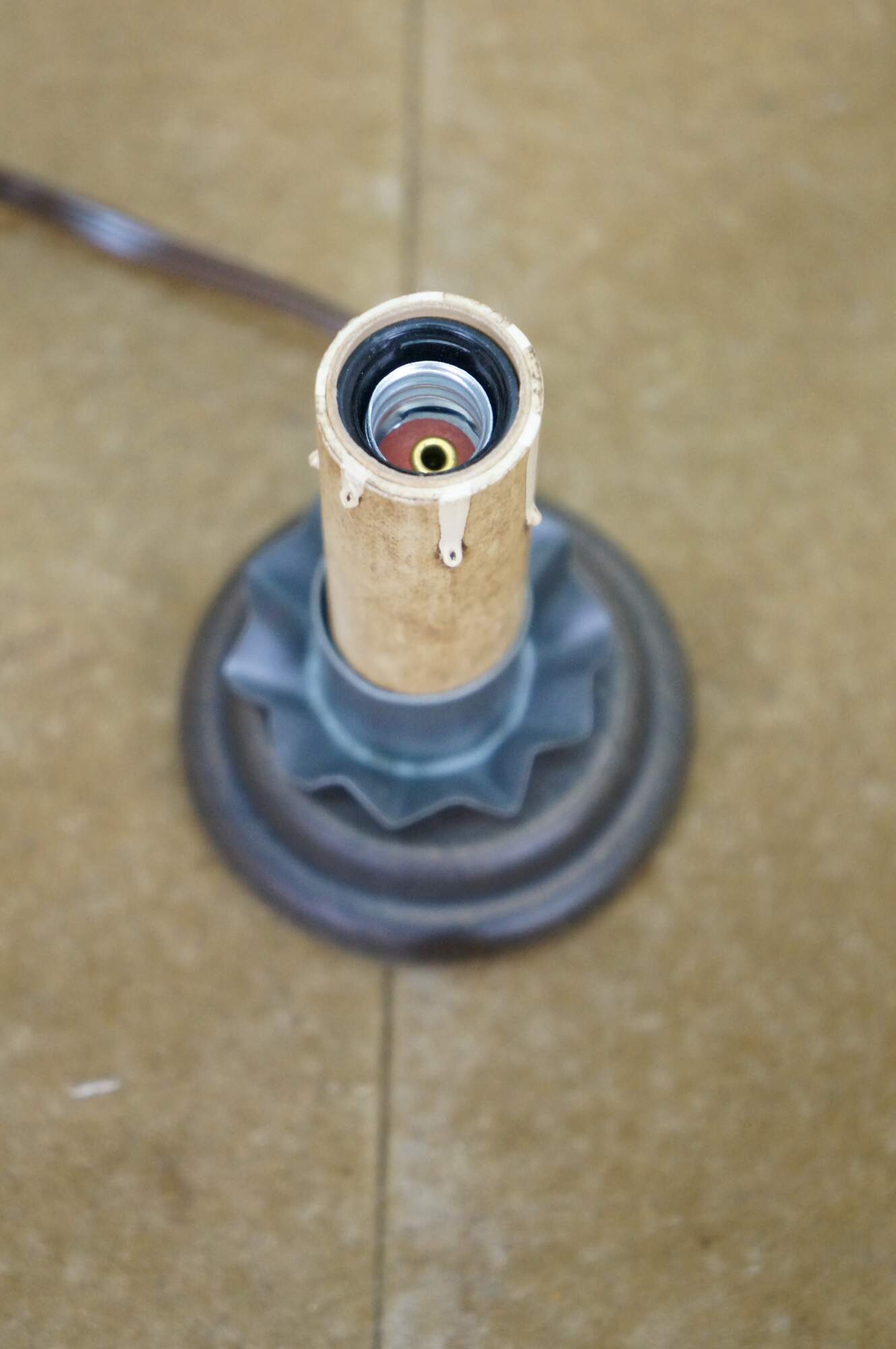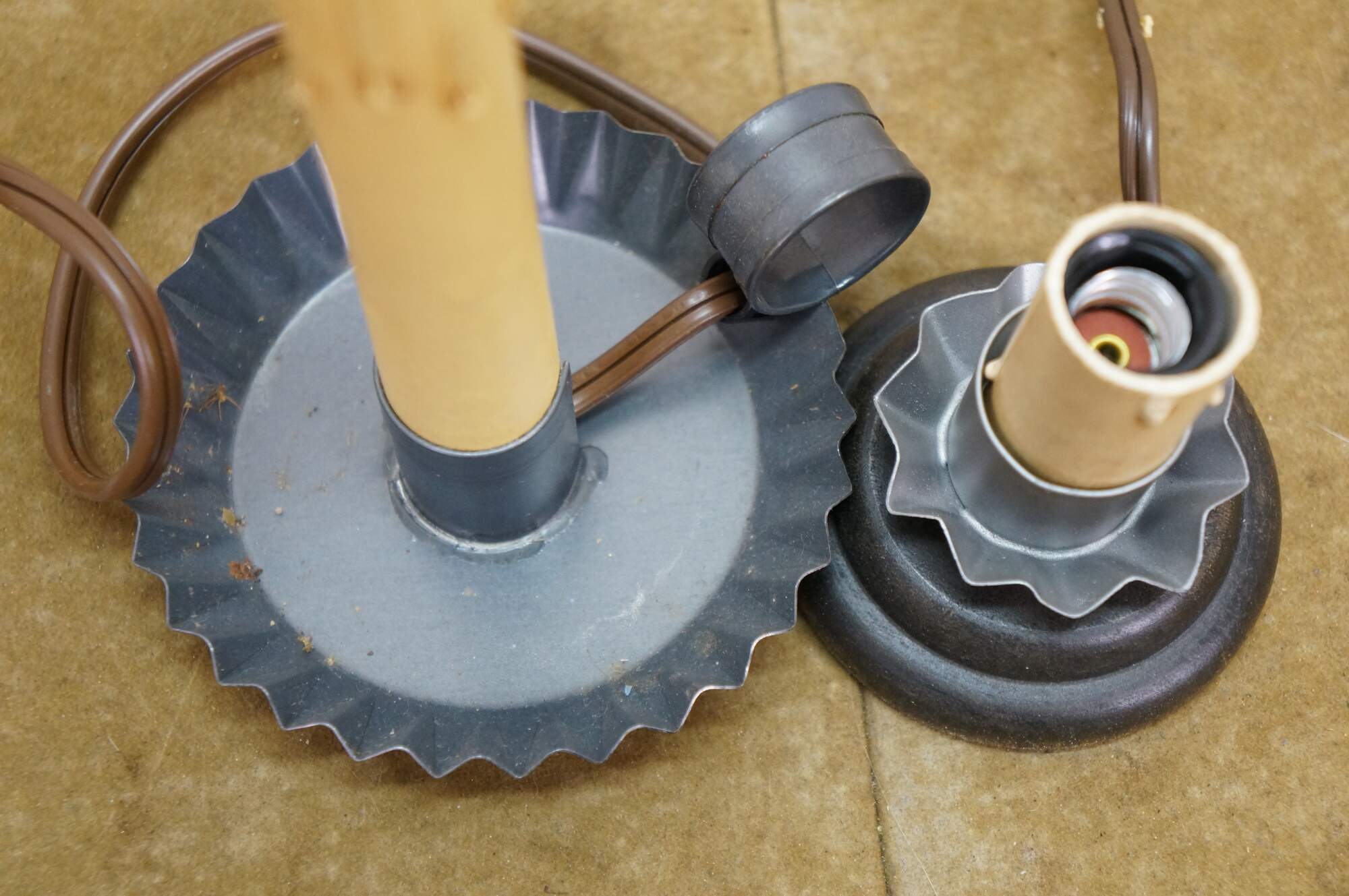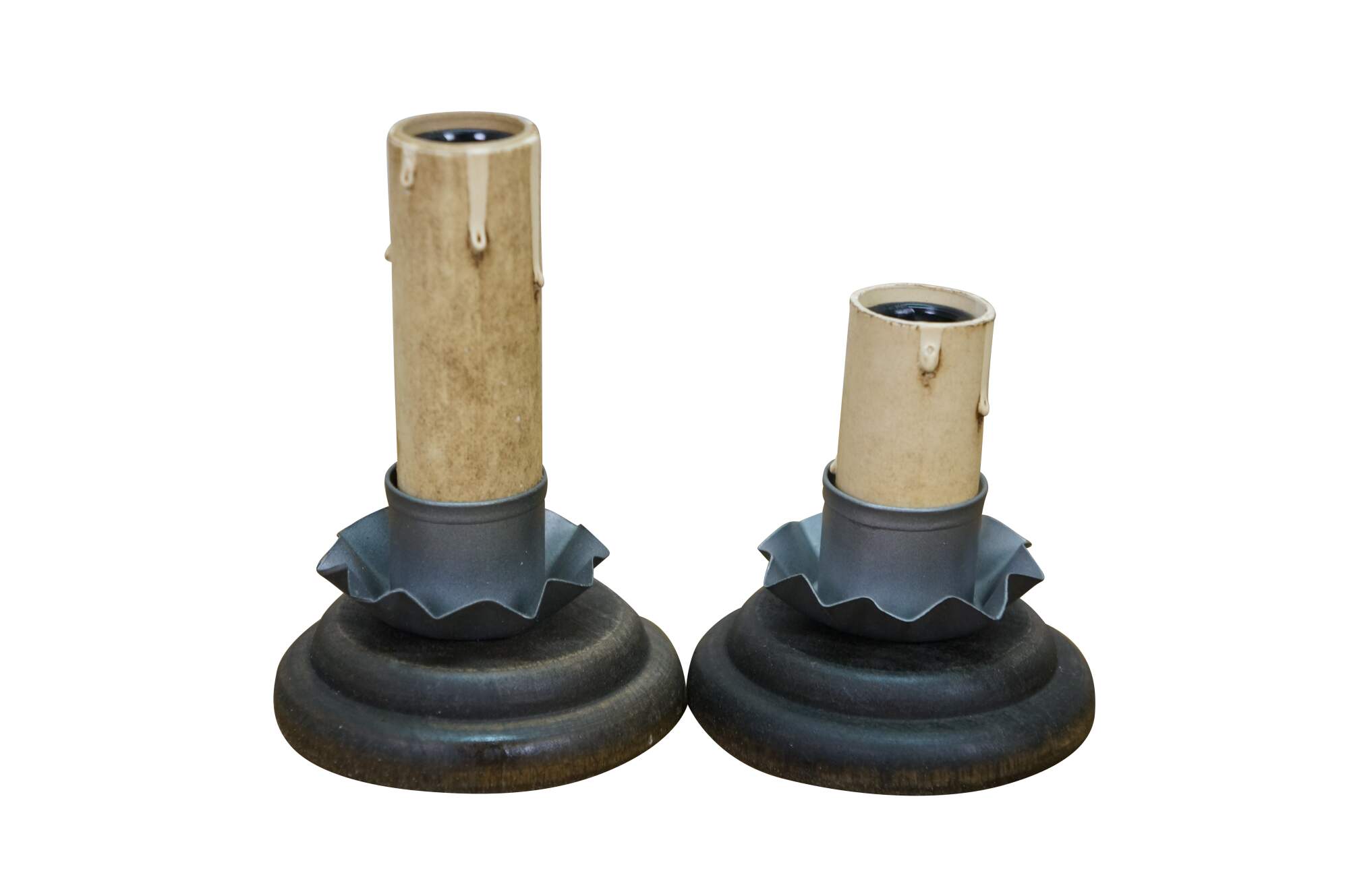 5 early american style crimped tin electric candlestick lamps. Features a candlestick drick covers.