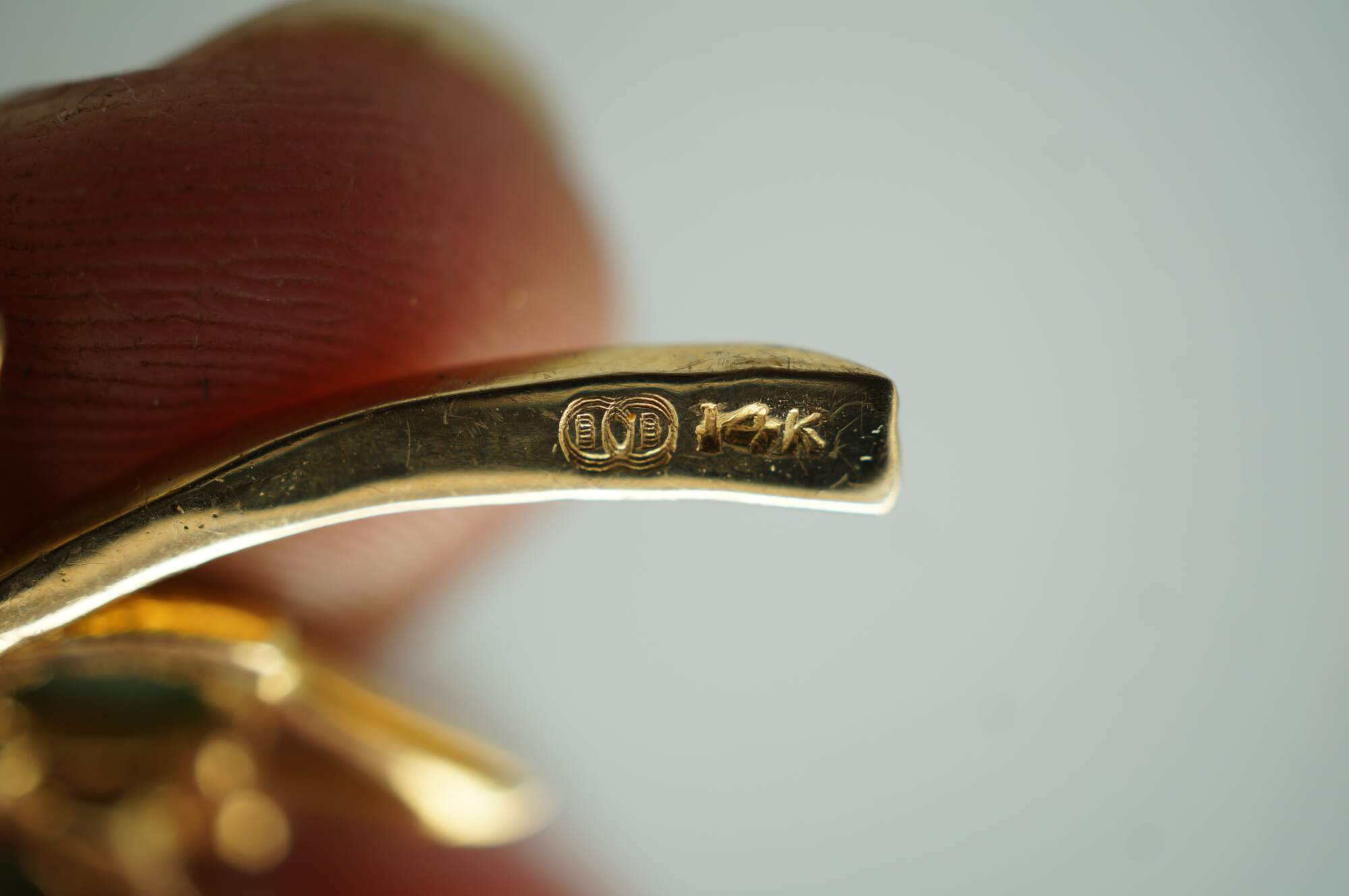 Vintage 14K Yellow Gold & Jadeite Floral Leaf Brooch Pin Flower 5.2G